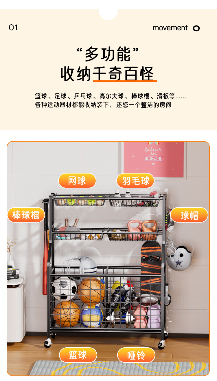 홈 스토리지 랙 농구 스토리지 랙 어린이 장난감 스토리지 바구니 스포츠 용품 스토리지 랙스토어 가기