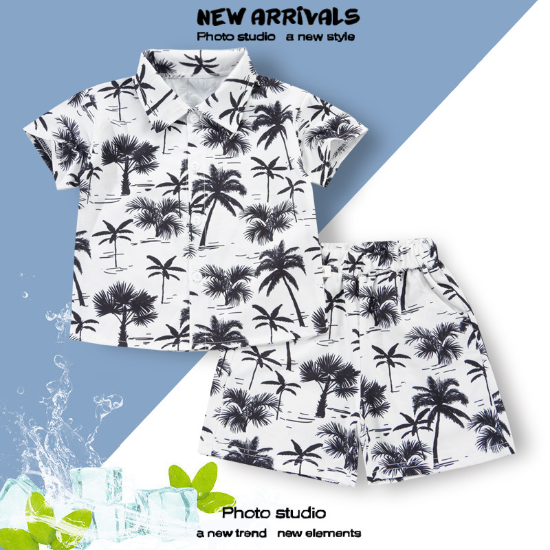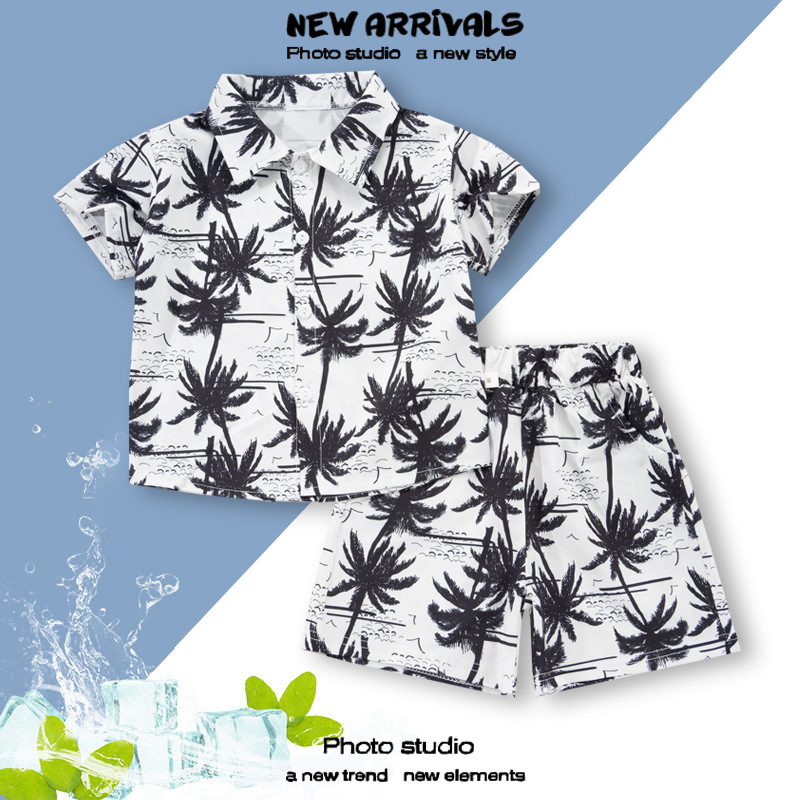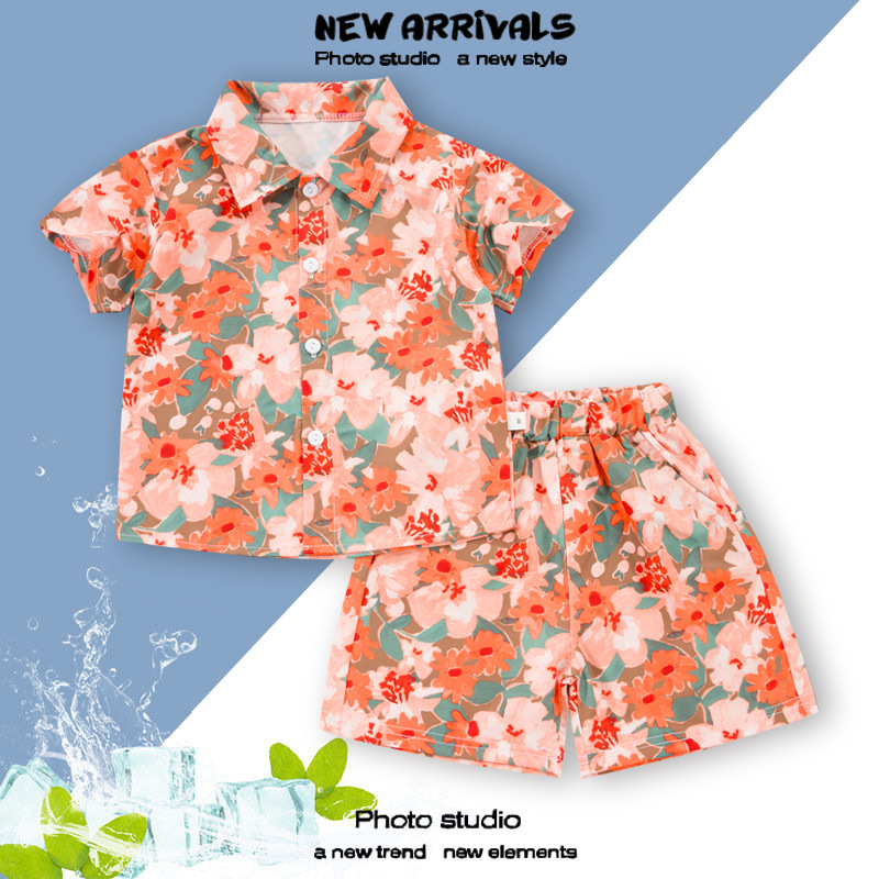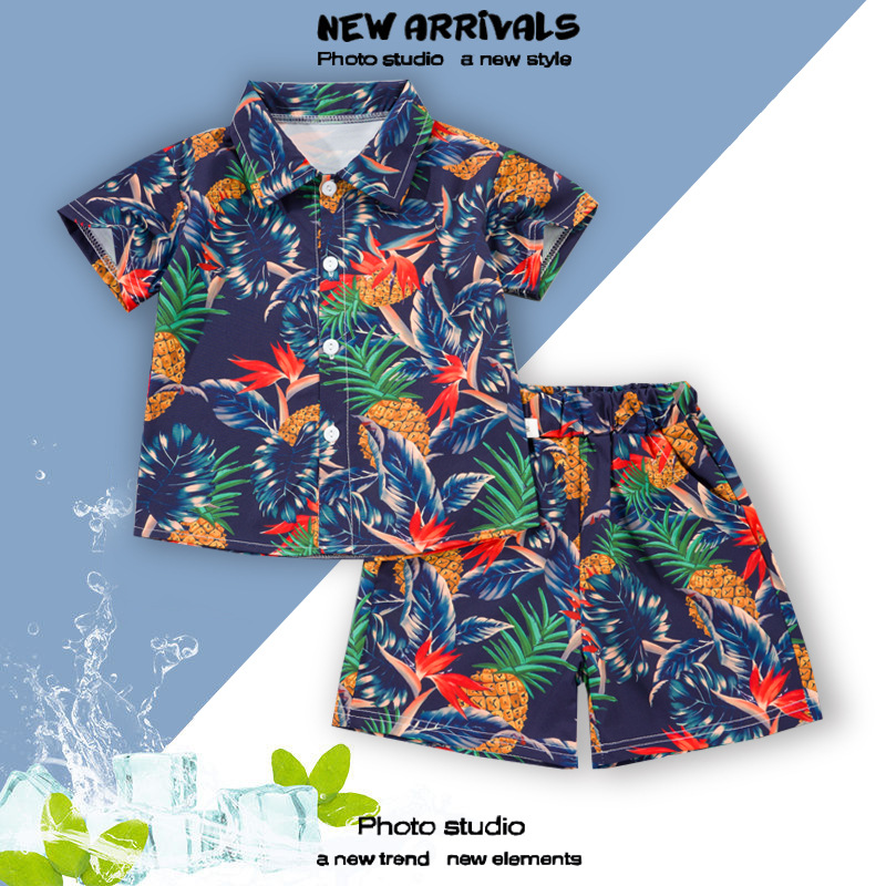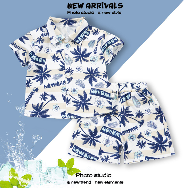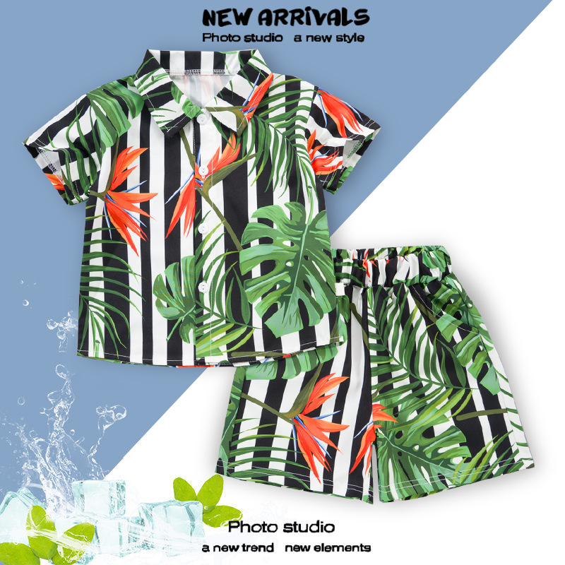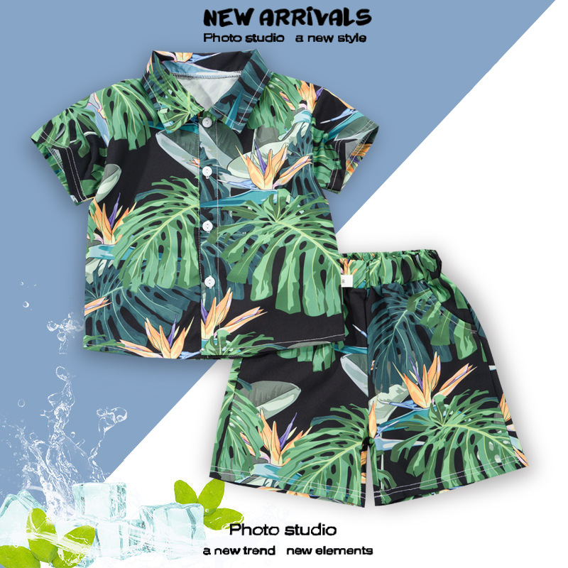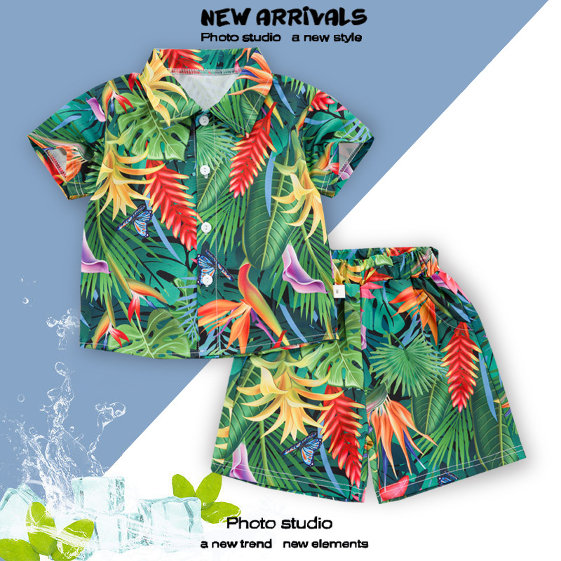 여름 정장 캐주얼 하와이 반팔 셔츠 휴가 스타일 꽃 셔츠 투피스 소년 비치 정장