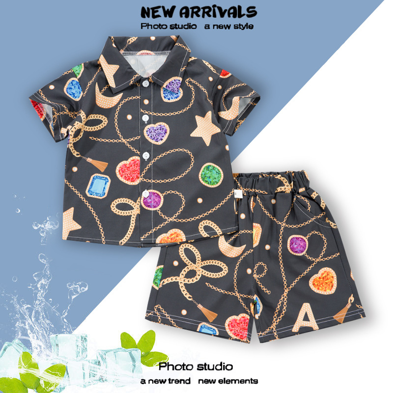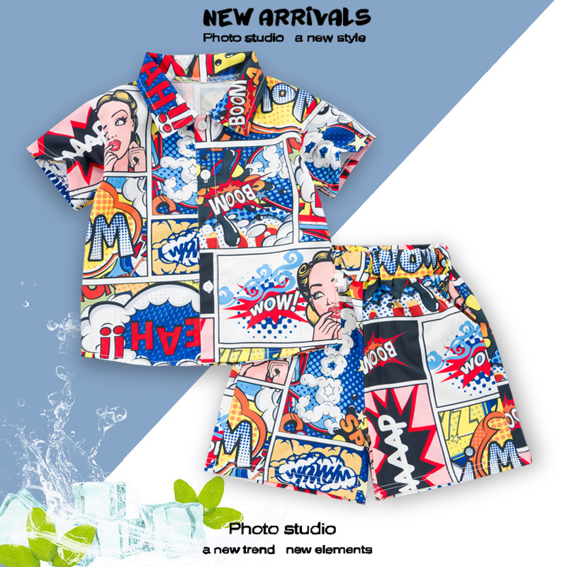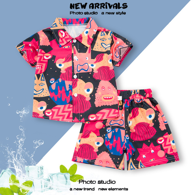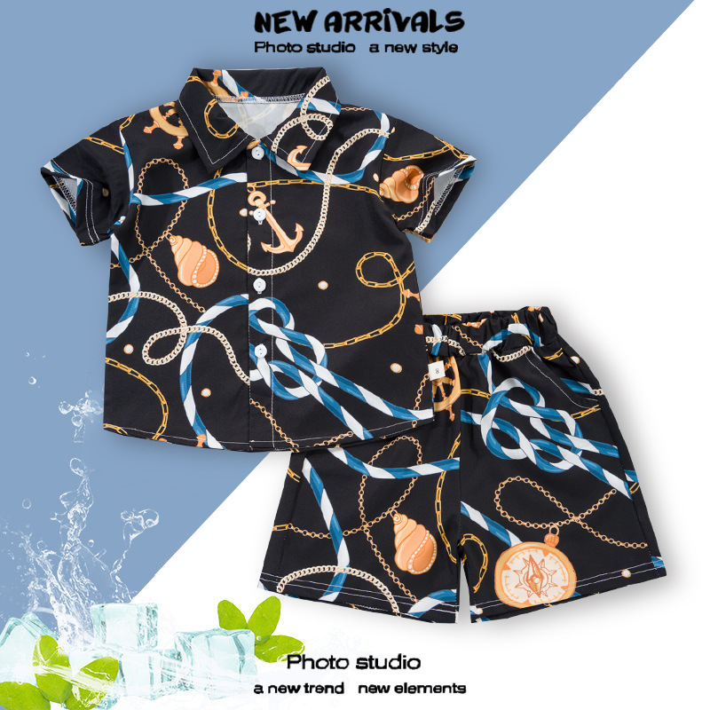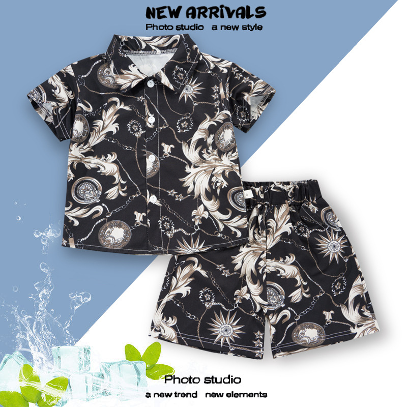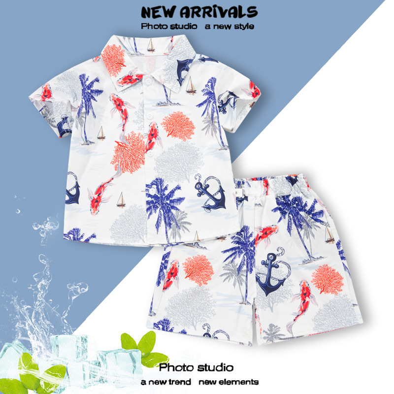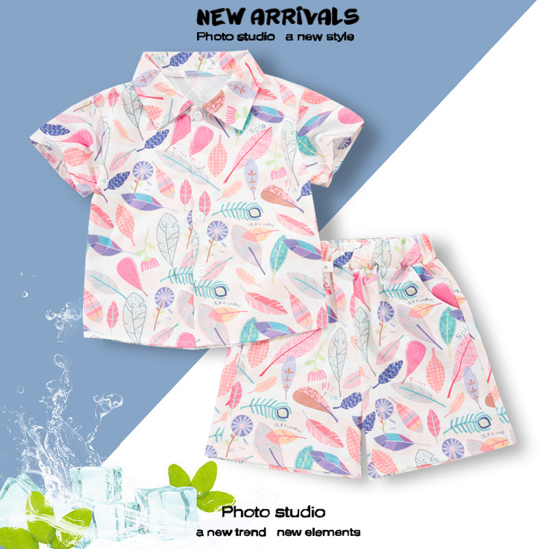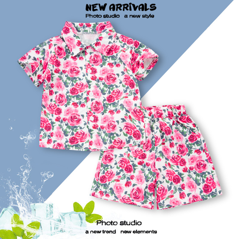 여름 정장 캐주얼 하와이 반팔 셔츠 휴가 스타일 꽃 셔츠 투피스 소년 비치 정장