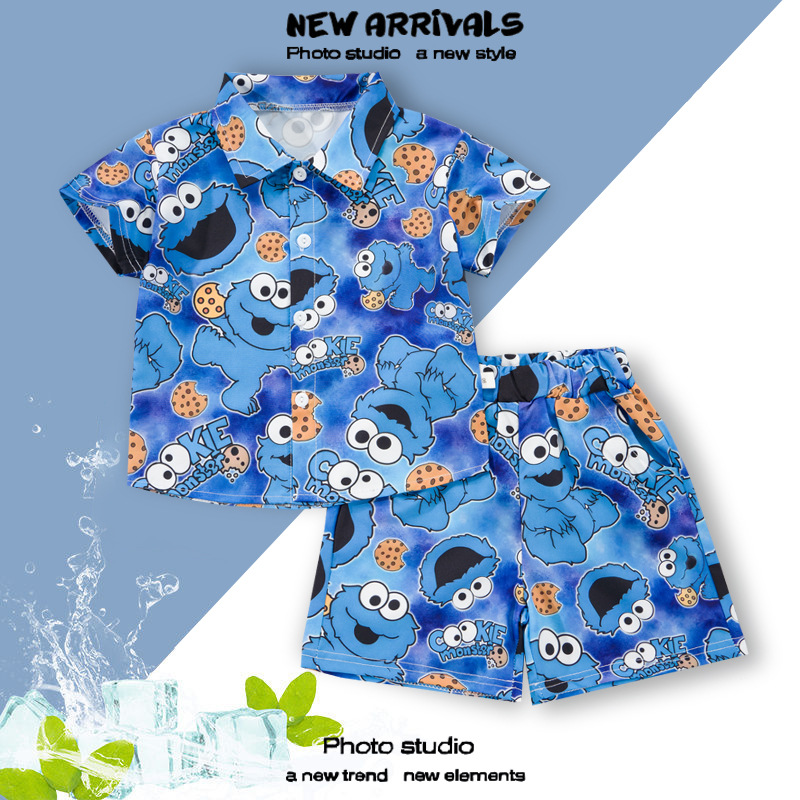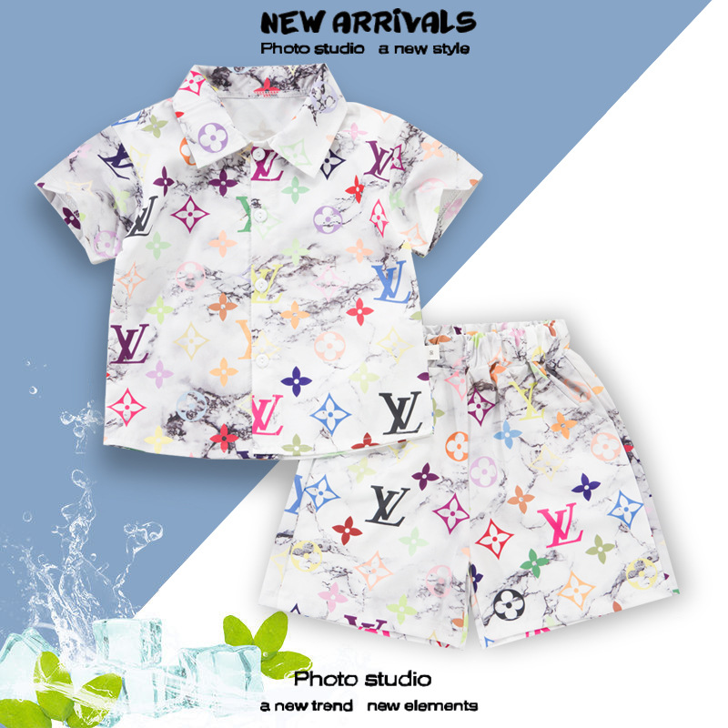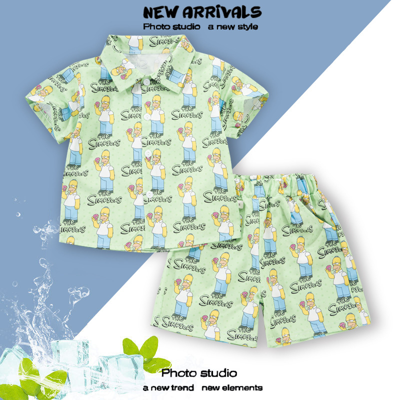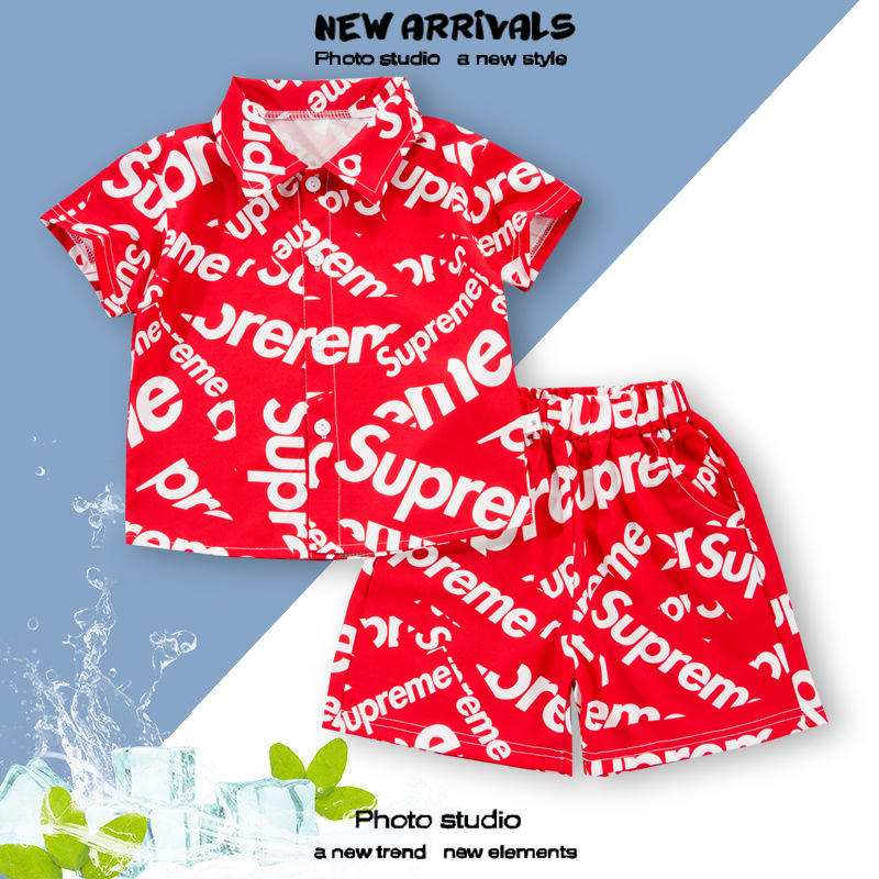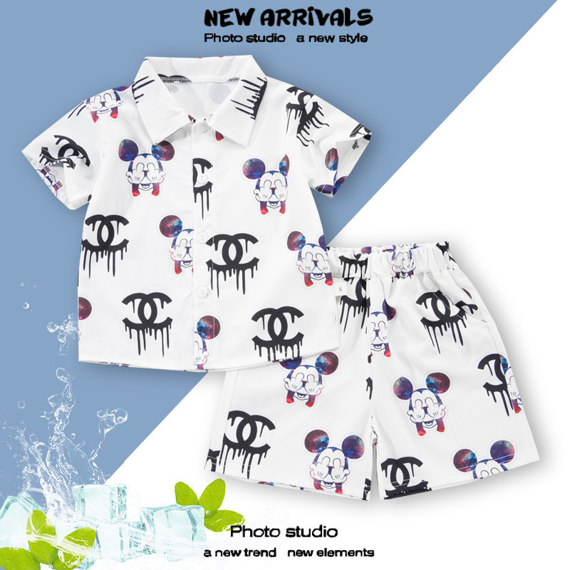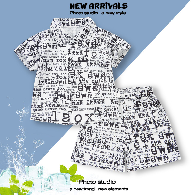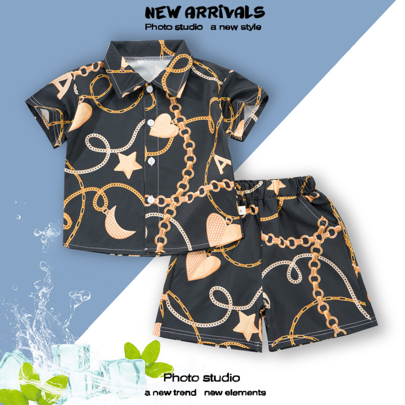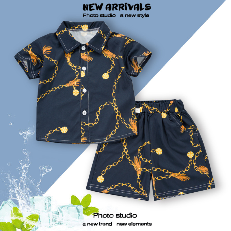 여름 정장 캐주얼 하와이 반팔 셔츠 휴가 스타일 꽃 셔츠 투피스 소년 비치 정장