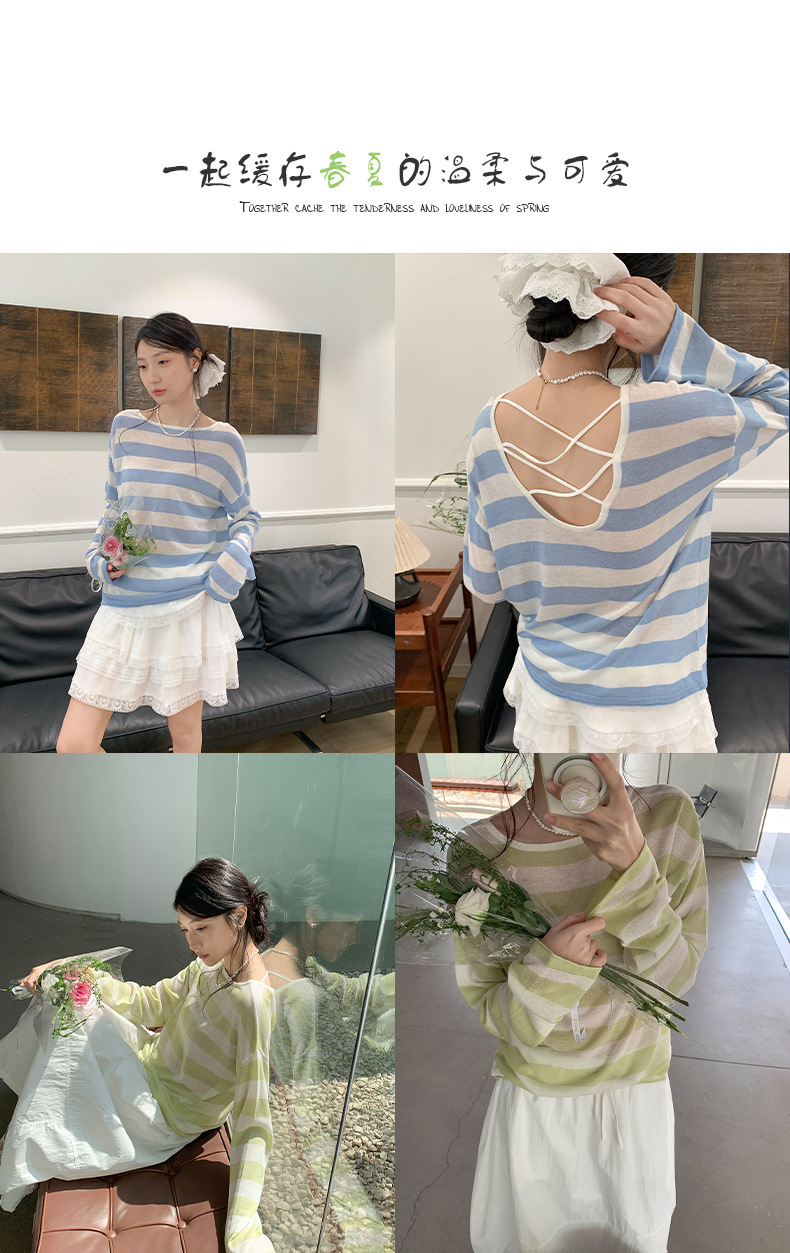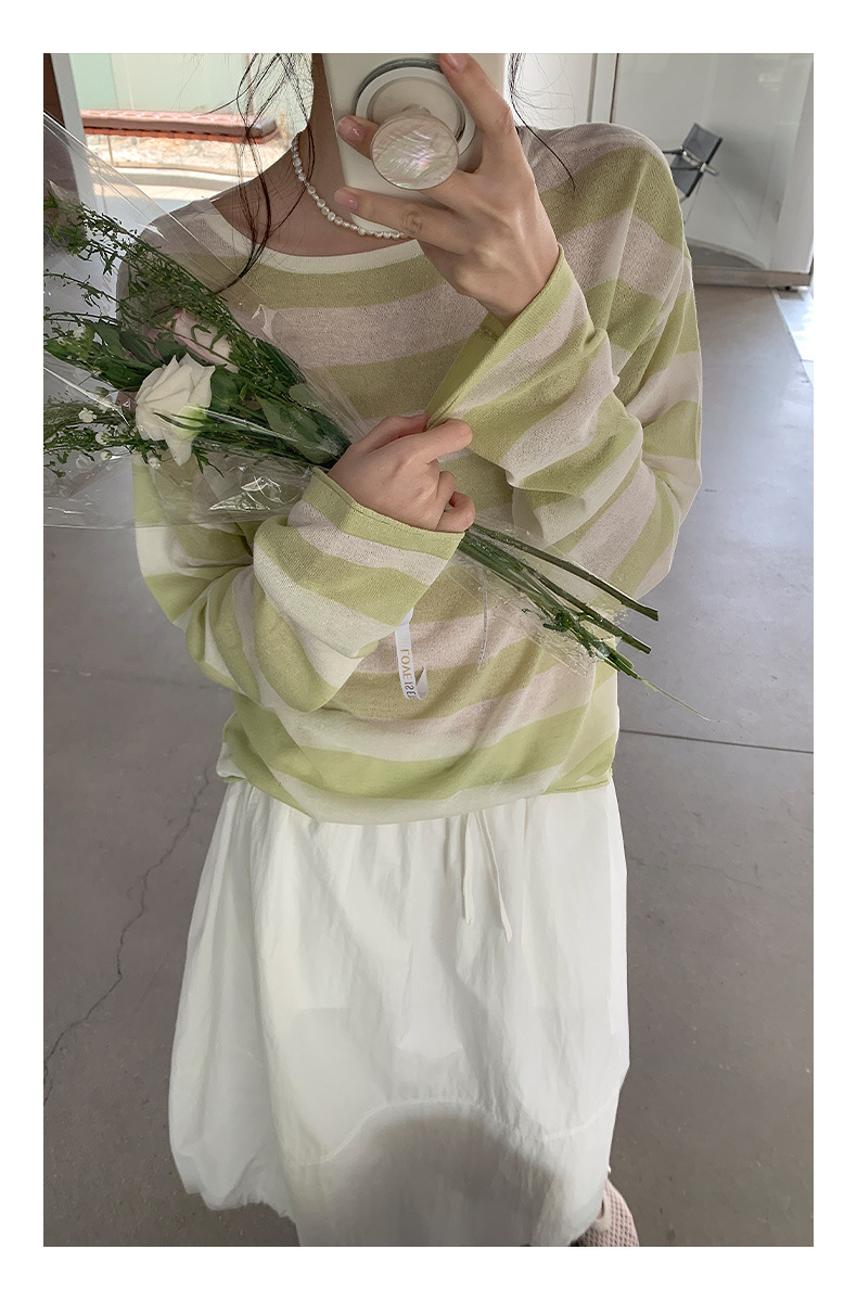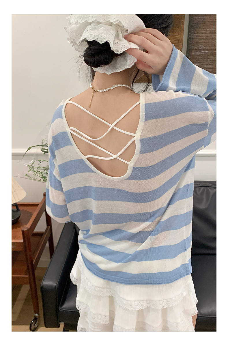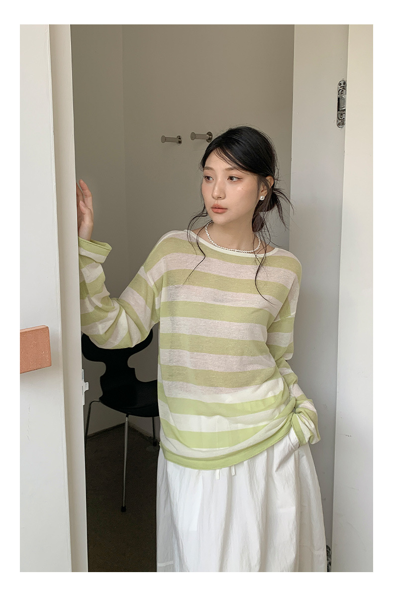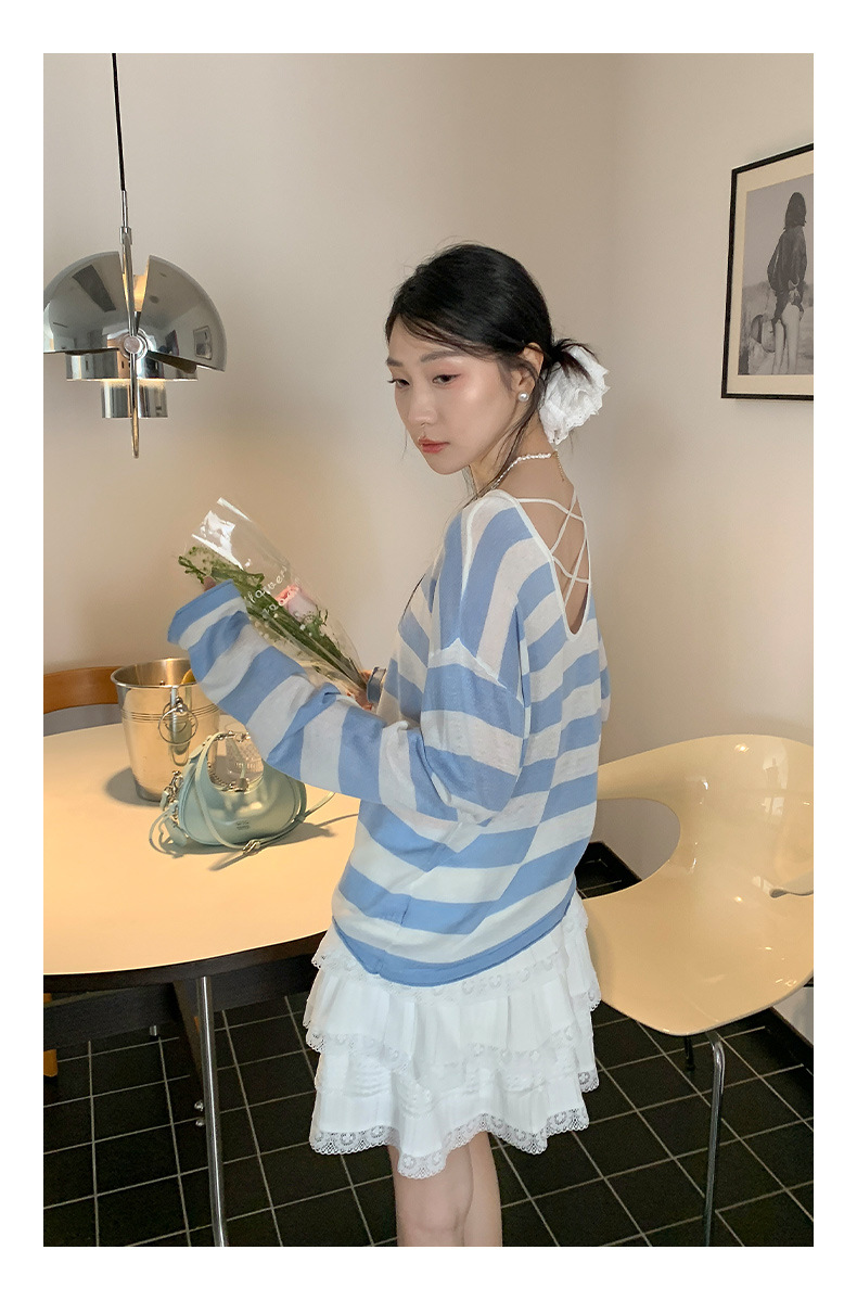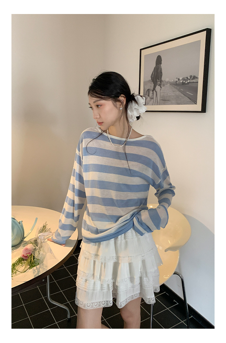 이순신 셔츠 캐주얼 스트라이프 게으른 스타일 레이스 업 느슨한 복용량 여성용 선스크린 셔츠 에어컨 셔츠 0365스토어 가기