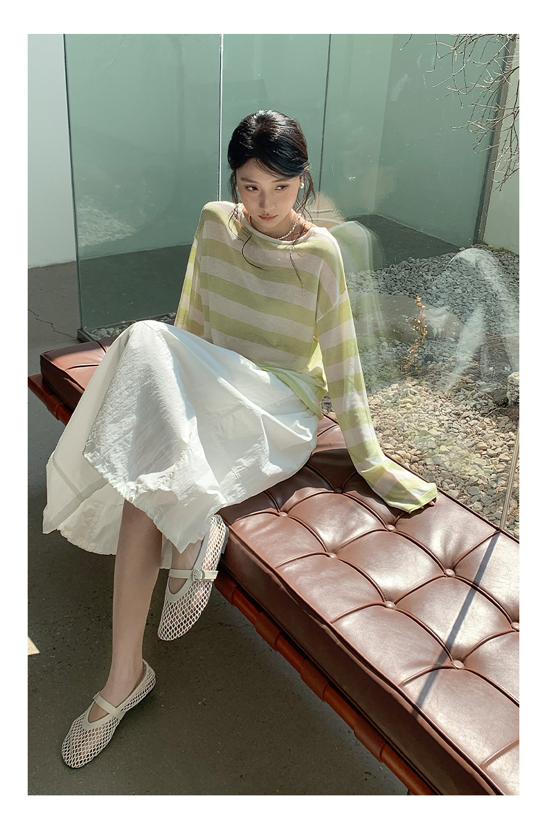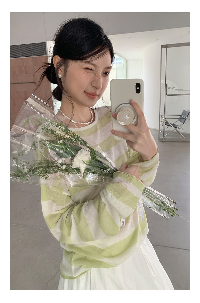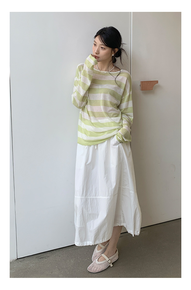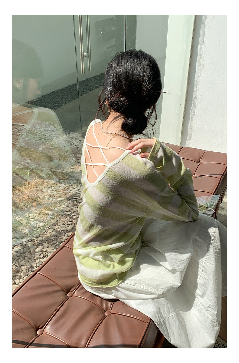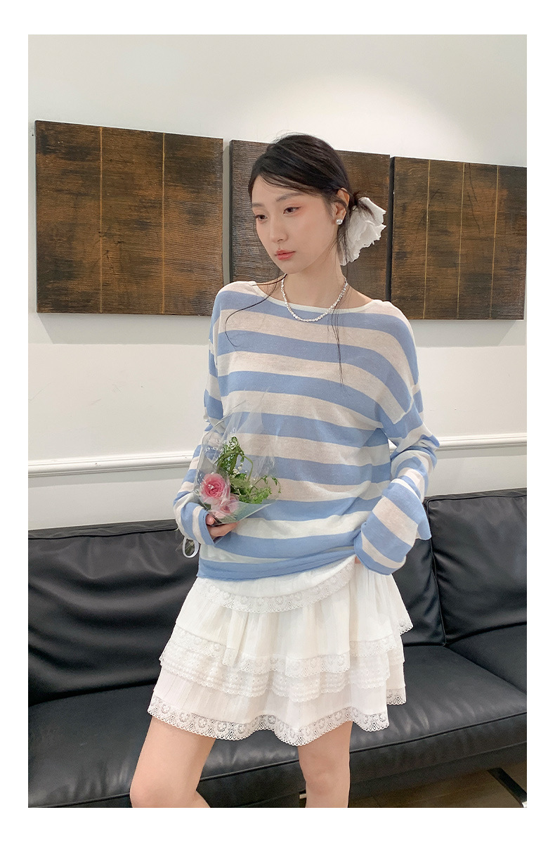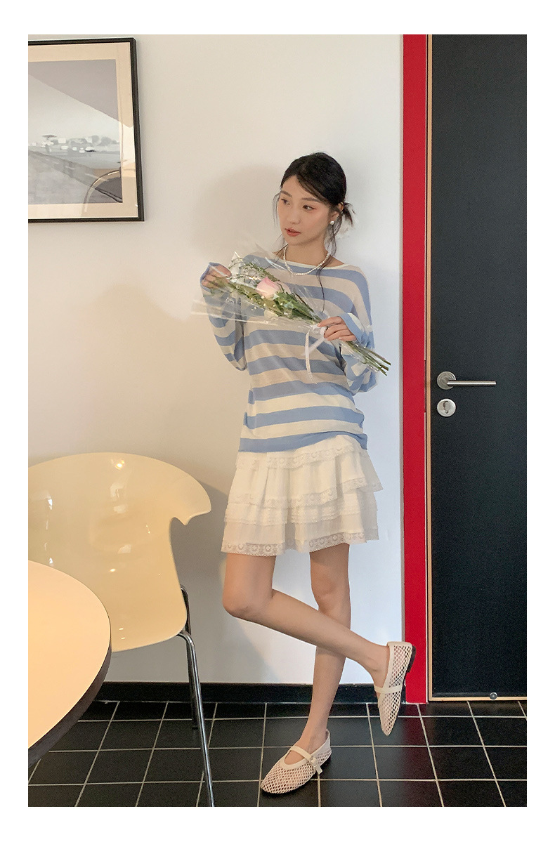 이순신 셔츠 캐주얼 스트라이프 게으른 스타일 레이스 업 느슨한 복용량 여성용 선스크린 셔츠 에어컨 셔츠 0365스토어 가기