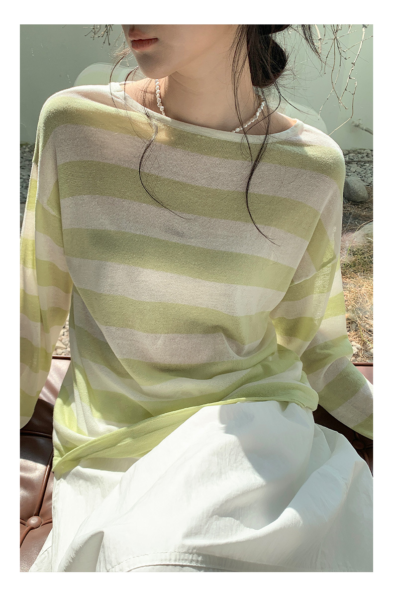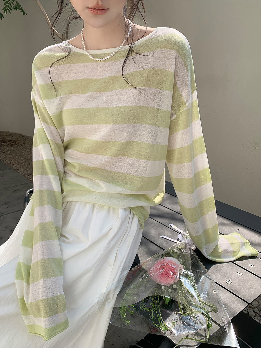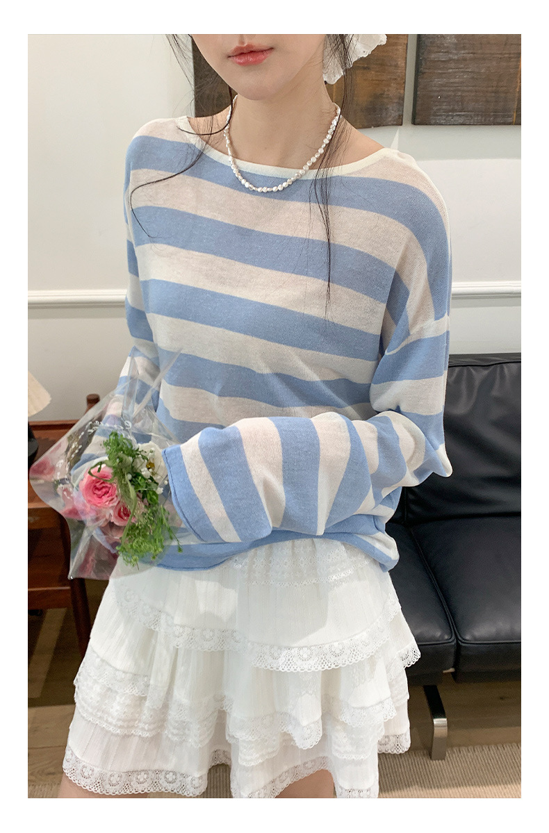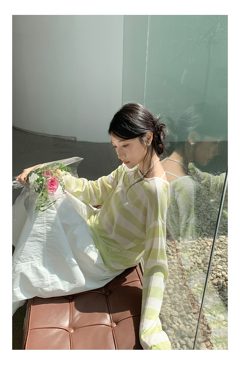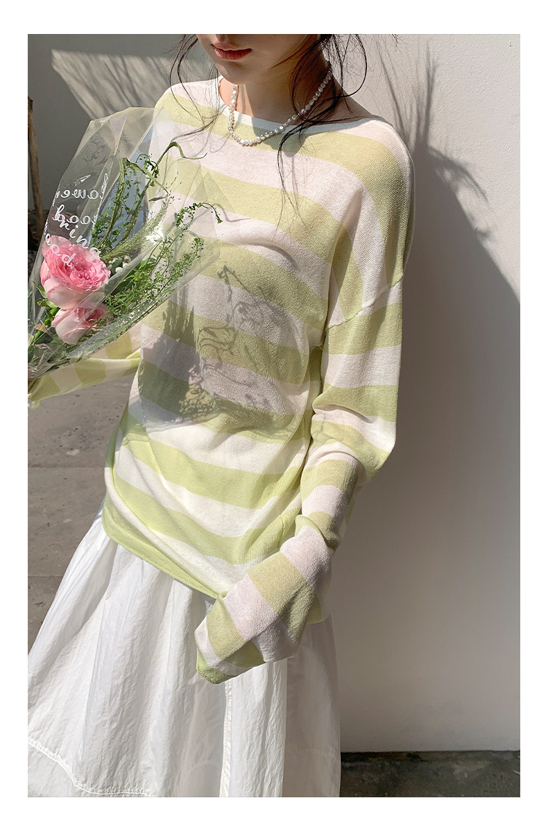 이순신 셔츠 캐주얼 스트라이프 게으른 스타일 레이스 업 느슨한 복용량 여성용 선스크린 셔츠 에어컨 셔츠 0365