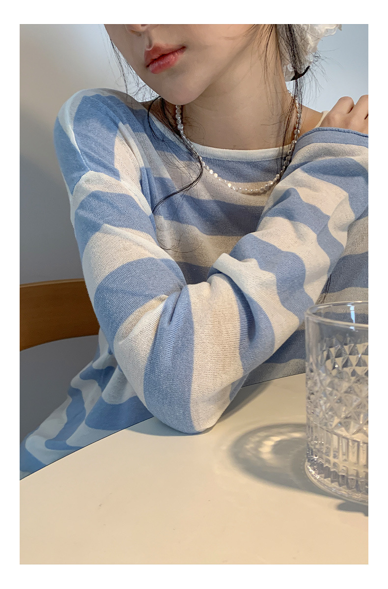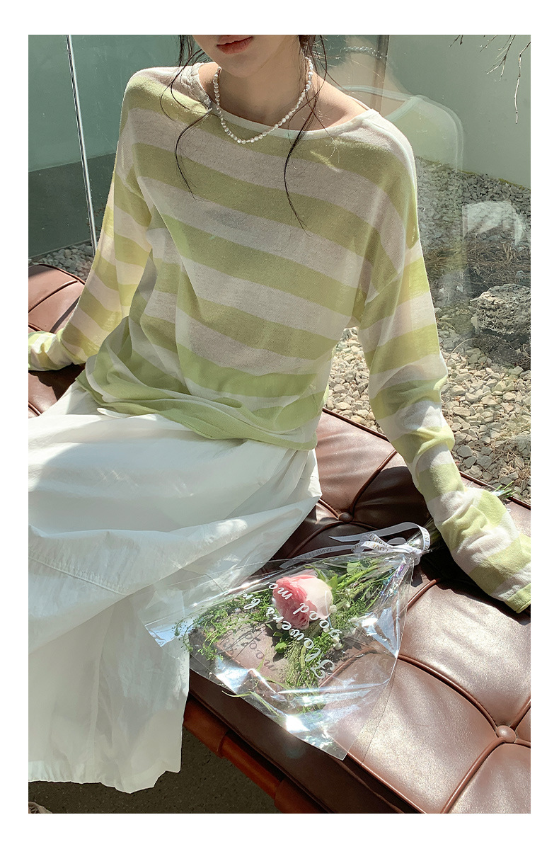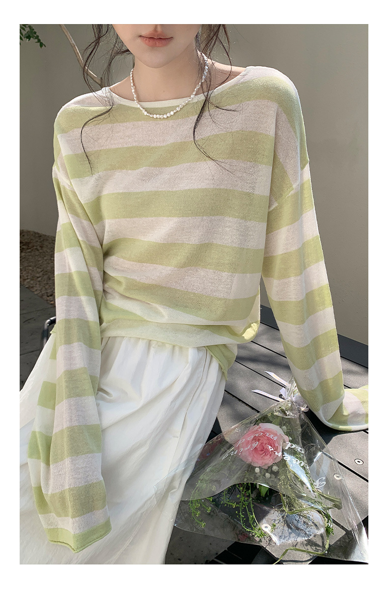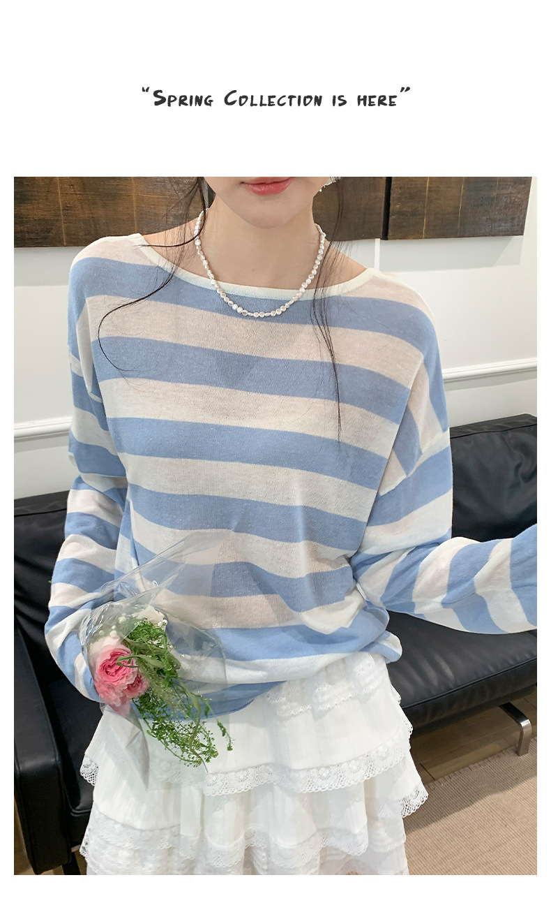 이순신 셔츠 캐주얼 스트라이프 게으른 스타일 레이스 업 느슨한 복용량 여성용 선스크린 셔츠 에어컨 셔츠 0365