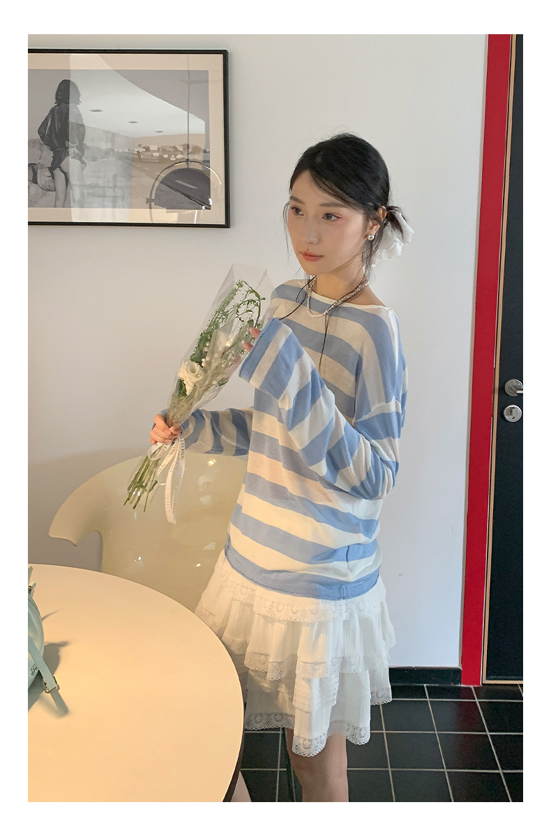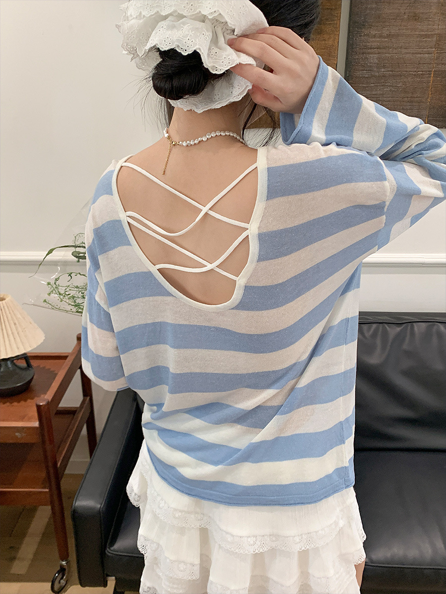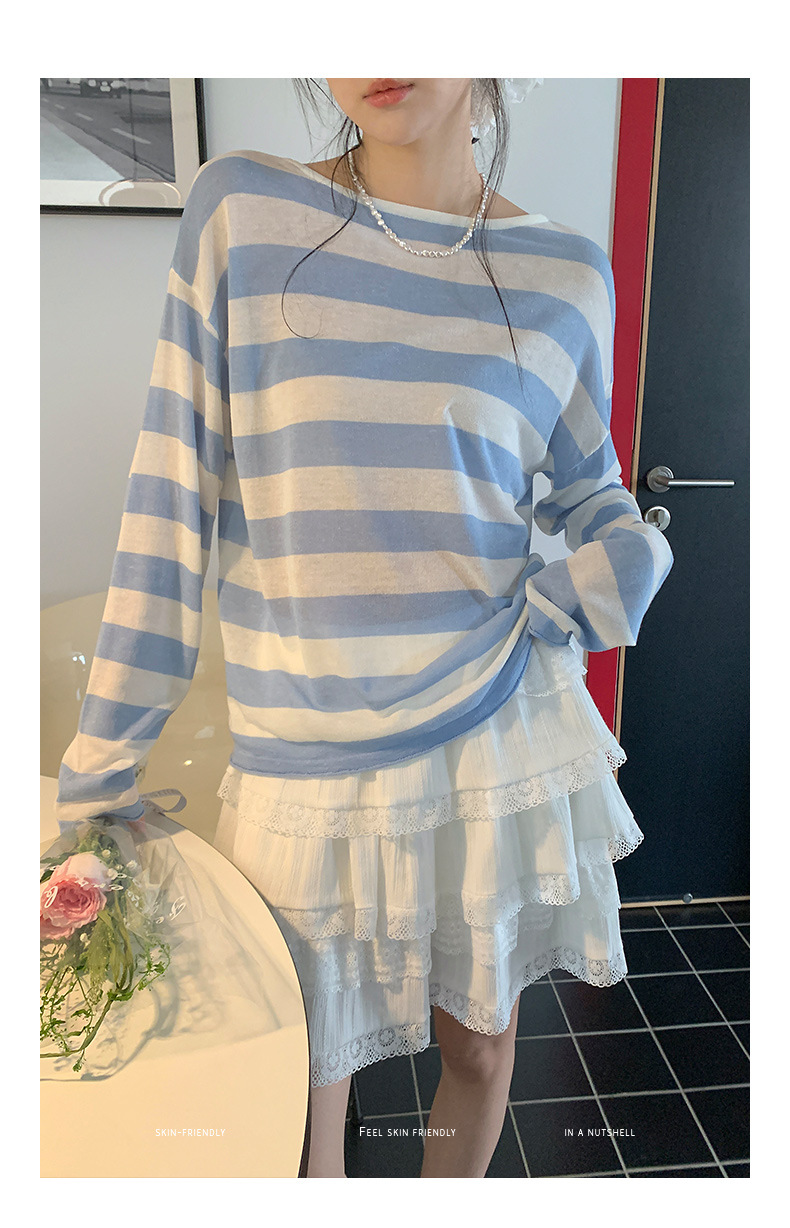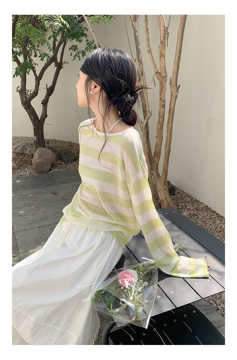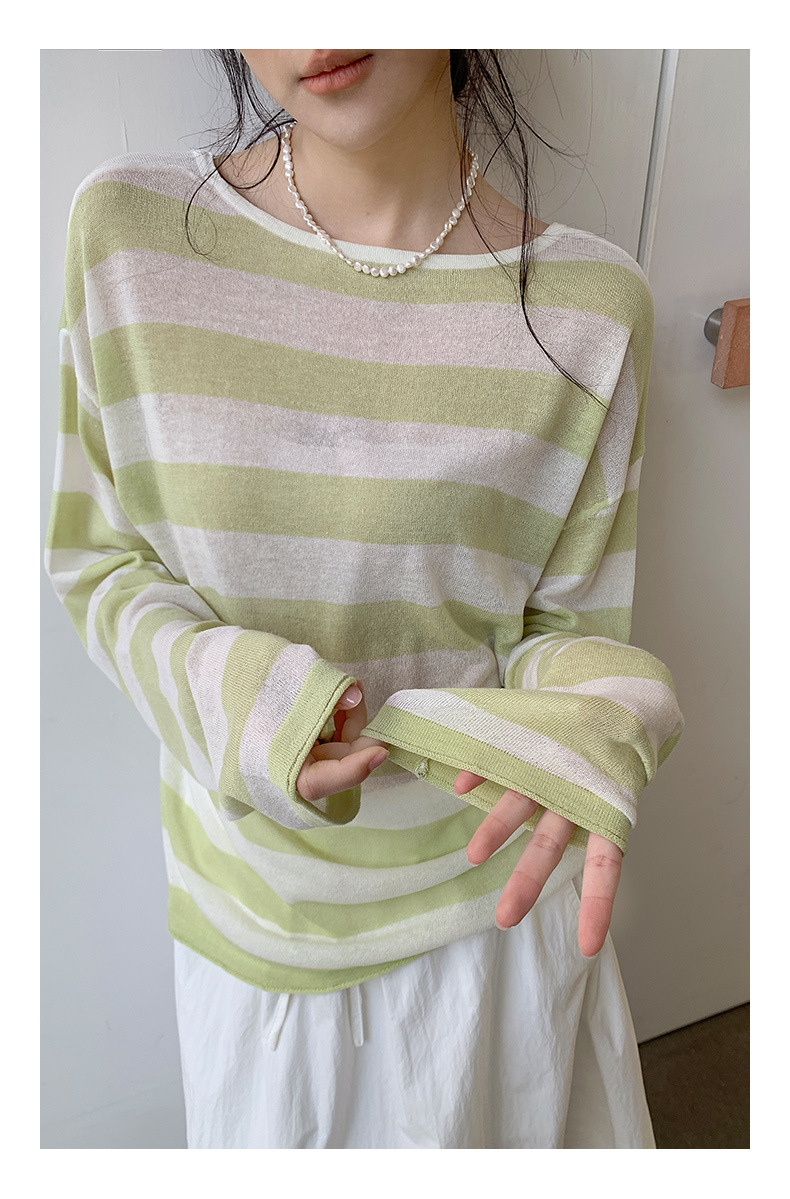 이순신 셔츠 캐주얼 스트라이프 게으른 스타일 레이스 업 느슨한 복용량 여성용 선스크린 셔츠 에어컨 셔츠 0365