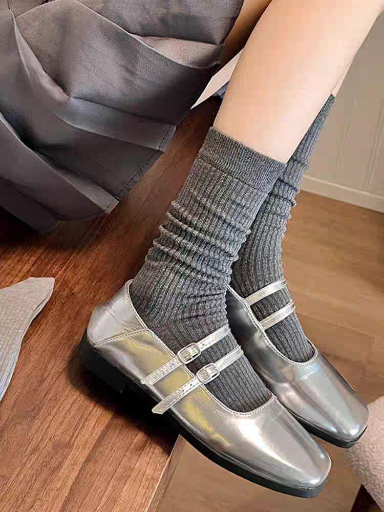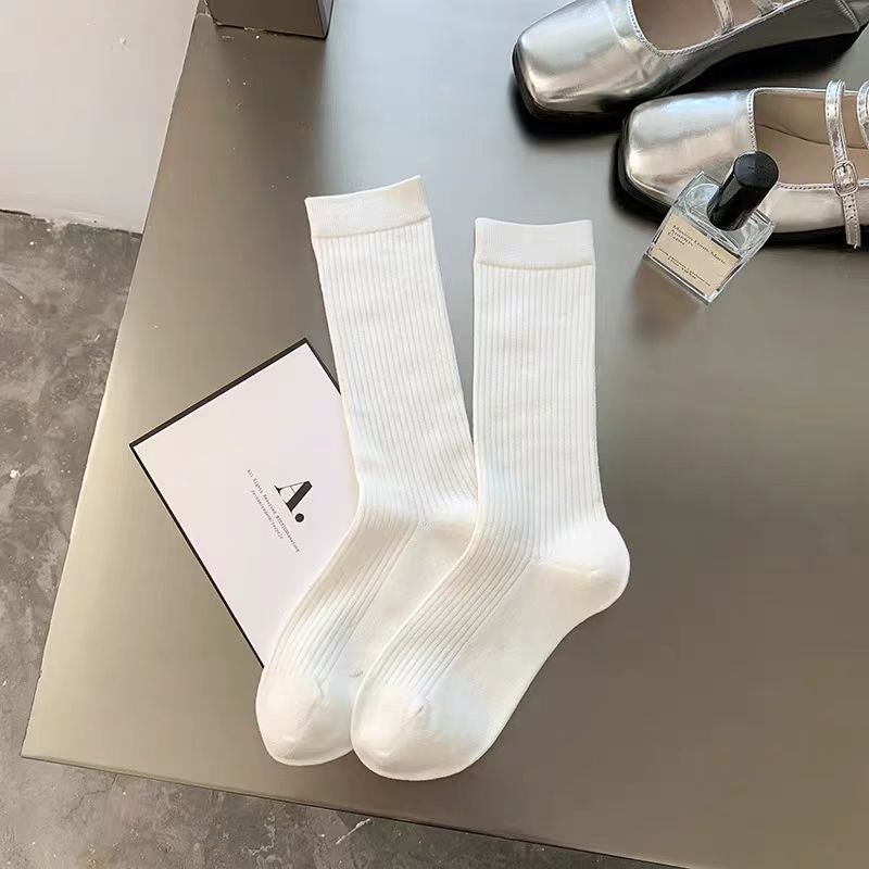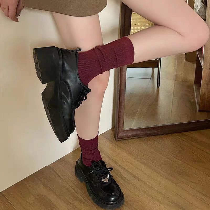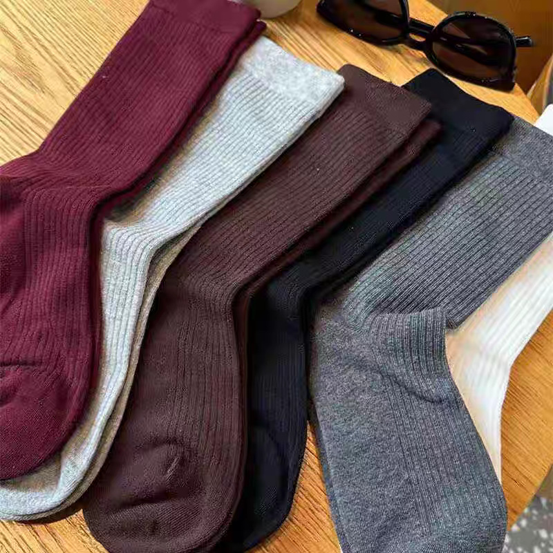 Ankora Red Socks 여성용 양말 수직 줄무늬 학업 스타일 여성용 코튼 양말 미드 튜브 양말 Lala 양말 풀 양말 올 매치