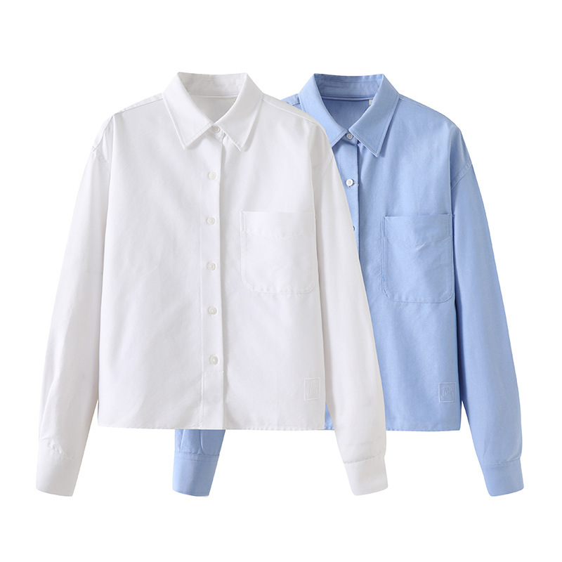 2025 봄 여자 솔리드 컬러 올 매치 옥스포드 스피닝 캐주얼 셔츠 긴 소매베이스 셔츠 475718 477683