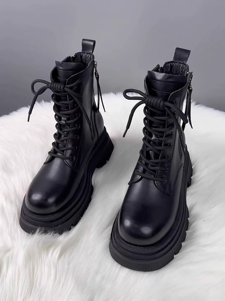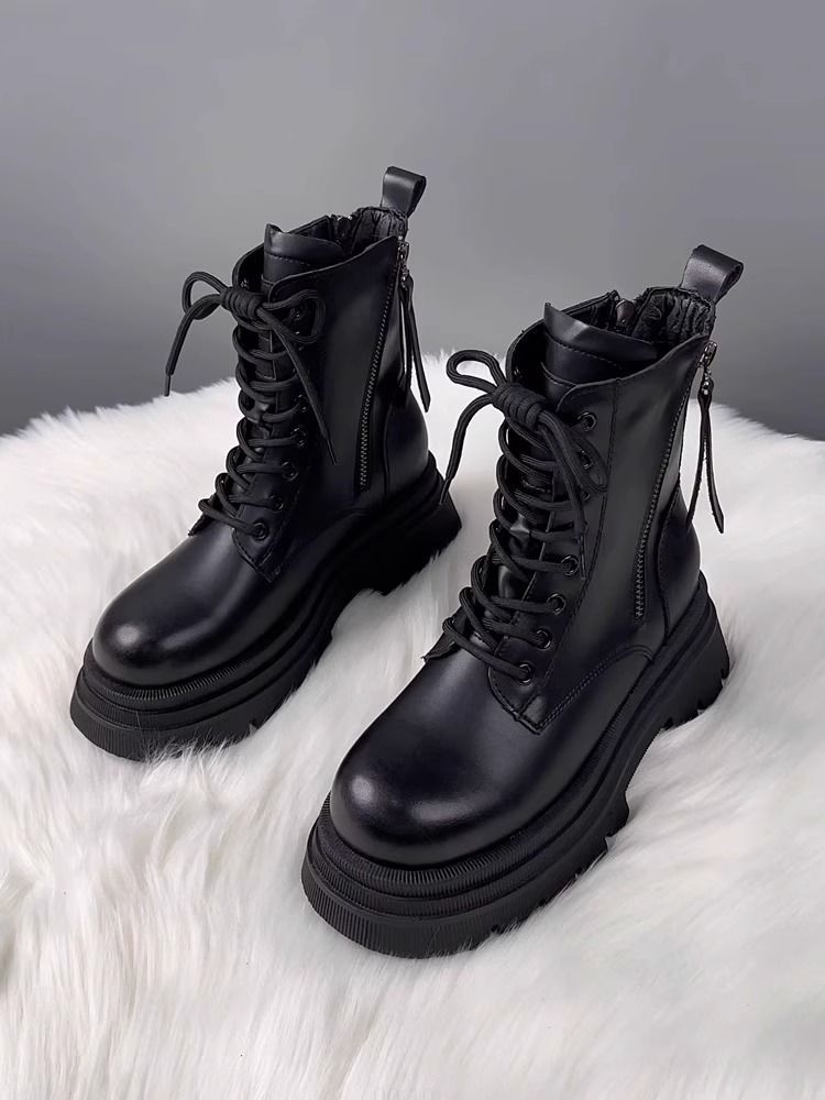 마틴 부츠 여성 영국 스타일 2025 봄과 가을 새로운 두꺼운 바닥 증가 더블 지퍼 사이버 인기 패션 짧은 부츠스토어 가기