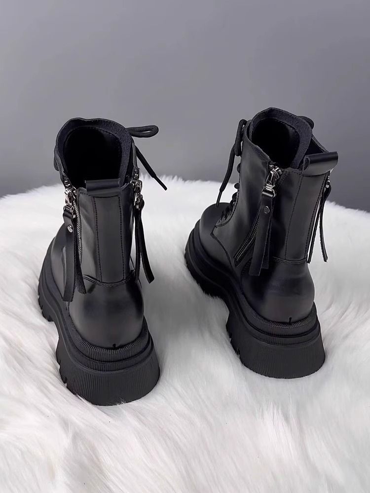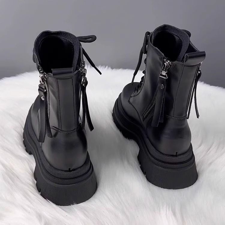 마틴 부츠 여성 영국 스타일 2025 봄과 가을 새로운 두꺼운 바닥 증가 더블 지퍼 사이버 인기 패션 짧은 부츠