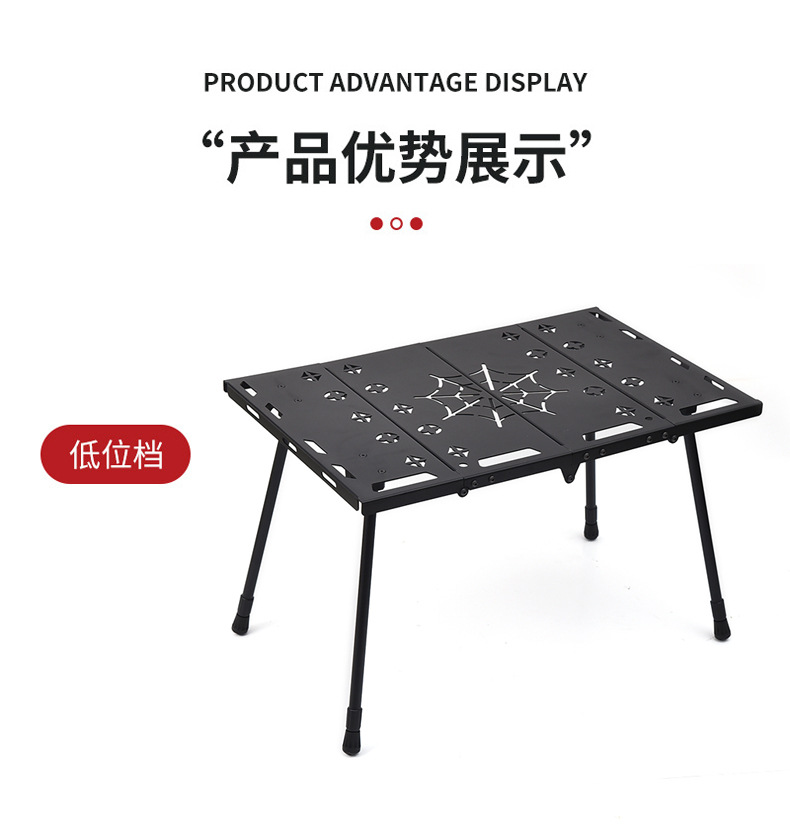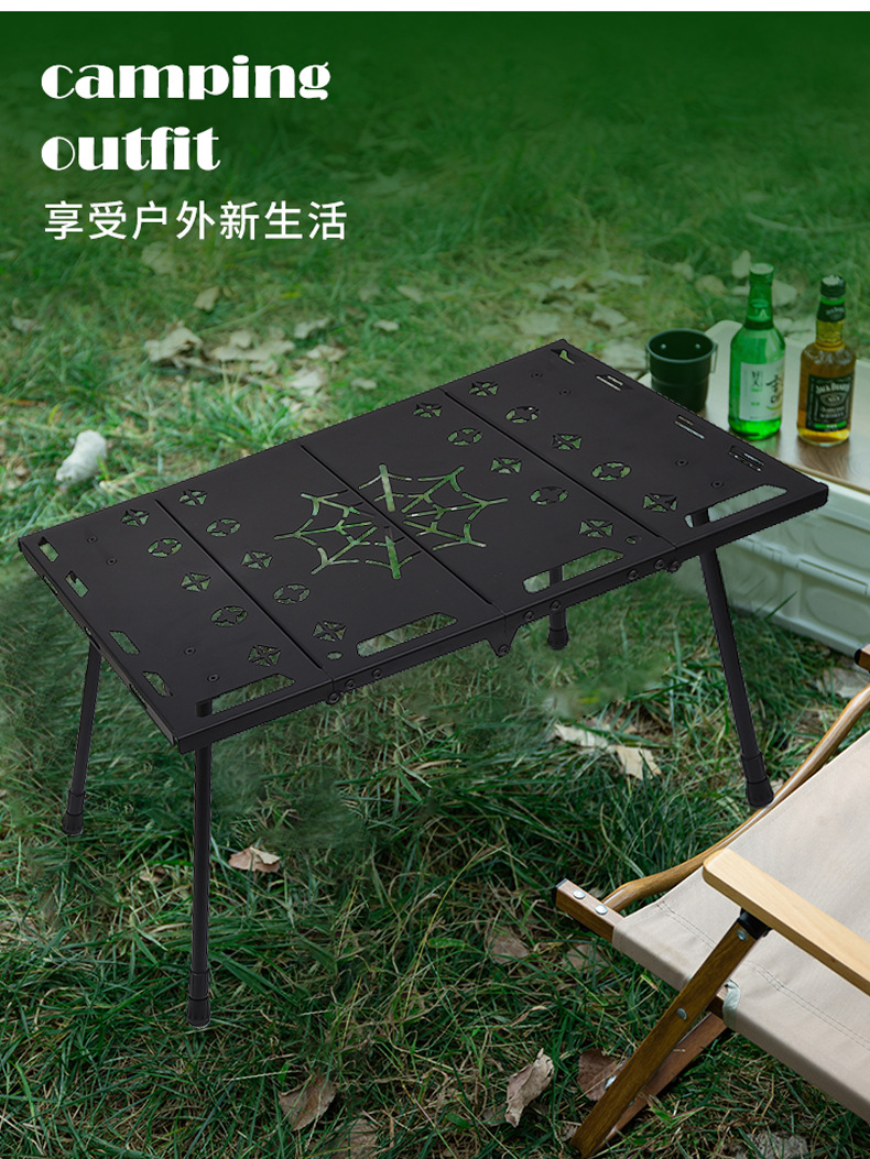 户外铝合金四折战术桌 便携式露营桌多功能 对折桌烧烤野餐桌