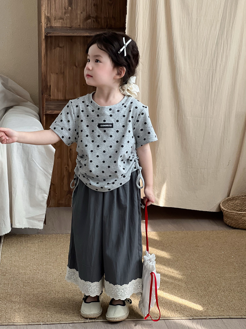 한국 스타일 소녀 2025 여름 새로운 도착 폴로 도트 인쇄 반팔 티셔츠 어린이 트렌디 쇼트 탑스토어 가기