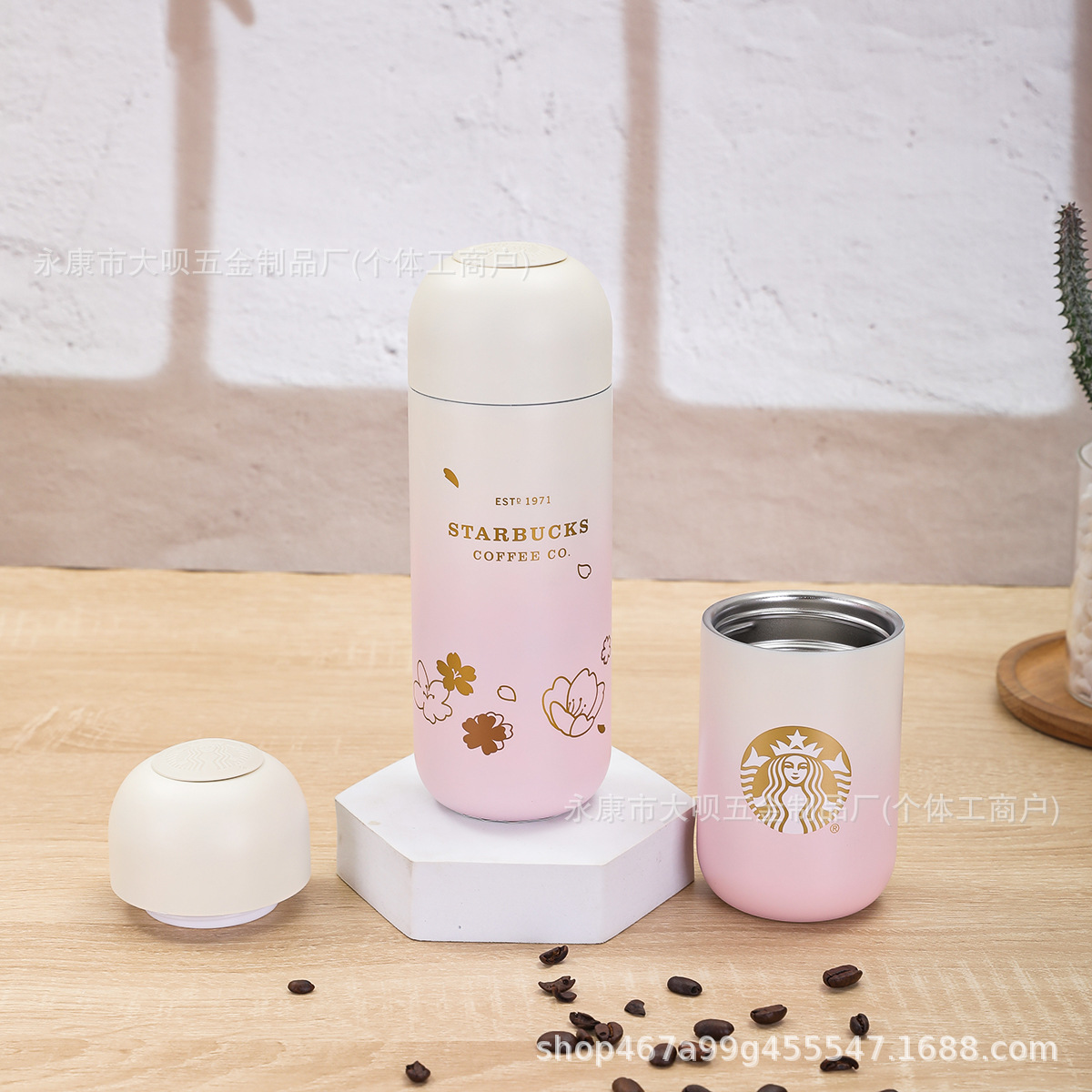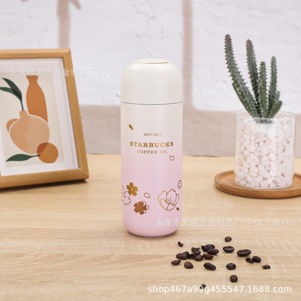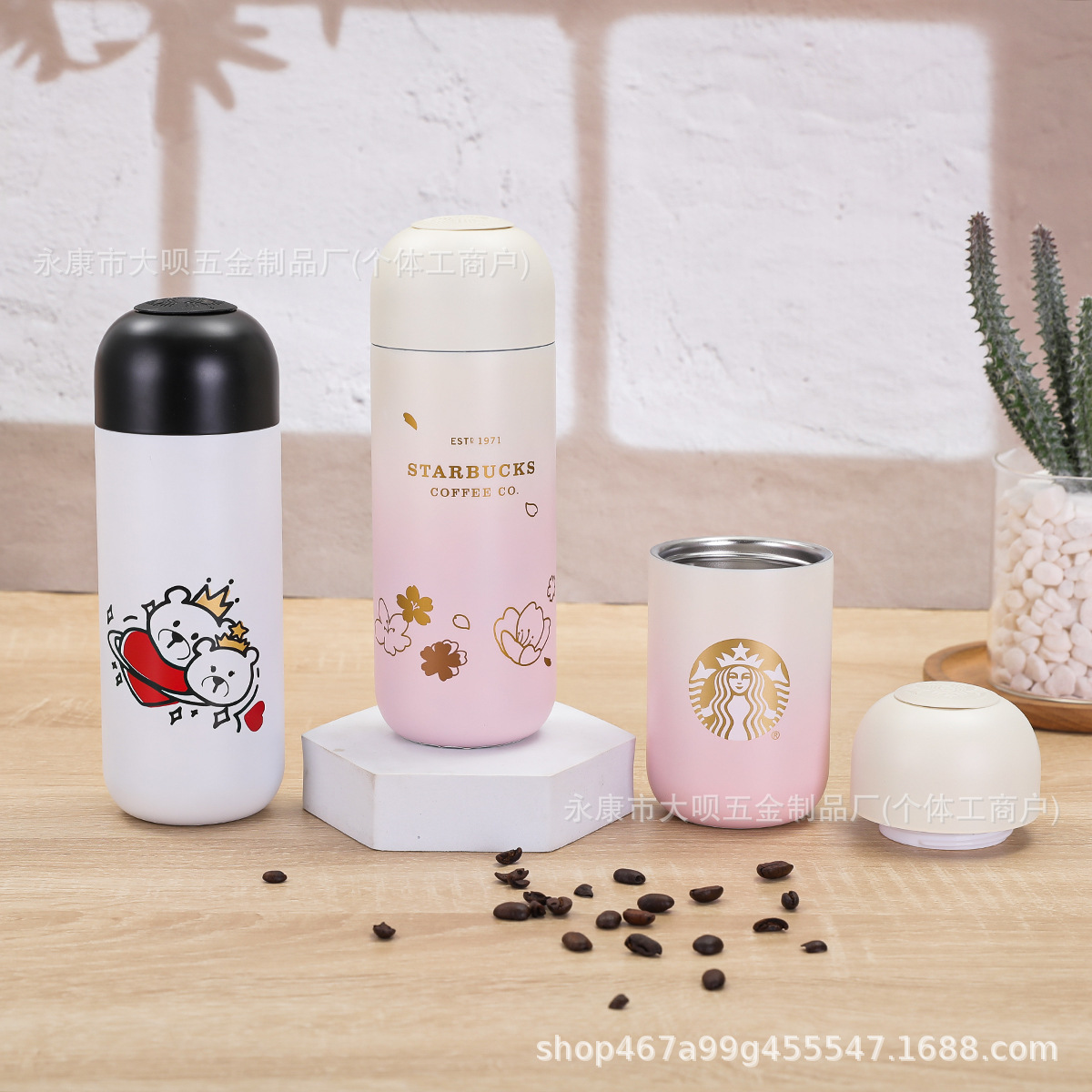 새로운 스타벅스 스타바이 K와 같은 스타일의 귀여운 남녀 커플용 벚꽃 핑크 304 스테인리스 캡슐 보온컵스토어 가기