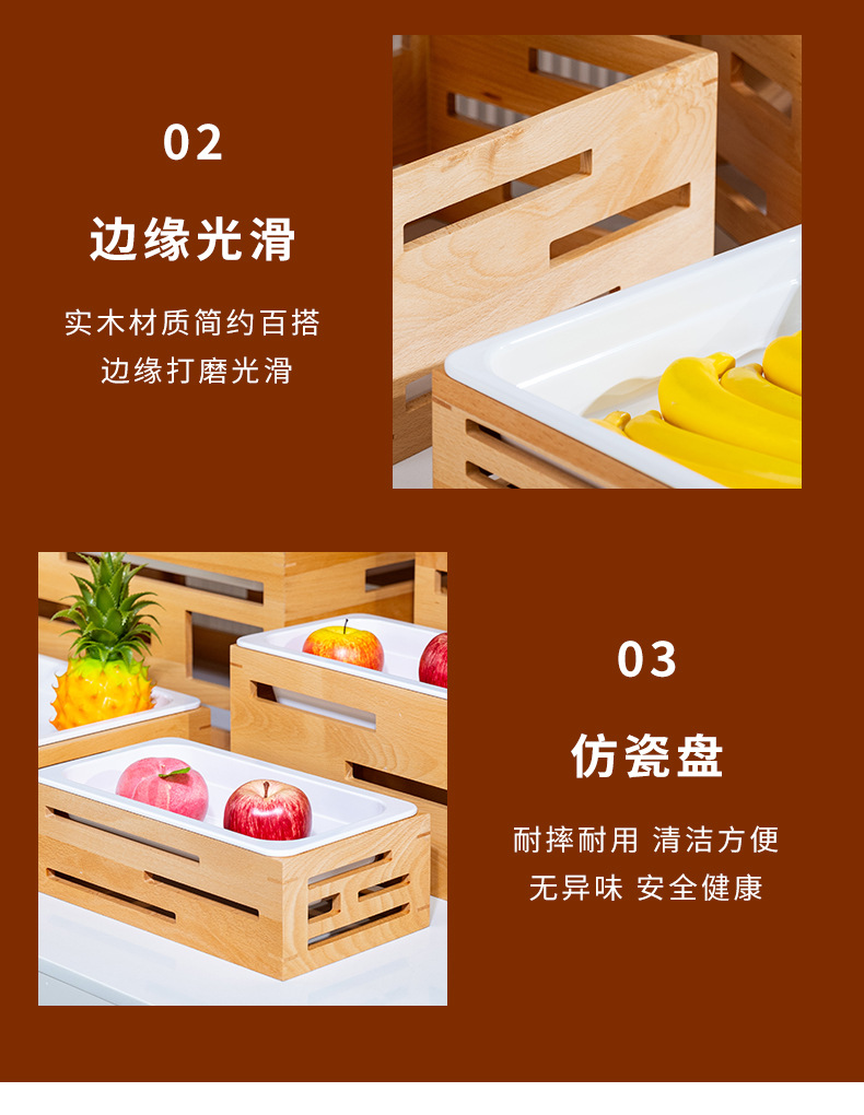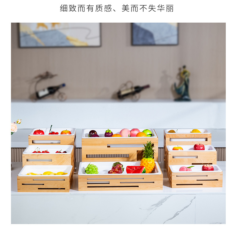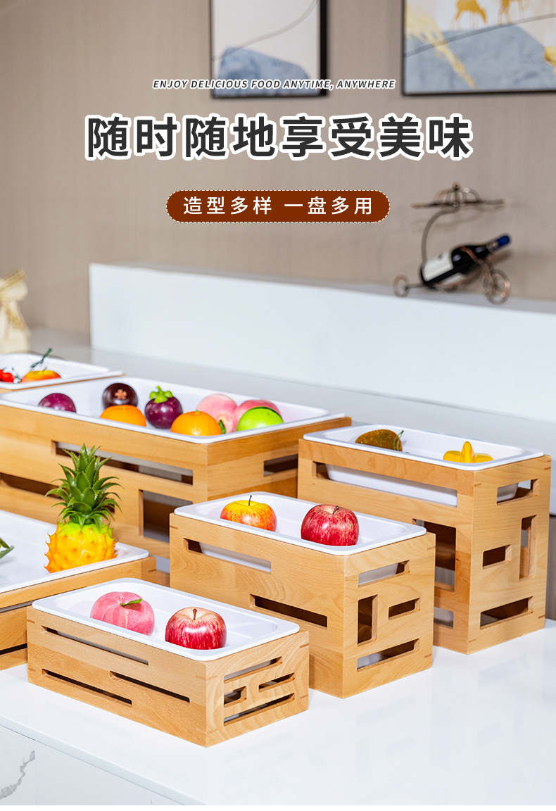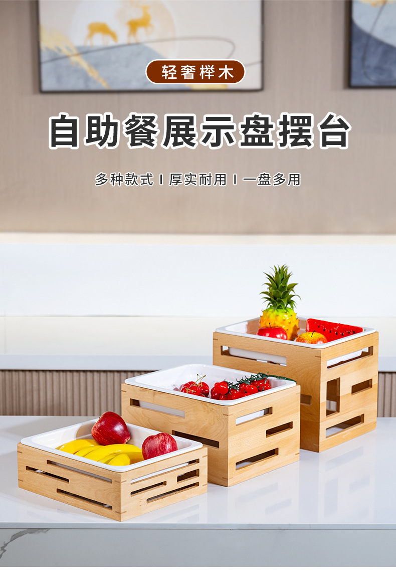 호텔 카페테리아 과일 살라 플레이트 디스플레이 플레이트 튀긴 차가운 요리 차가운 요리 디스플레이 스탠드 단단한 나무 빵 바구니