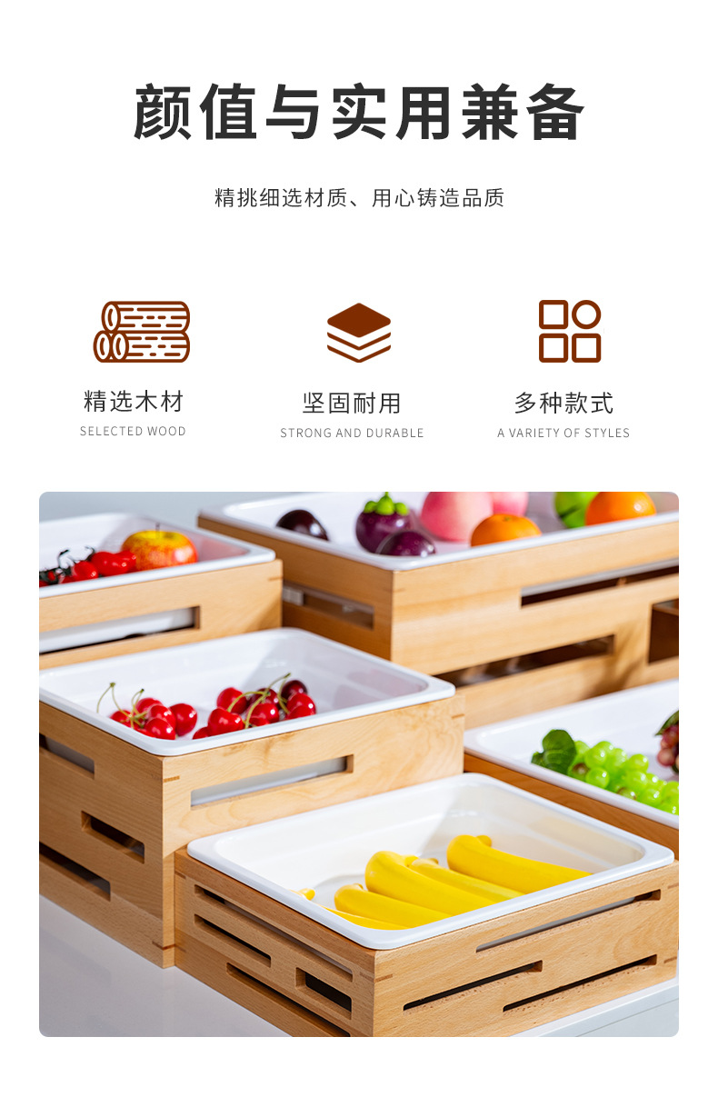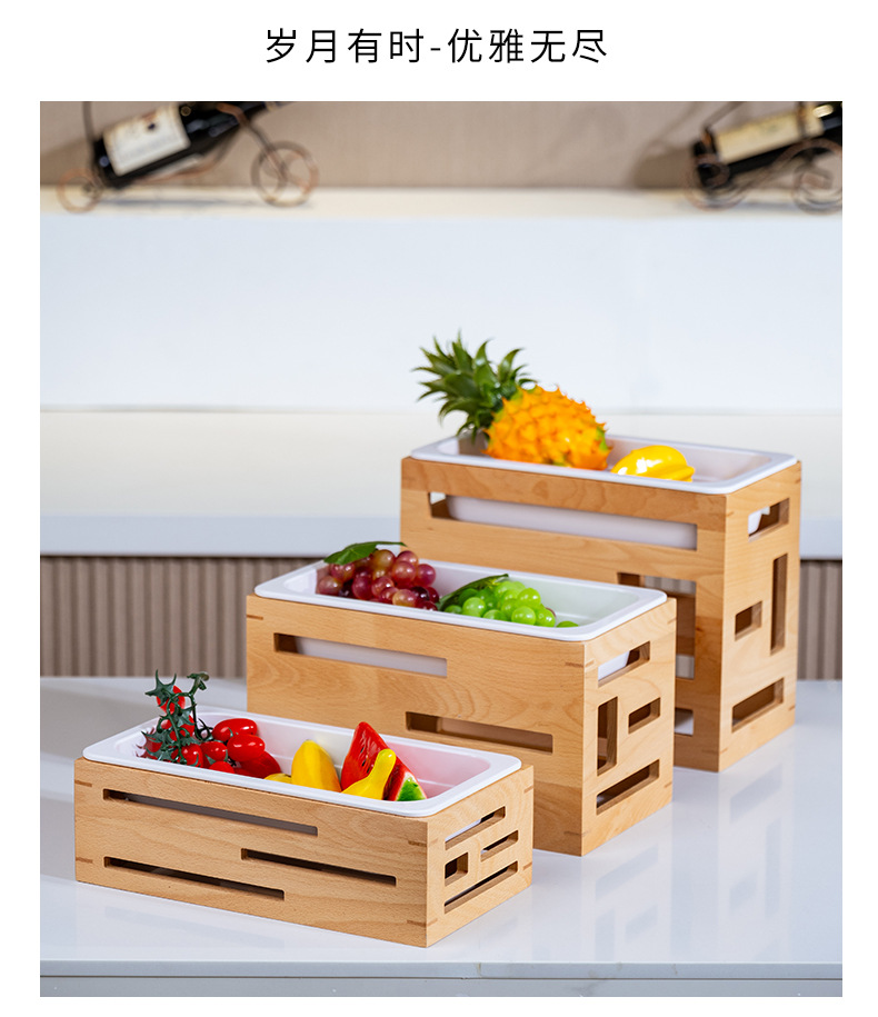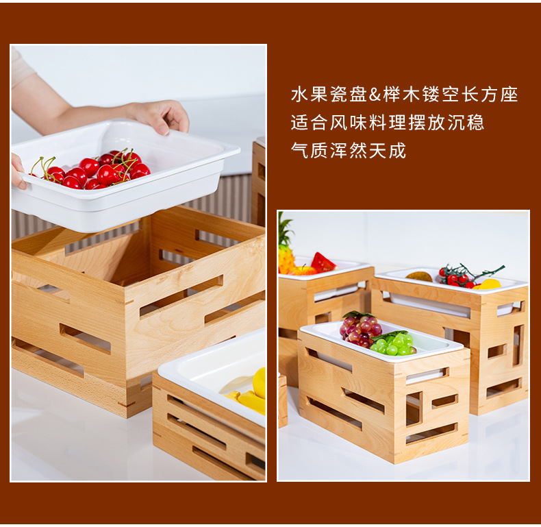 호텔 카페테리아 과일 살라 플레이트 디스플레이 플레이트 튀긴 차가운 요리 차가운 요리 디스플레이 스탠드 단단한 나무 빵 바구니스토어 가기
