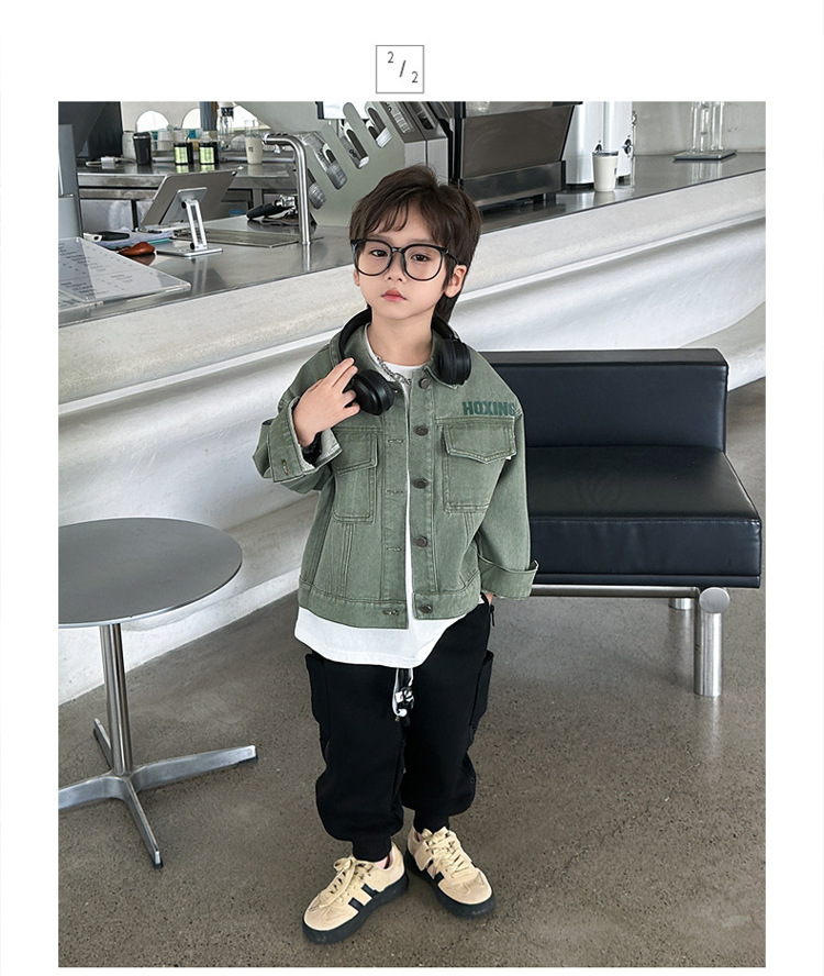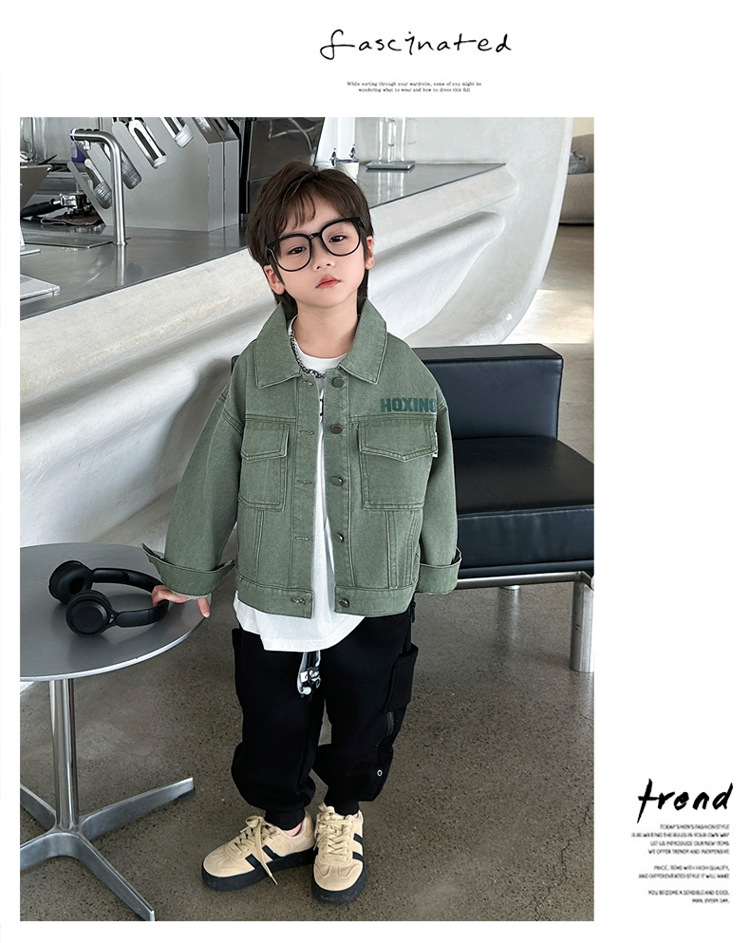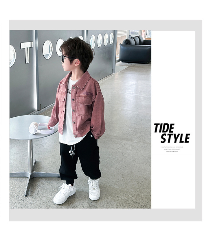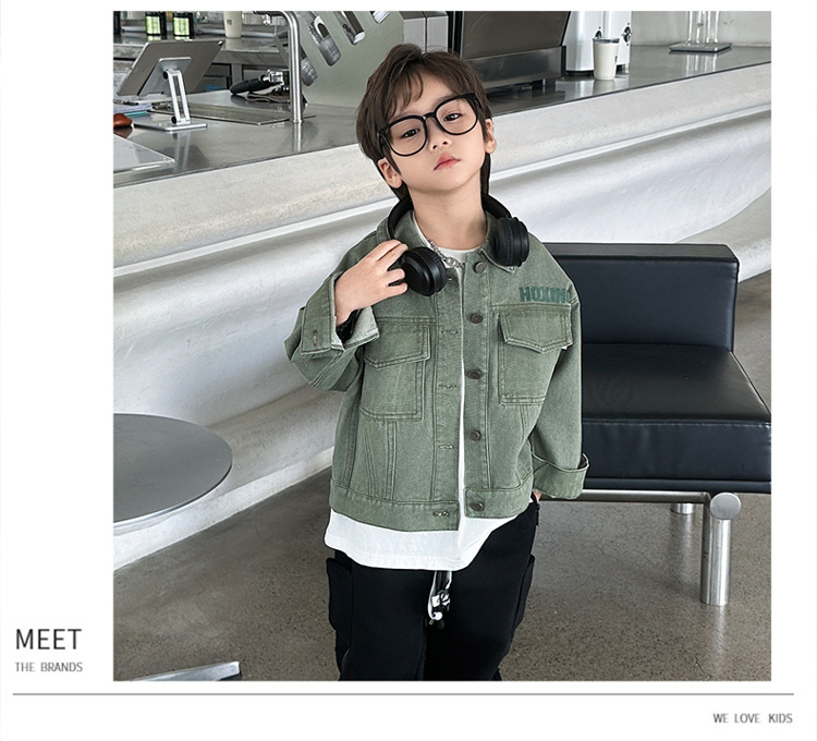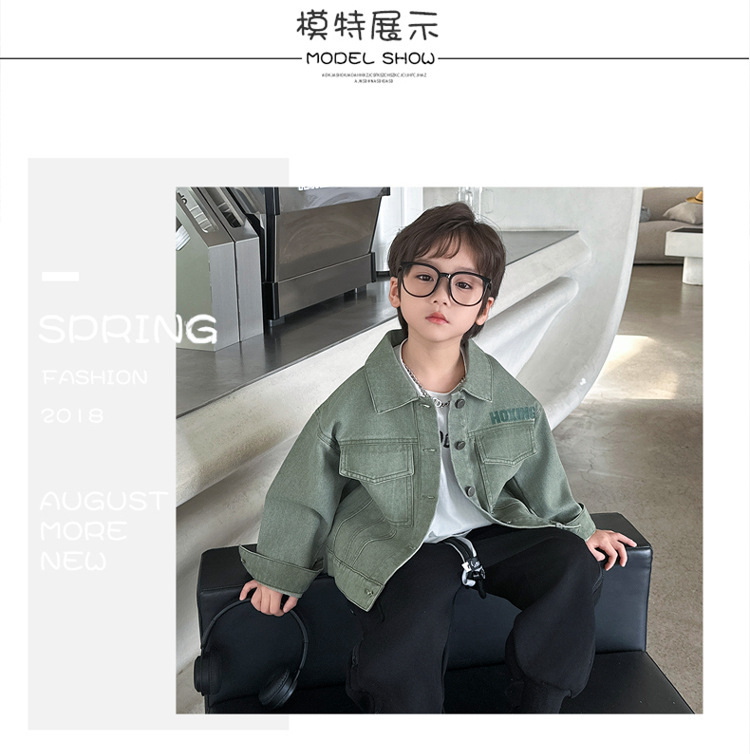 소년의 색면 데님 코트 봄 어린이 시원한 봄과 가을 새로운 캐주얼 재킷 어린이 서양식 탑스토어 가기