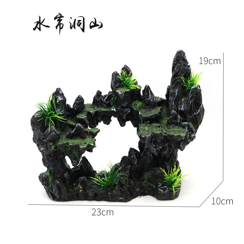 바위 흐르는 물 장식품 중소 물고기 탱크 조경 물 잔디 세트 돌 모방 수지 공예 물고기 및 새우 탈출 구멍스토어 가기