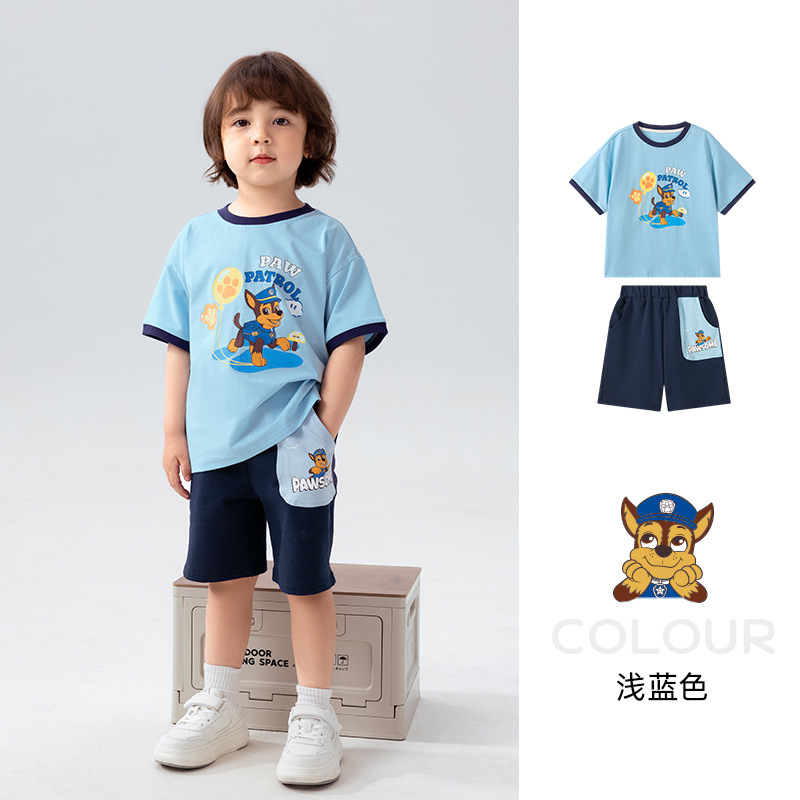 왕왕 팀 소년 여름 반팔 세트 2025 새로운 아동면 운동복 여름 아기 옷스토어 가기
