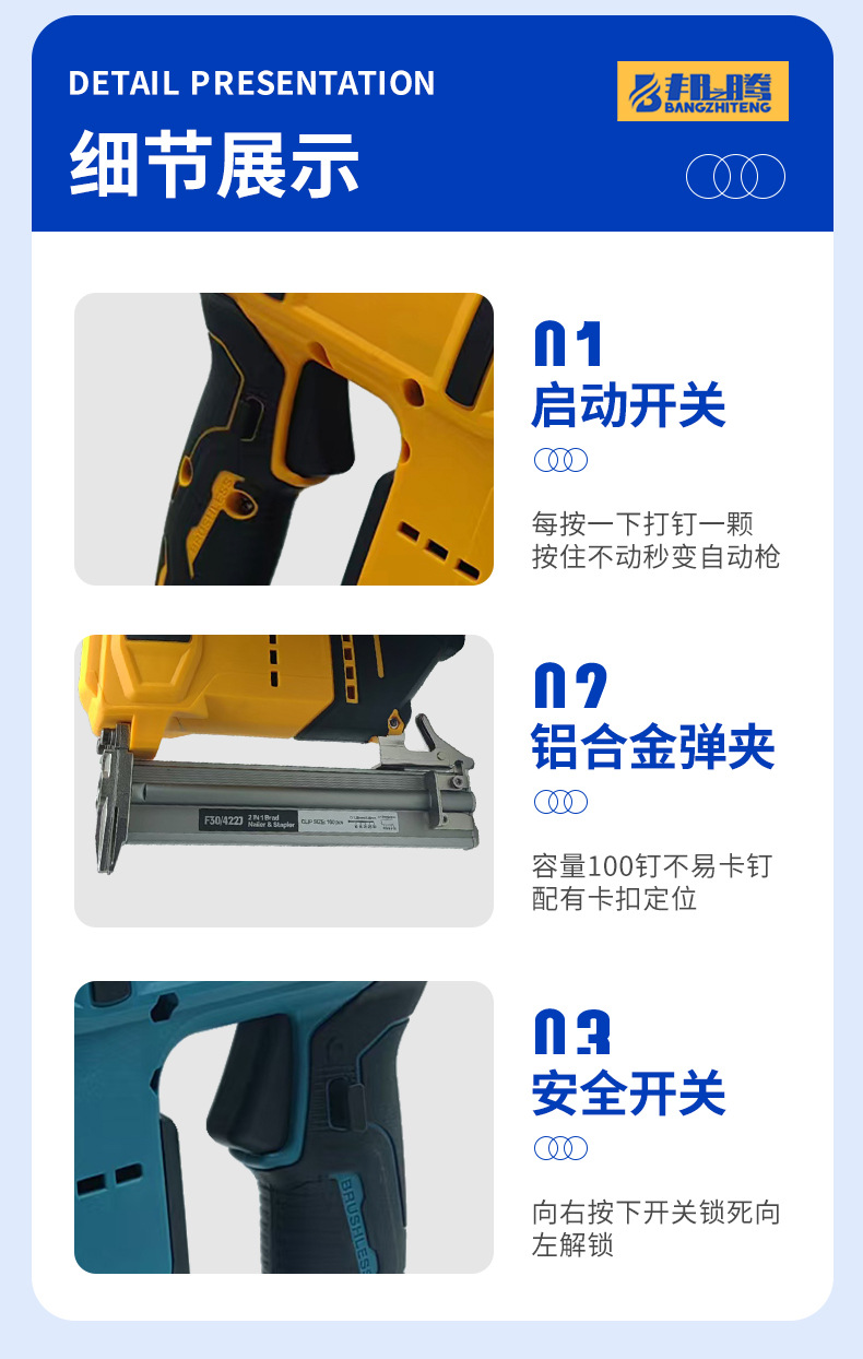 국경 간 브러시리스 리튬 네일 건 가정용 충전식 네일 건 목공 코드 네일 건 네일 건 이중 목적스토어 가기