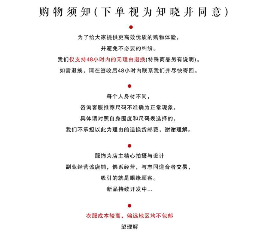 关于尺码问题:均为人工手工测量,由于每个人测量方式的不同可能存在1-3CM左右误差范围属于正常现象!