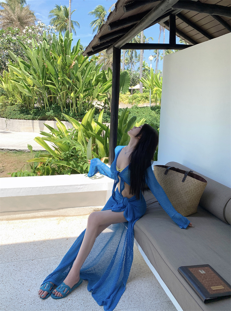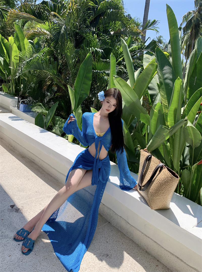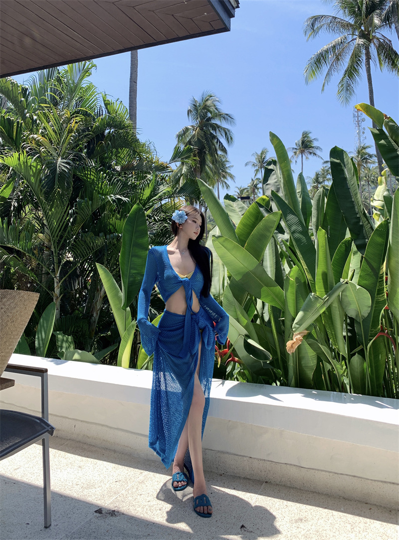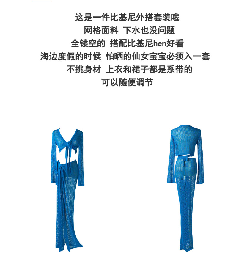 2025 블루 레이스업 니트 메쉬 슬릿 투피스 바디 쉐이핑 홀리데이 비키니와 자외선 차단 스커트스토어 가기