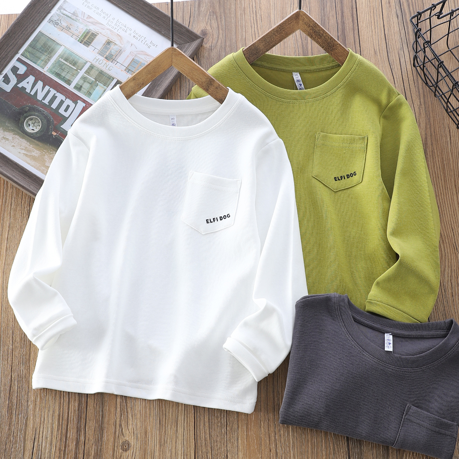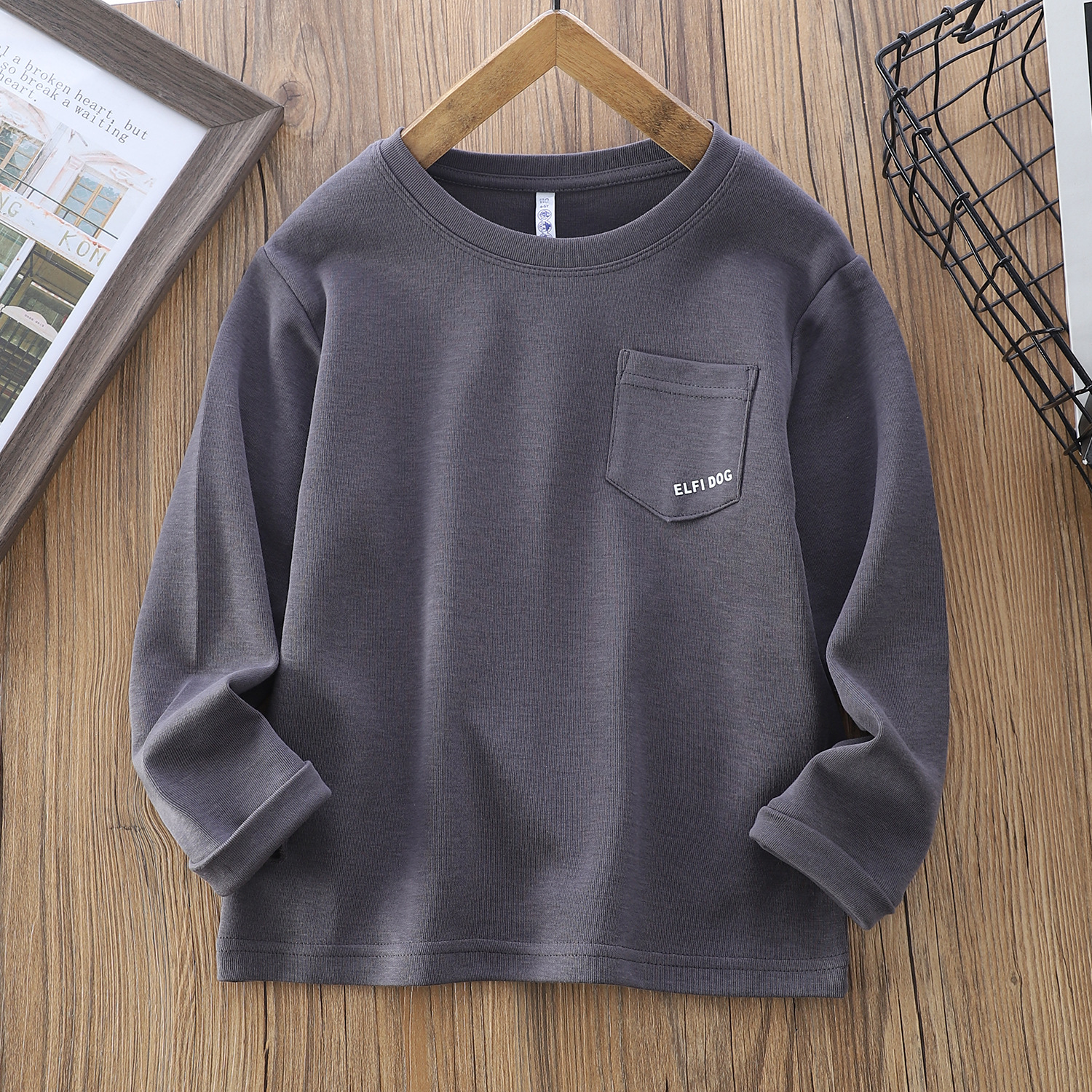 新款儿童打底衫韩版男女孩中大童纯色小口袋T恤百搭长袖jxk25116