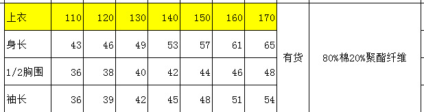 面料:80%棉20%聚酯纤维