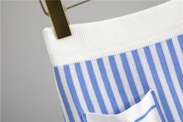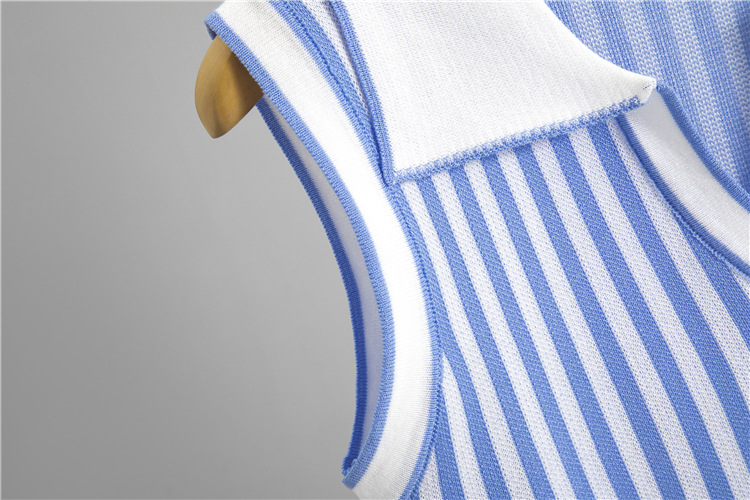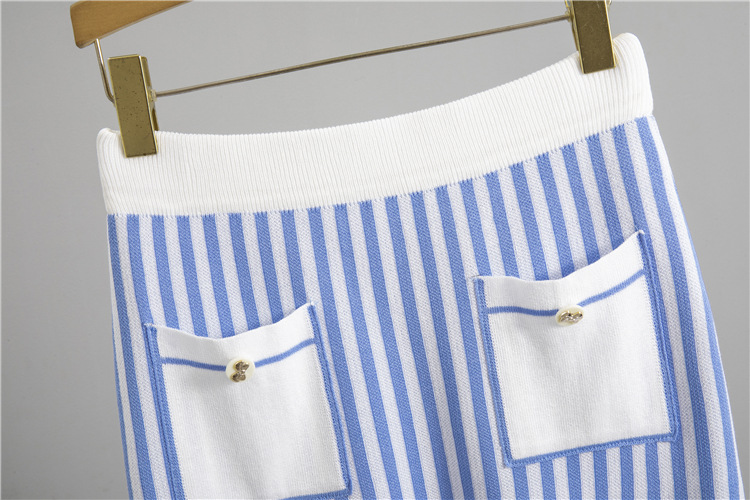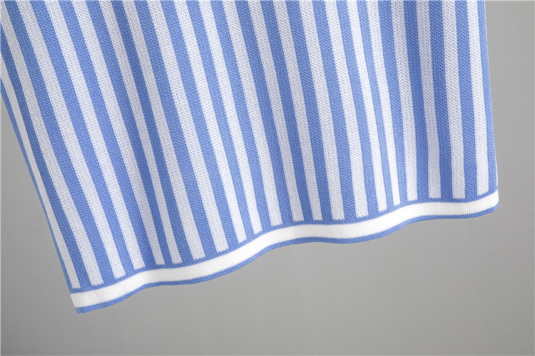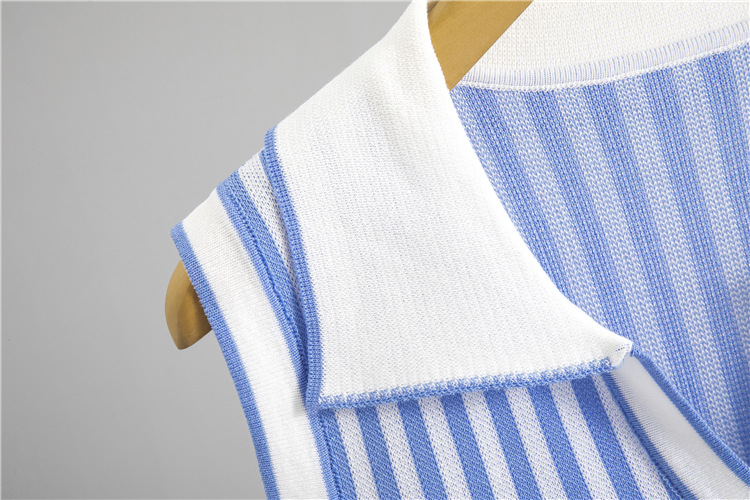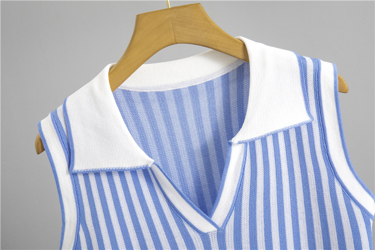 여름 니트 세트 여성용 빈티지 폴로 칼라 민소매 스트라이프 탑 하이 웨이스트 힙합 스커트 투피스 세트스토어 가기