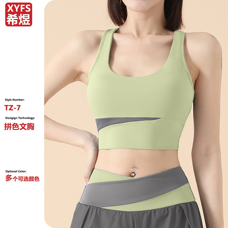 2026년 신상 누드톤 통기성 배색 스포츠 푸쉬업 탱크탑 고탄력 가슴 패드가 있는 요가 브라 여성용 피트니스 속옷스토어 가기
