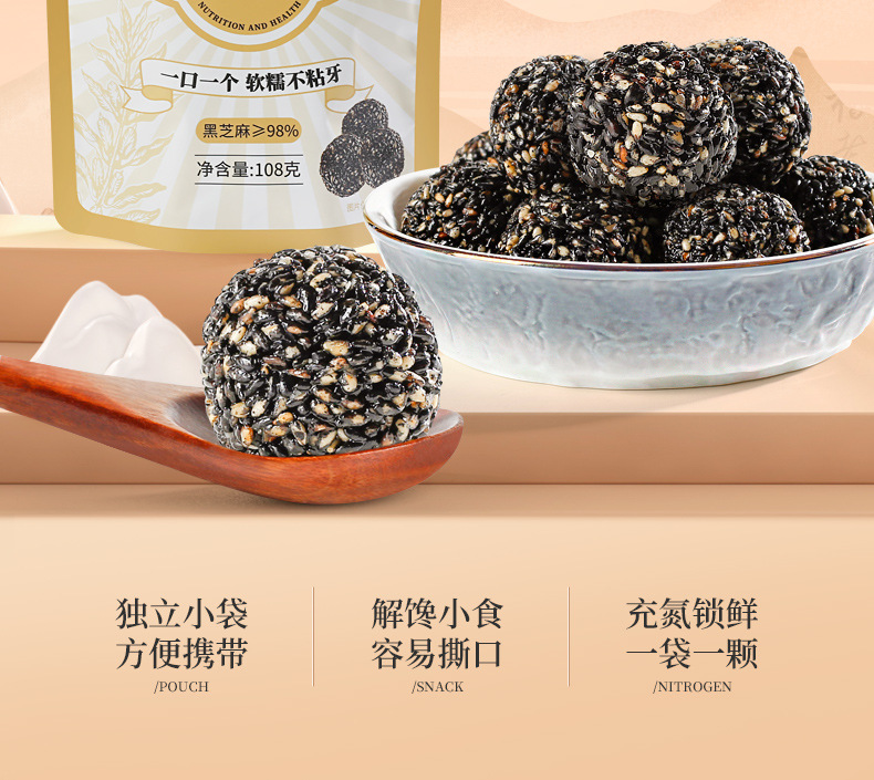 제조업체 공급 도매 맞춤형 가공 수제 검은 참깨 공 검은 참깨 공 사무실 캐주얼 스낵 맛있는 견과류