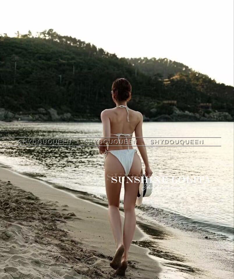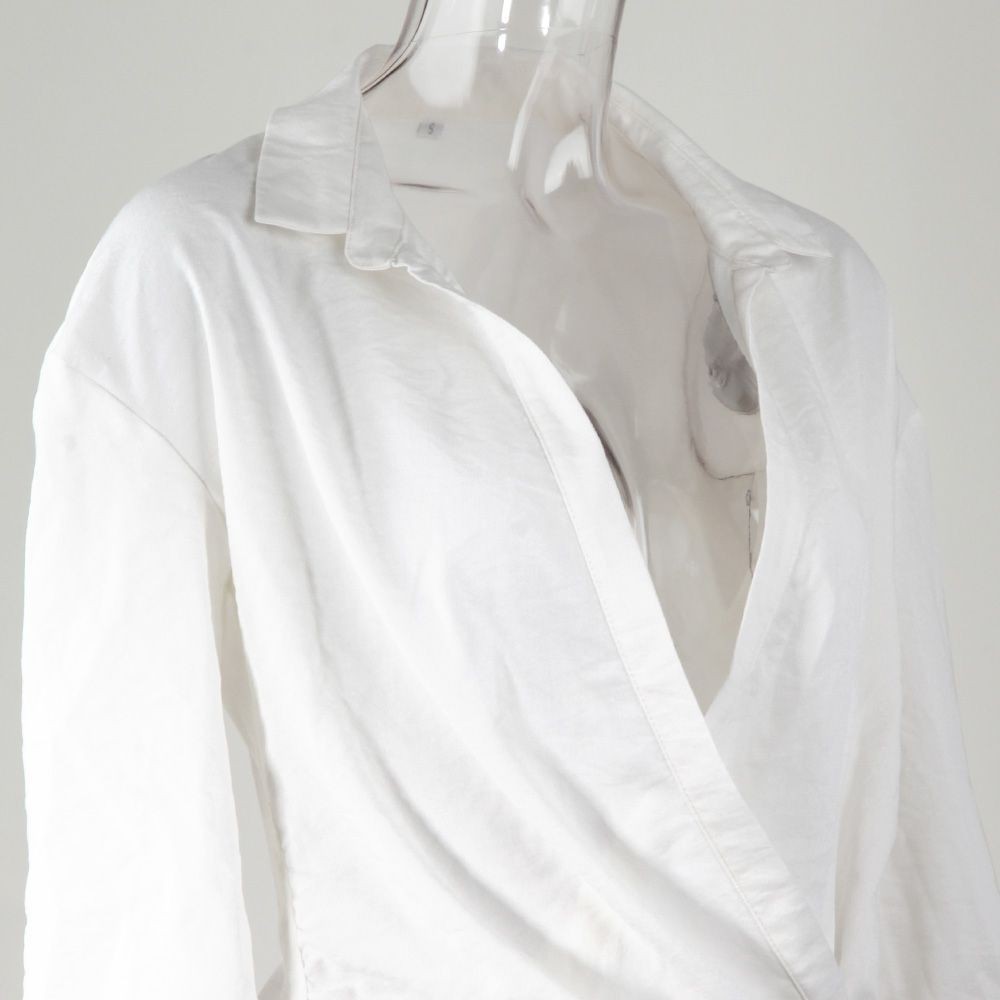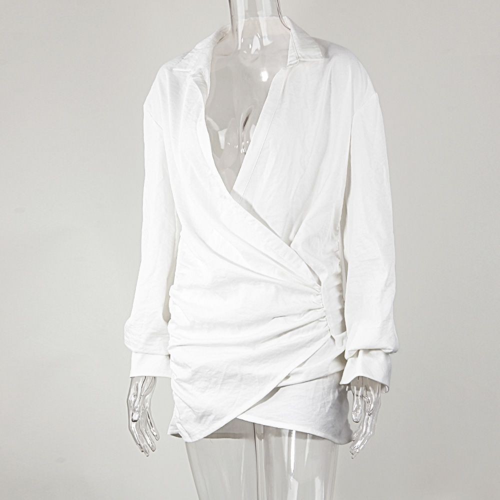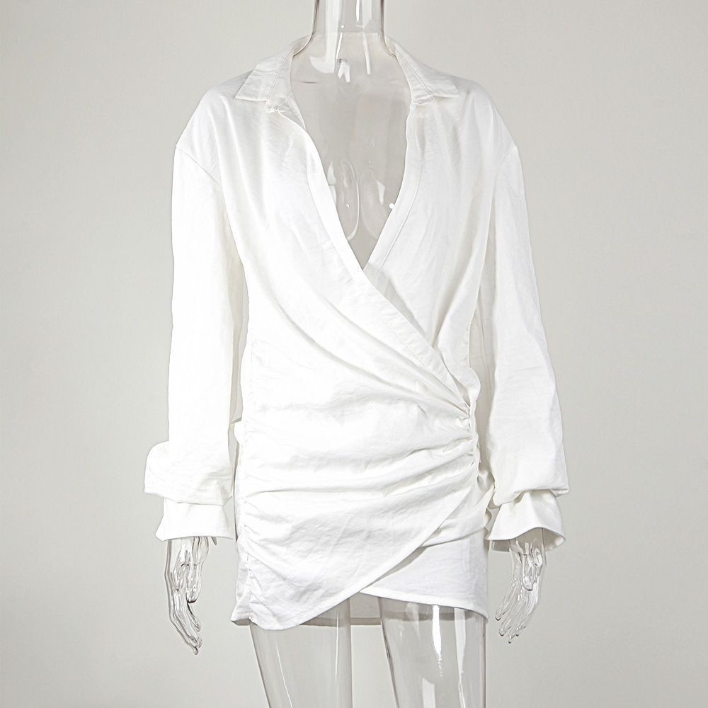 유럽과 미국의 긴팔 우아한 플리츠 슬리밍 여성 셔츠 스커트 원피스 짧은 치마 허리 V 넥 비키니 3 피스 세트스토어 가기