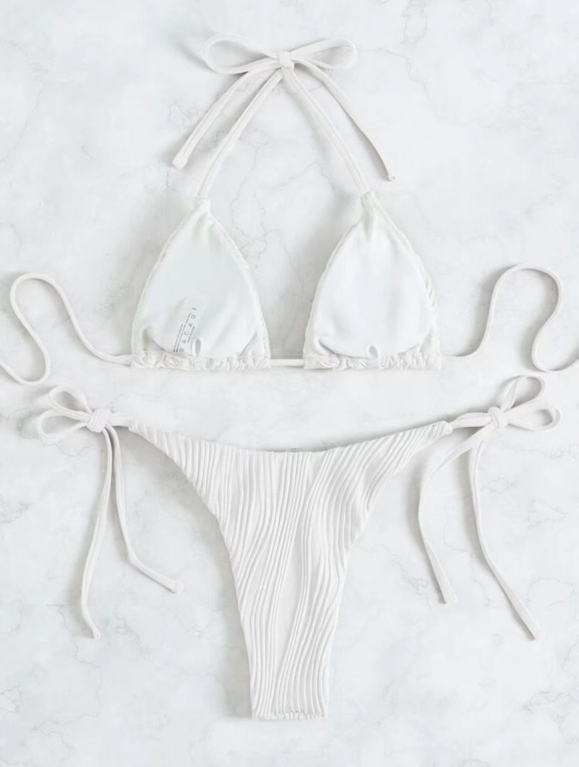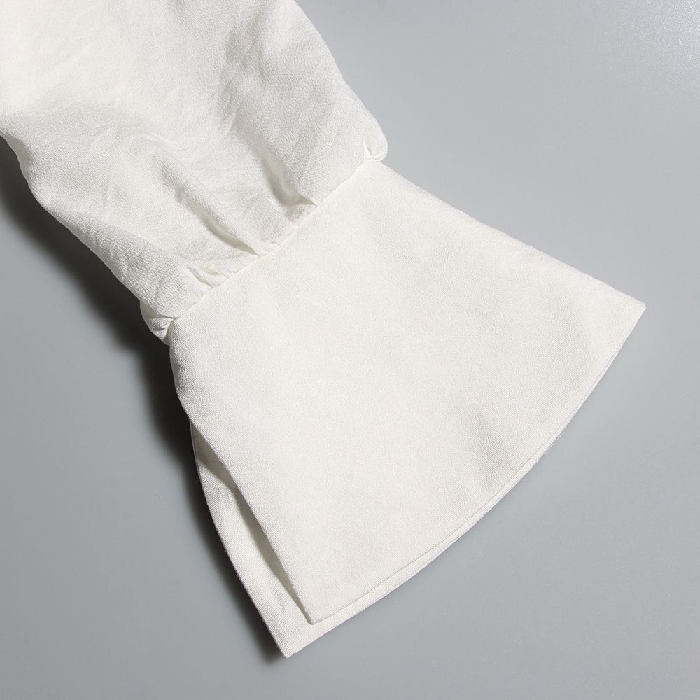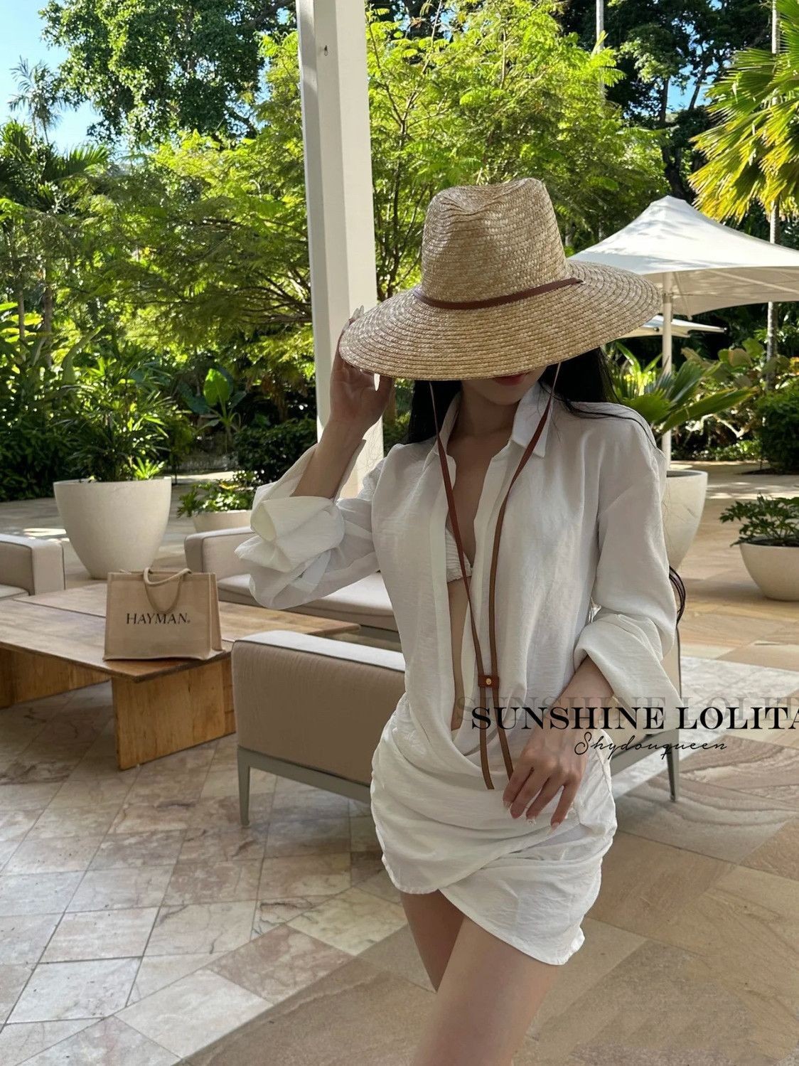 유럽과 미국의 긴팔 우아한 플리츠 슬리밍 여성 셔츠 스커트 원피스 짧은 치마 허리 V 넥 비키니 3 피스 세트
