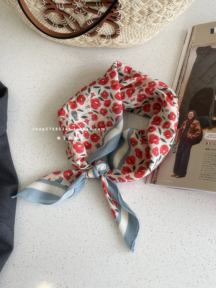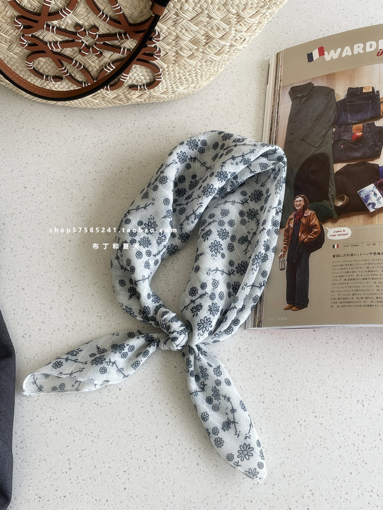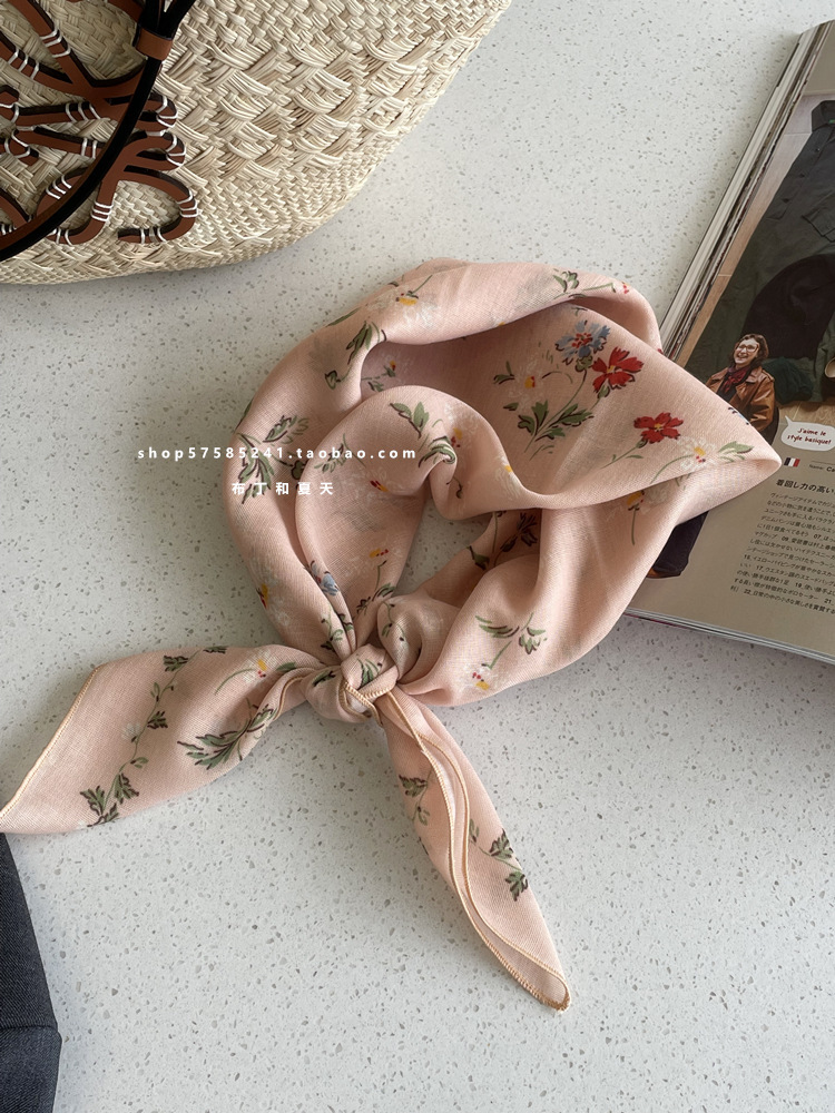 면 및 리넨 스퀘어 스카프 컬렉션 ~ 슈퍼 멀티 컬러 플로랄 도트 스카프 예술 모리 스카프 헤어 벨트 가방 스트랩 여성스토어 가기