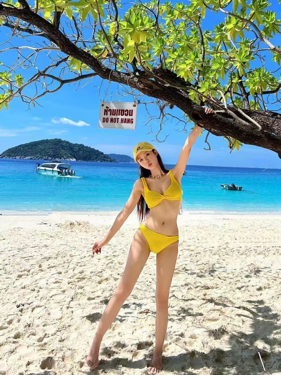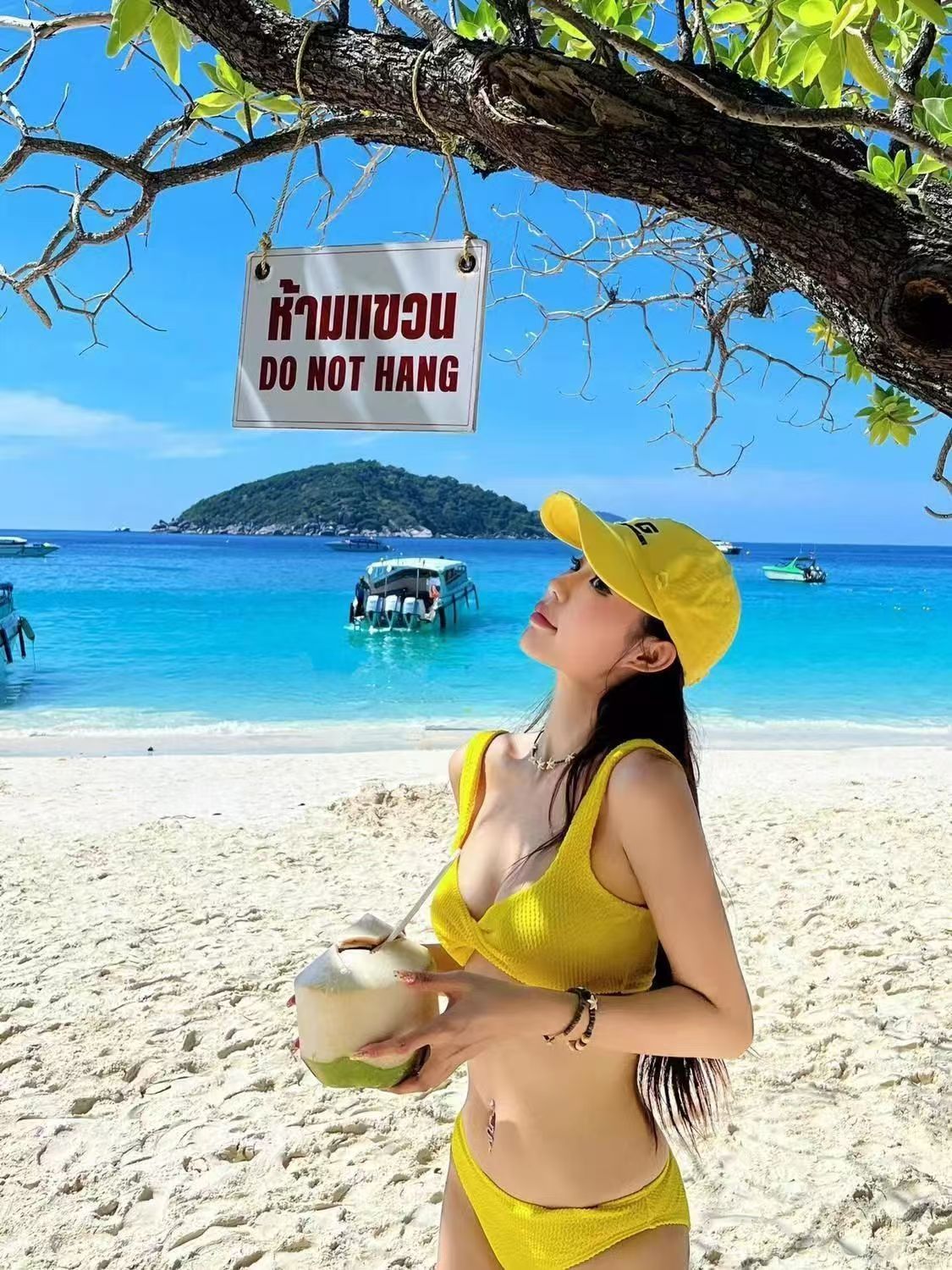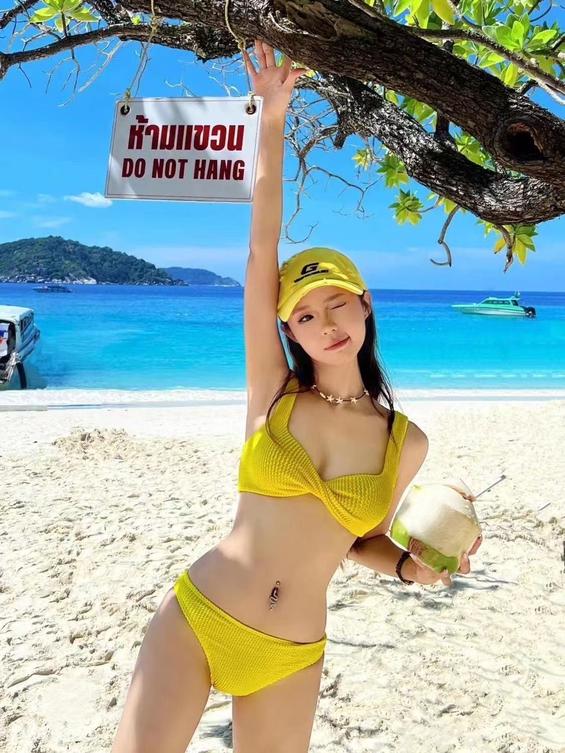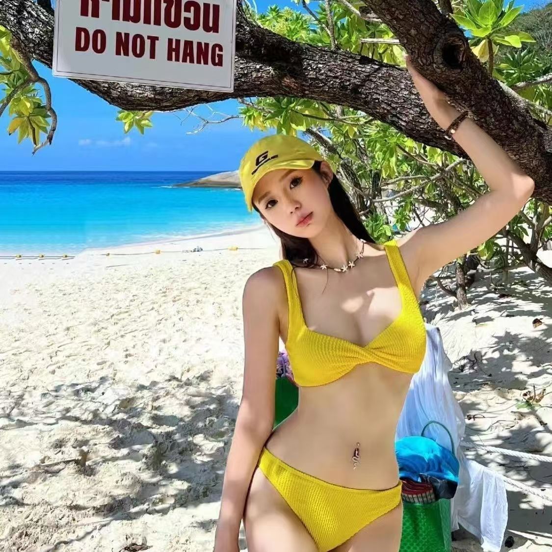 여성용 수영복 레몬 옐로우 화이트 스플릿 트라이앵글 비키니 순수한 욕망 섹시한 작은 가슴 뜨거운 소녀 가슴 패드가있는 온천 휴가