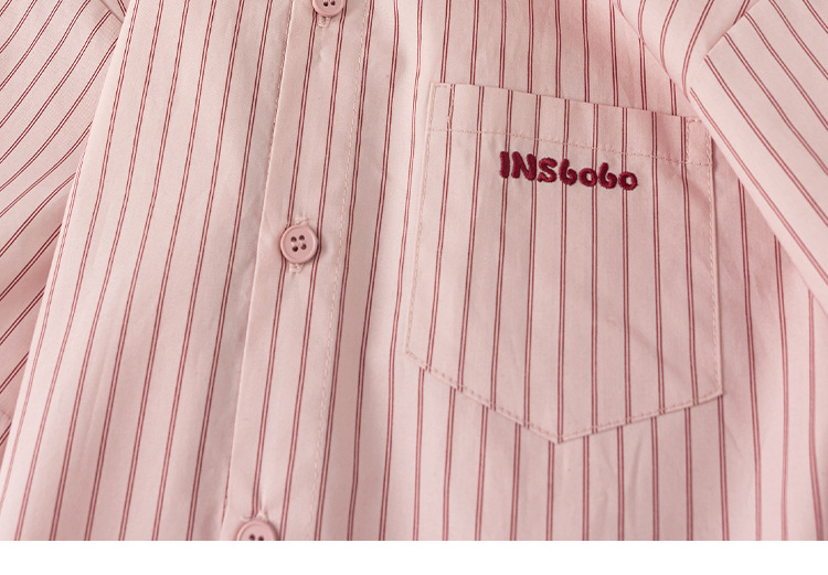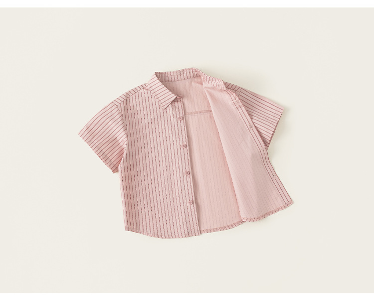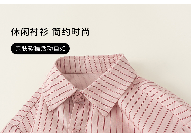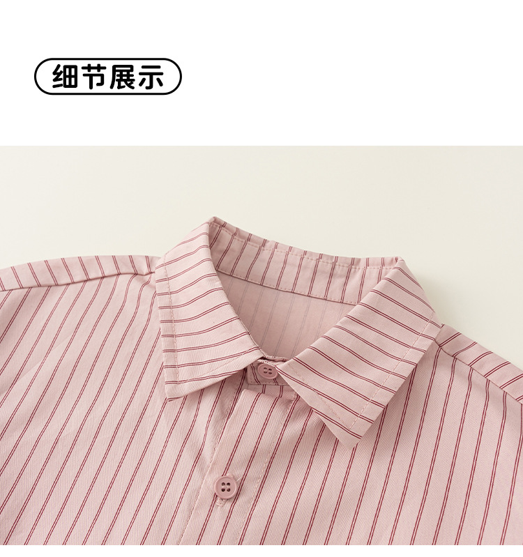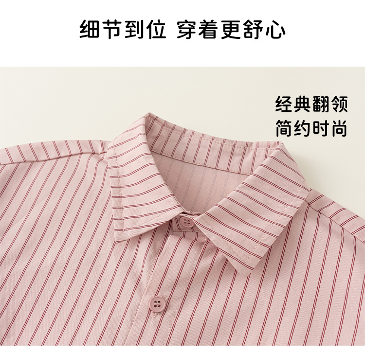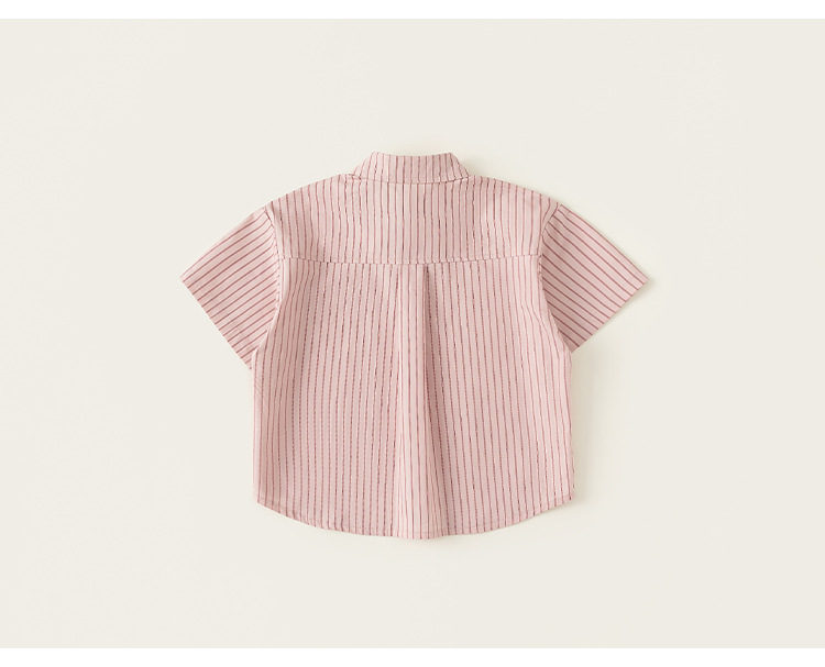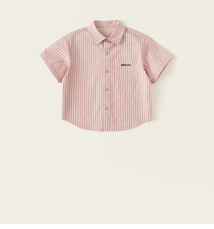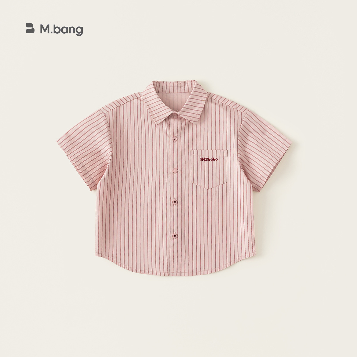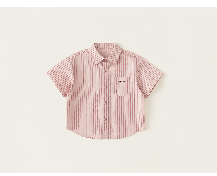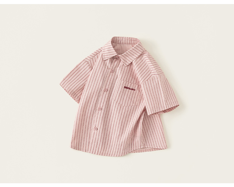 유바오 아동복 2026 여름 신상 핑크 스트라이프 남아 셔츠 여름옷 아동용 레터링 캐주얼 셔츠 다용도스토어 가기