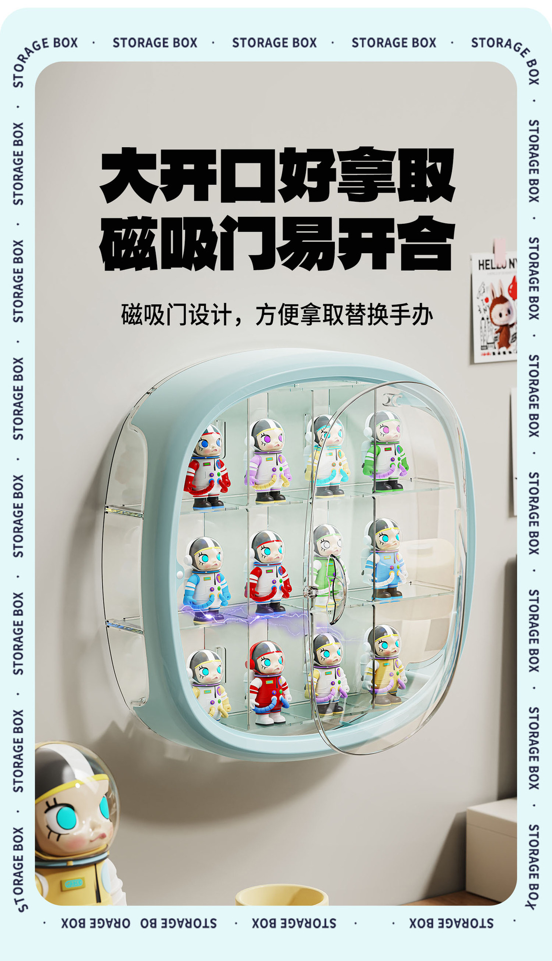 새로운 방진 아크릴 블라인드 박스 디스플레이 랙 벽걸이 형 공간 캡슐 타이드 플레이 투명 디스플레이 캐비닛 핸드 스토리지 박스