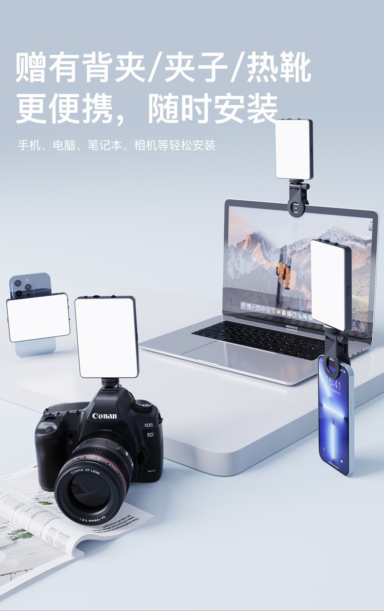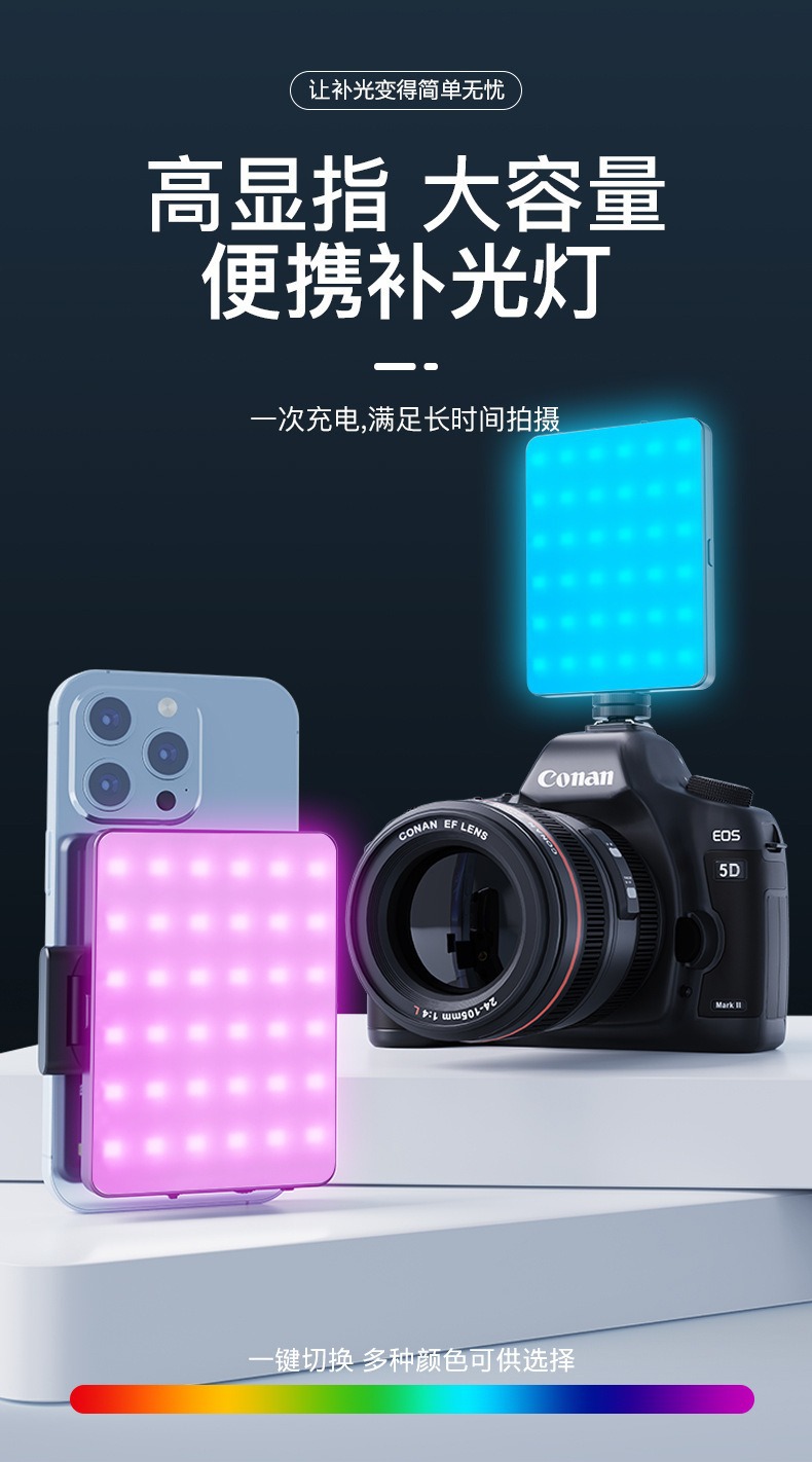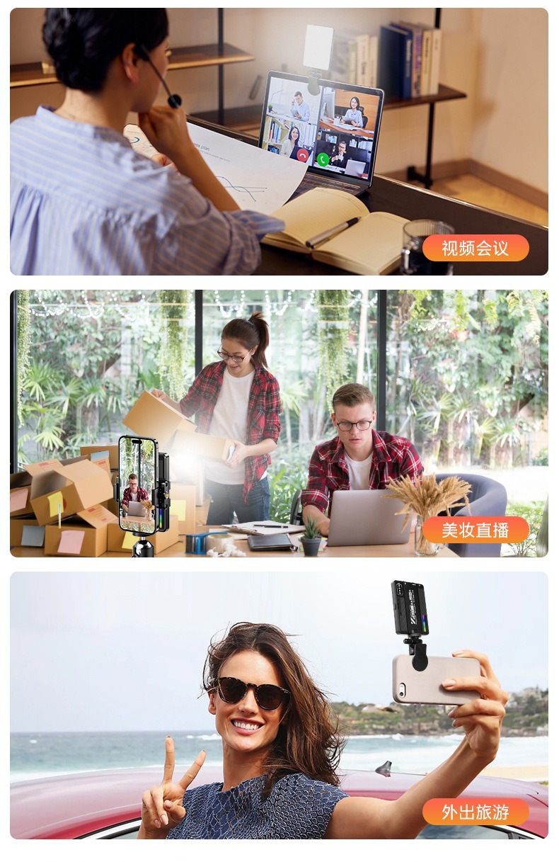휴대폰 카메라 LED 포켓 조명 라이브 방송 촬영 셀카 RGB 휴대용 조명 무단계 조광