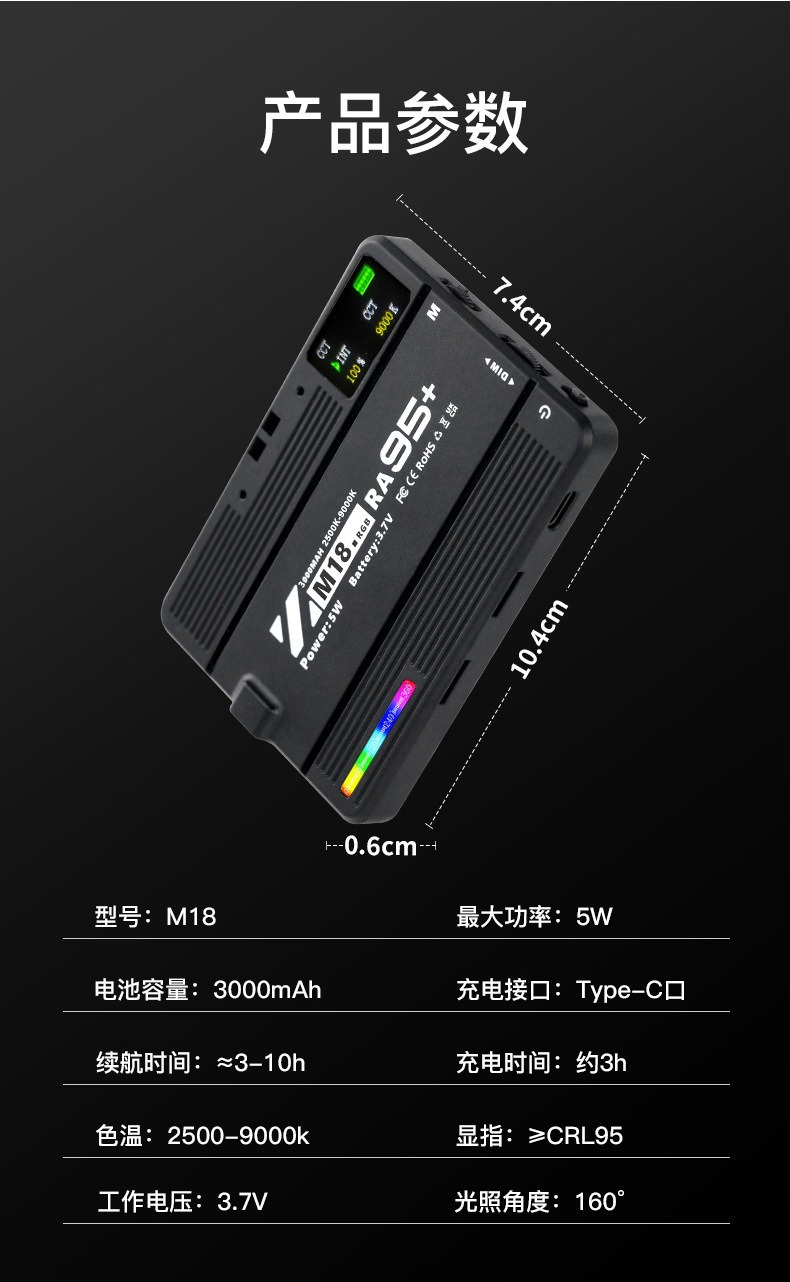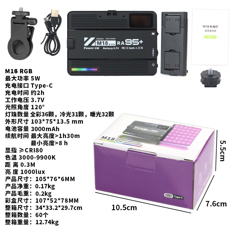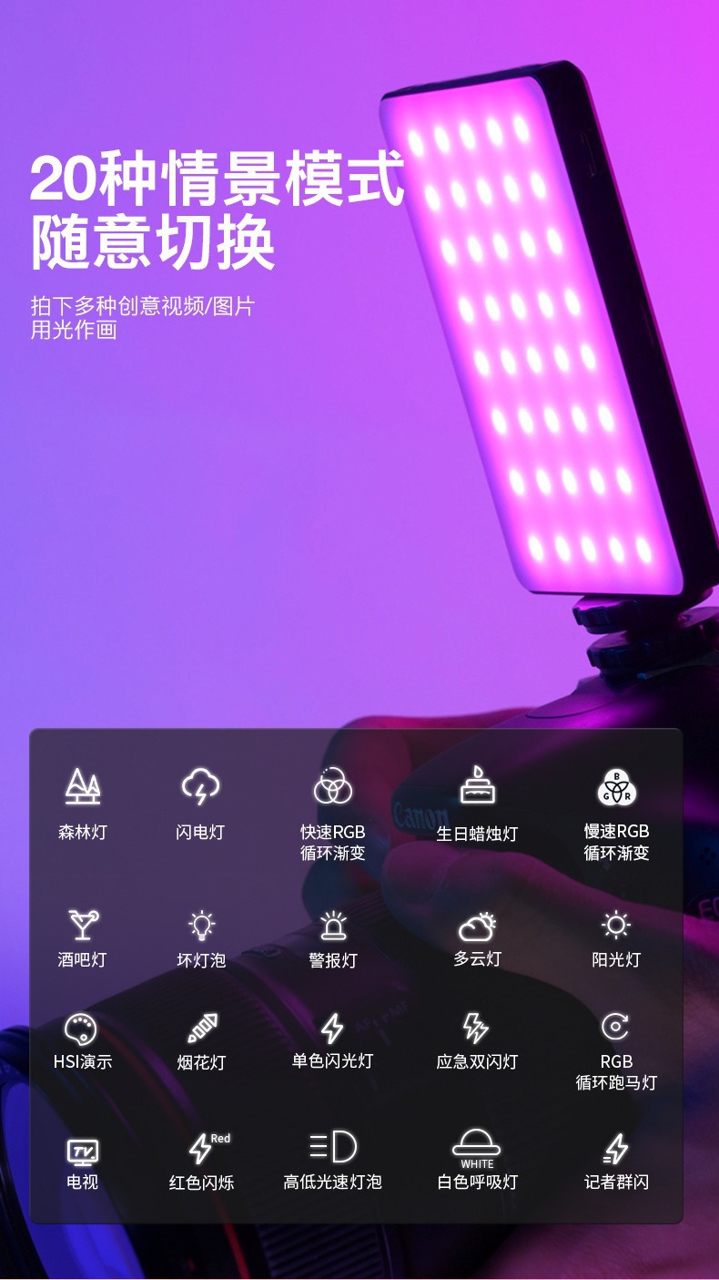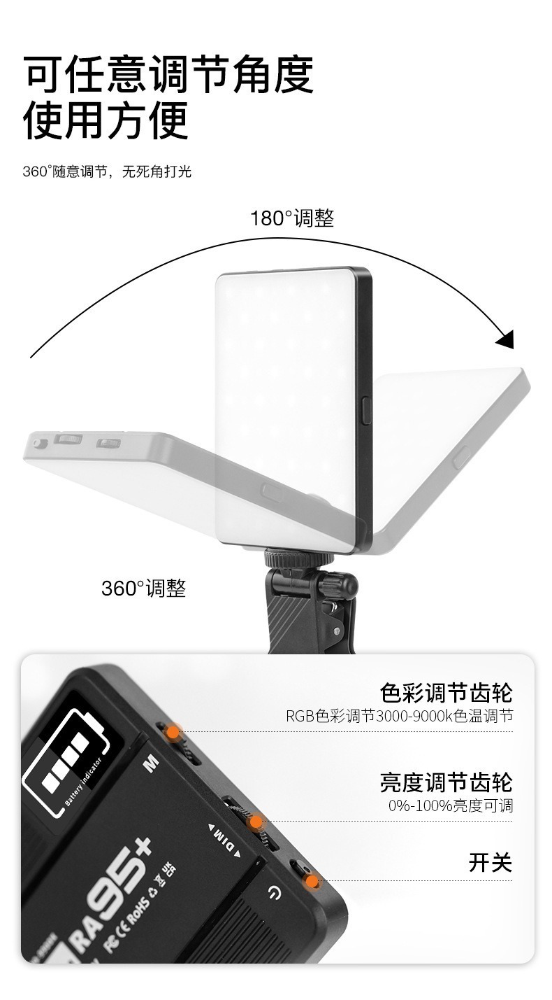 휴대폰 카메라 LED 포켓 조명 라이브 방송 촬영 셀카 RGB 휴대용 조명 무단계 조광