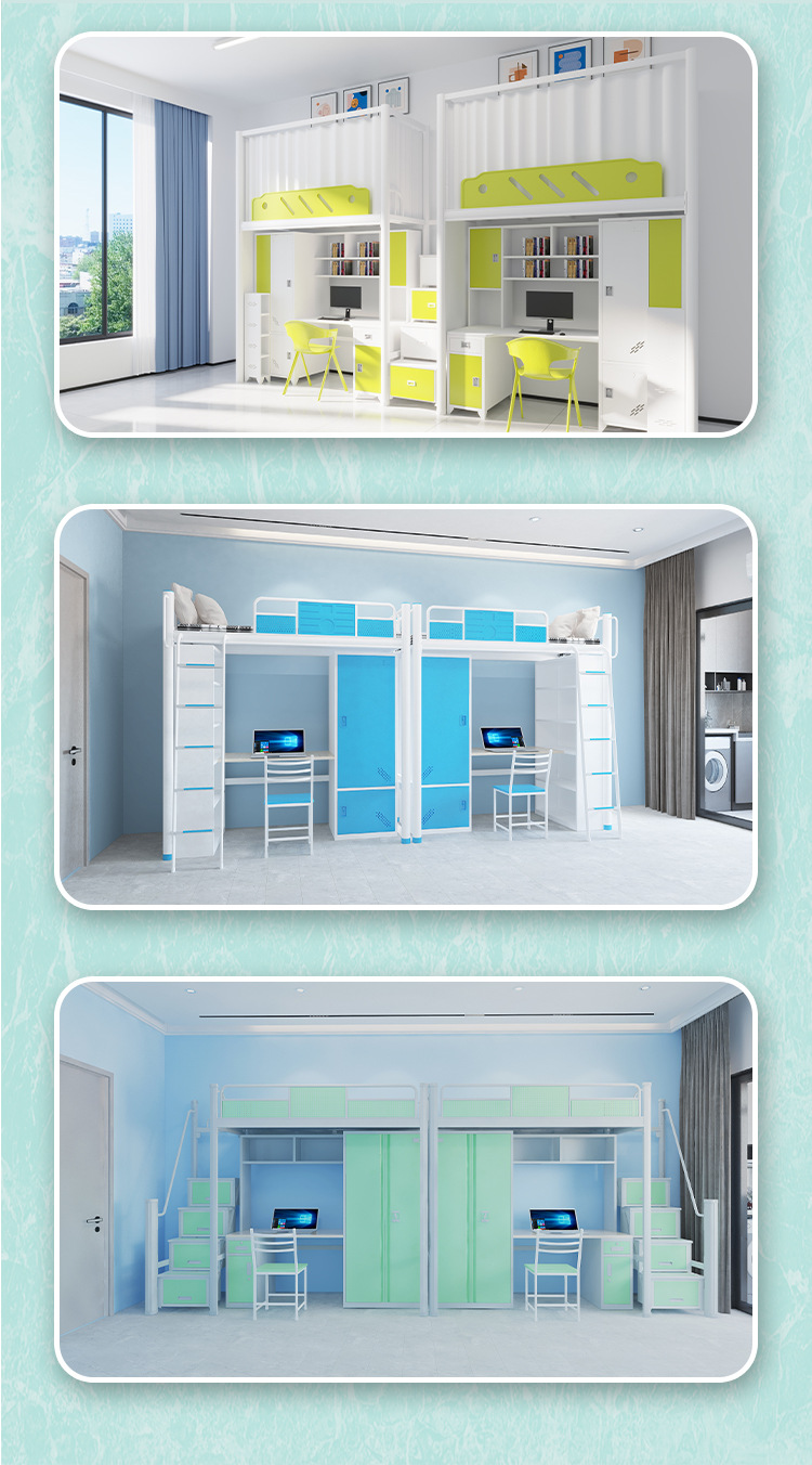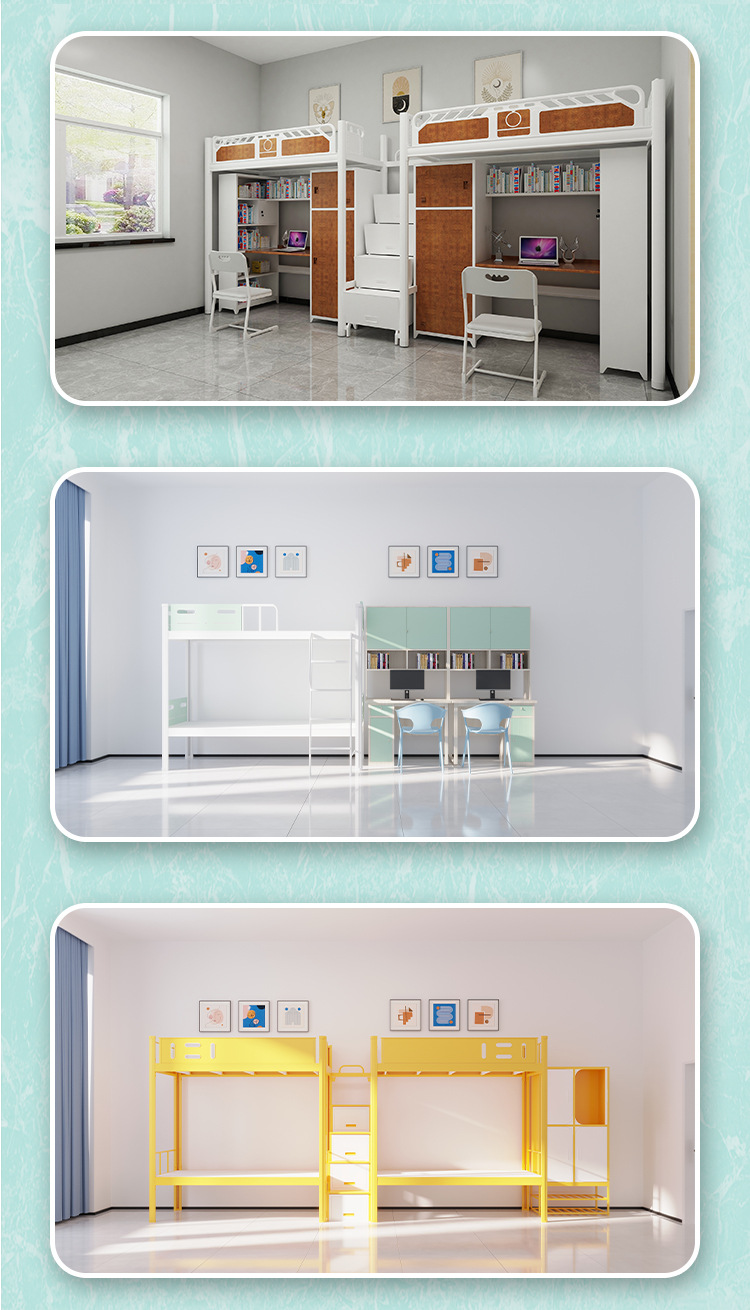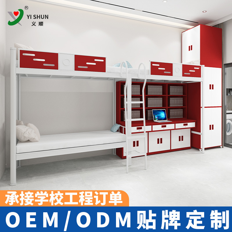학교 아파트용 이층 철제 침대, 초중등학생 기숙사용 침대, 침대 아래 테이블, 맞춤형, 해외 수출용스토어 가기