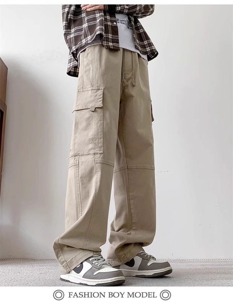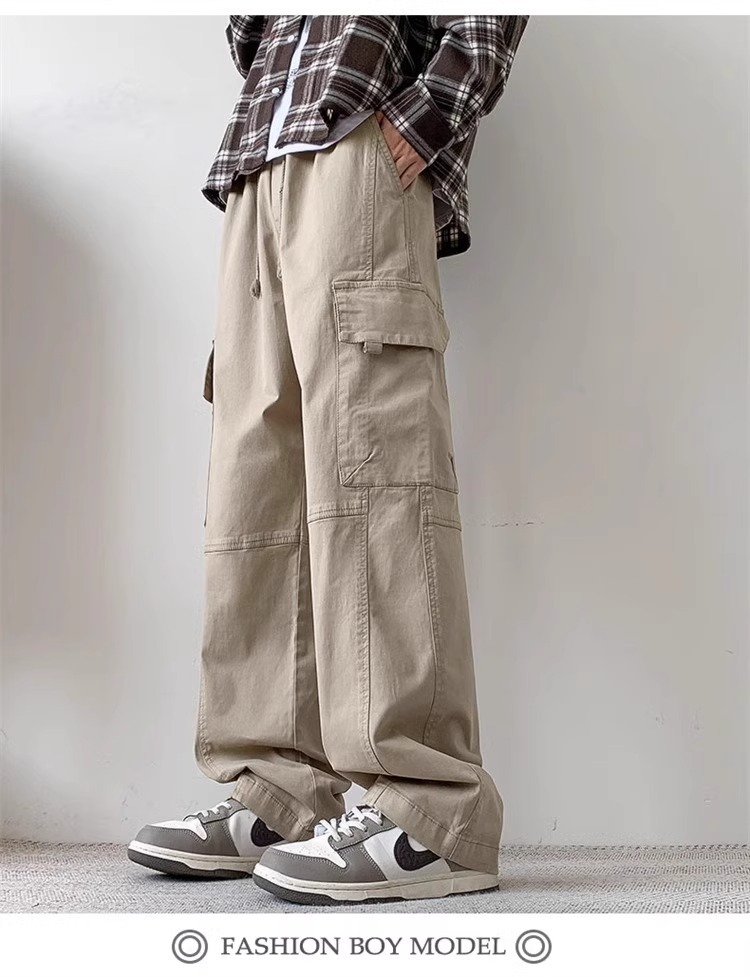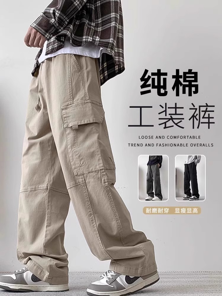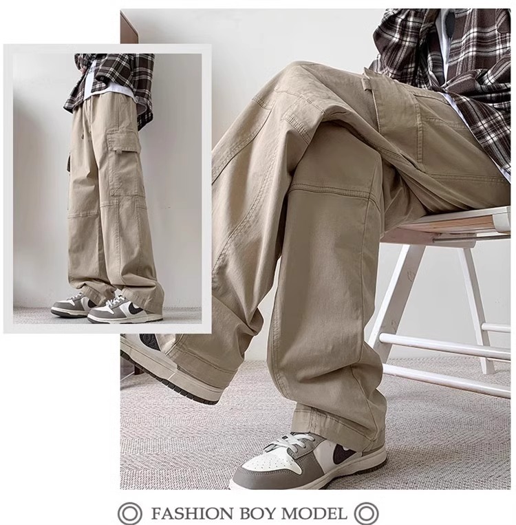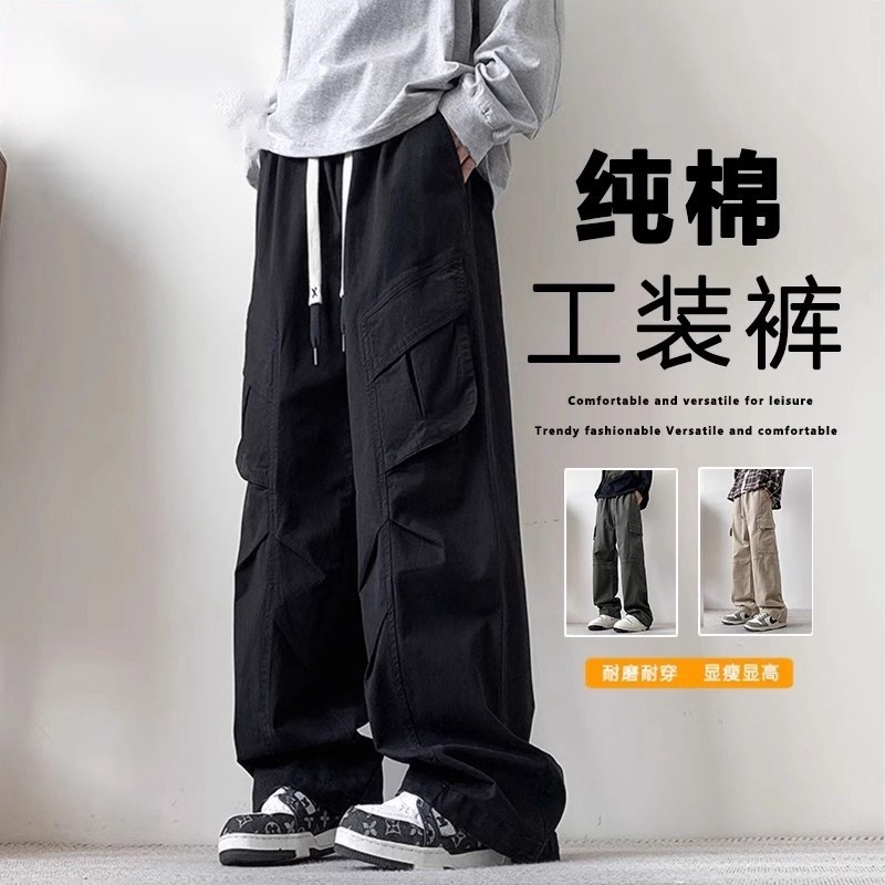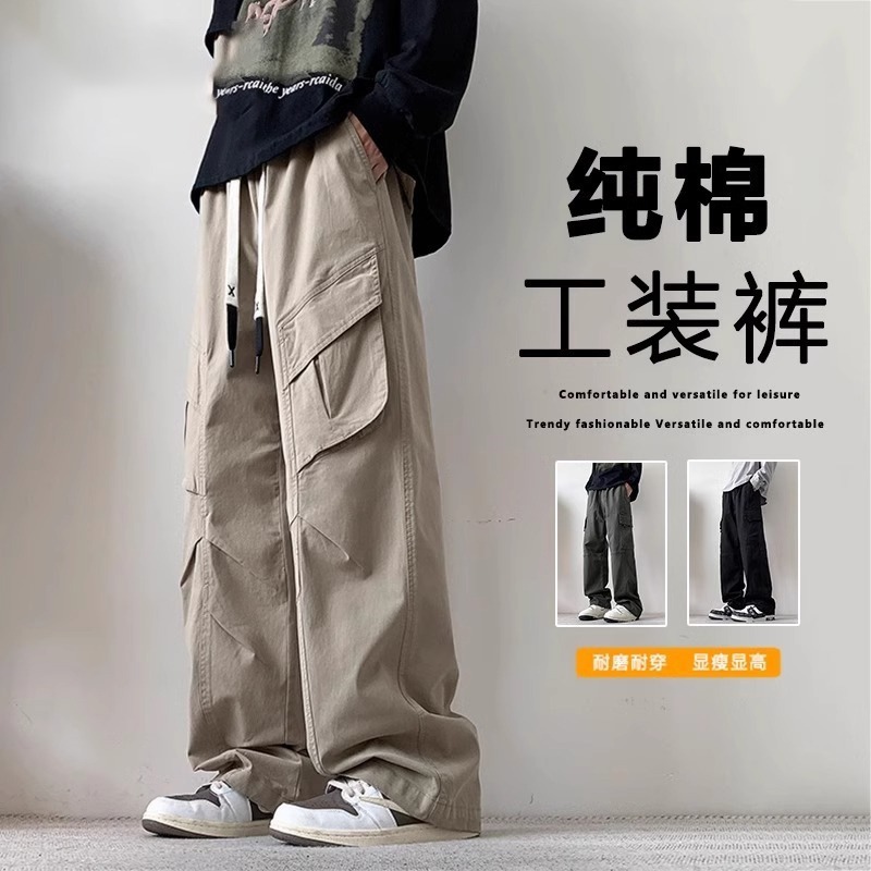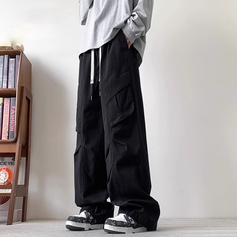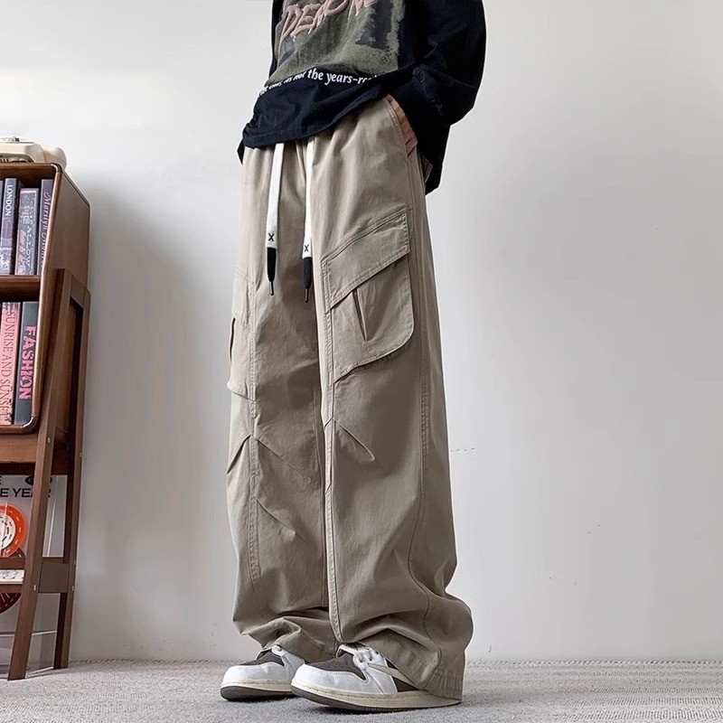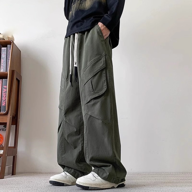 봄과 가을 새로운 미국 스타일 트렌디 한 브랜드 플러스 사이즈 바지 남성용 느슨한 스트레이트 다리 바지 유행 캐주얼 플리츠 와이드 다리 바지