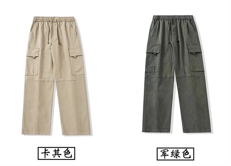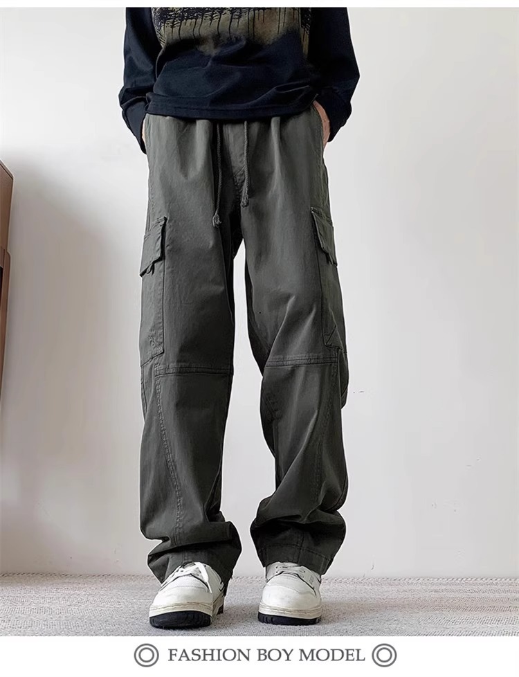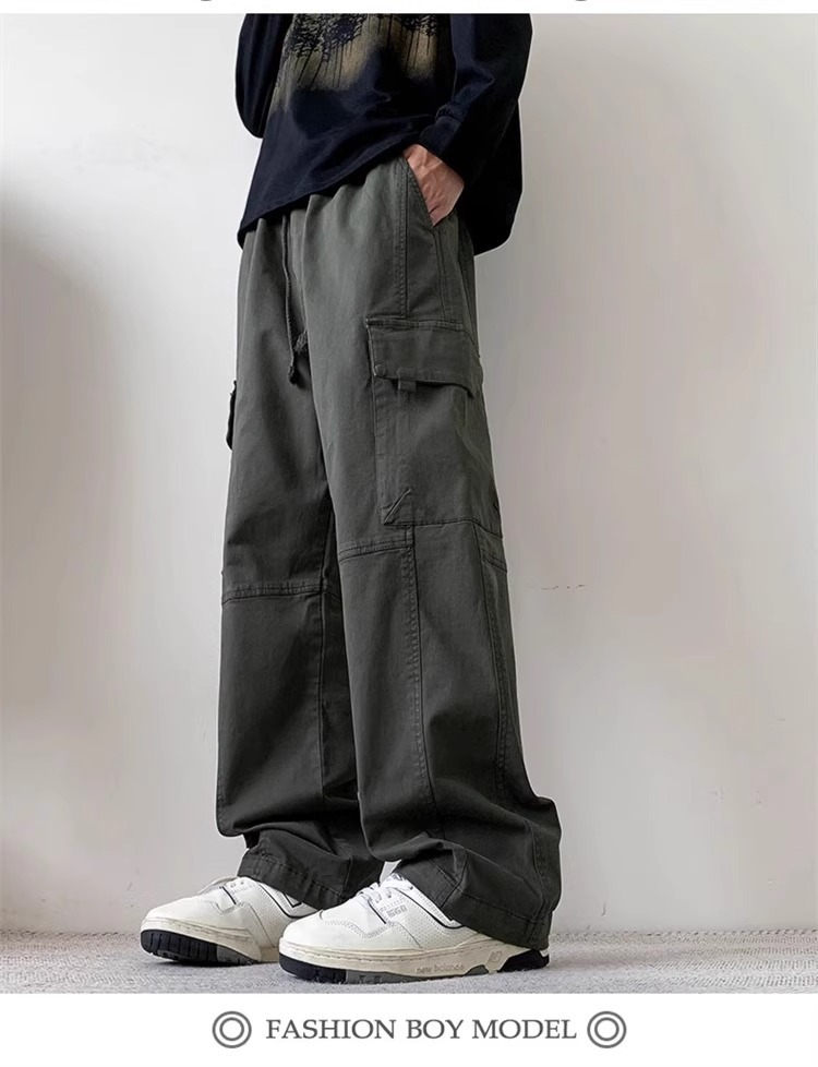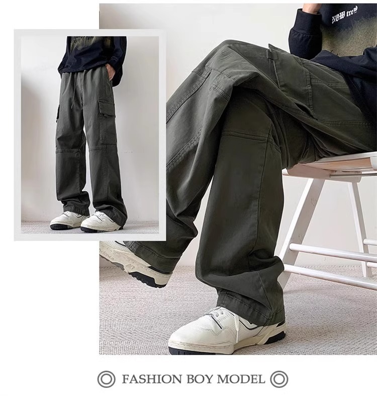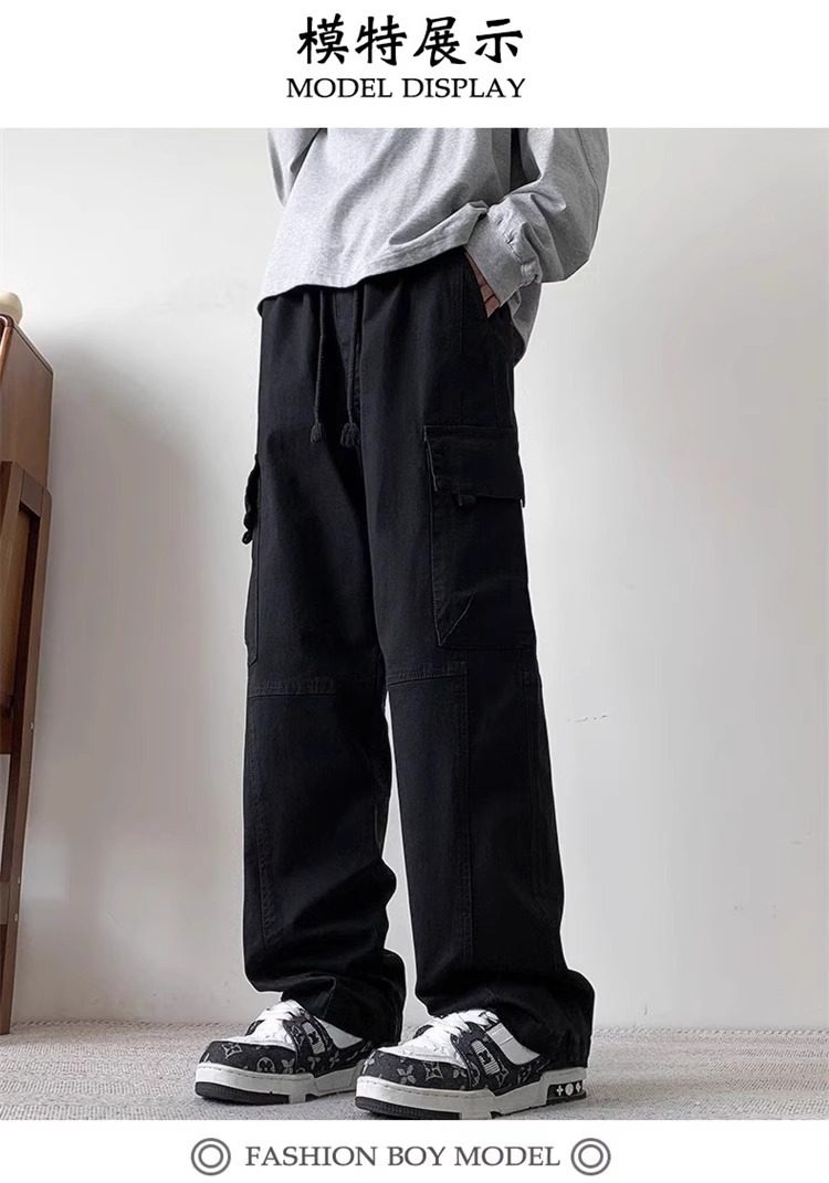 봄과 가을 새로운 미국 스타일 트렌디 한 브랜드 플러스 사이즈 바지 남성용 느슨한 스트레이트 다리 바지 유행 캐주얼 플리츠 와이드 다리 바지스토어 가기