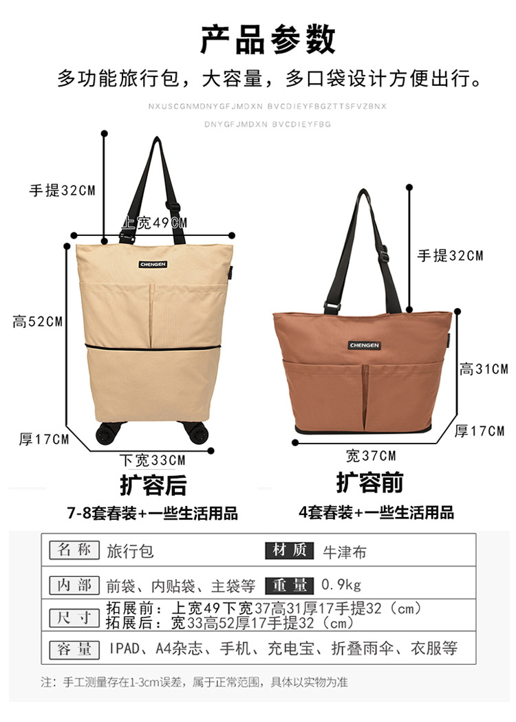 Wanxiang 휠 슈퍼마켓 쇼핑백 접이식 휴대용 대용량 여행 가방 핸드백 수하물 가방 쇼핑백