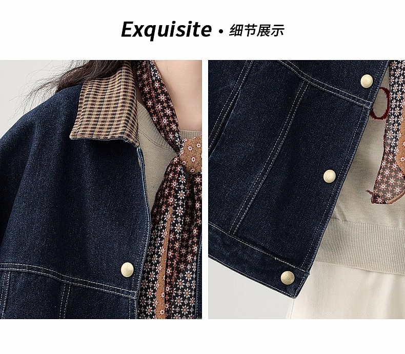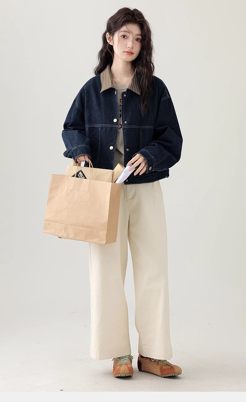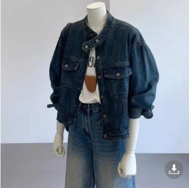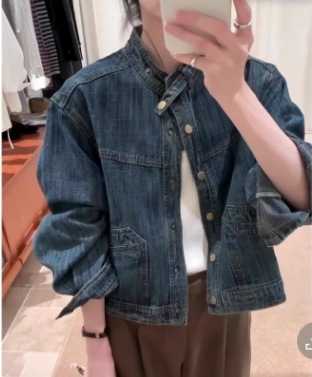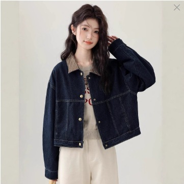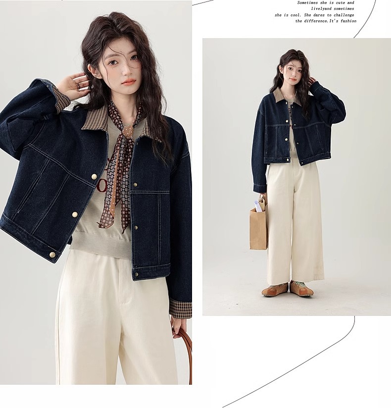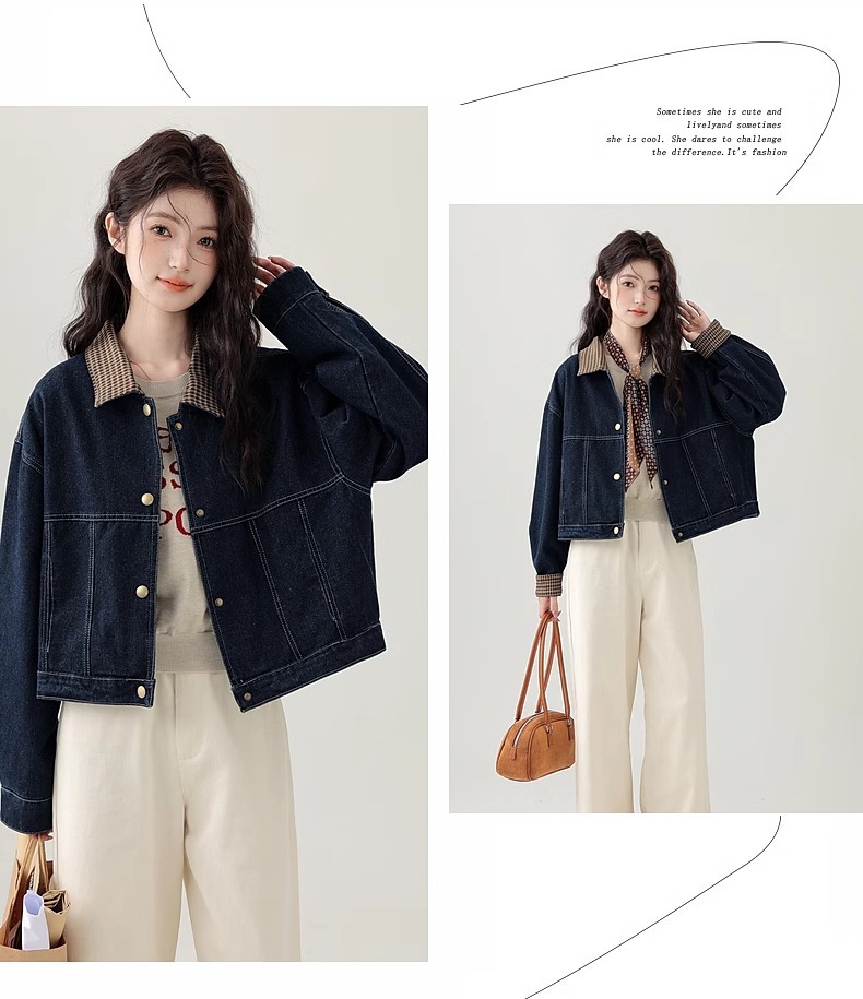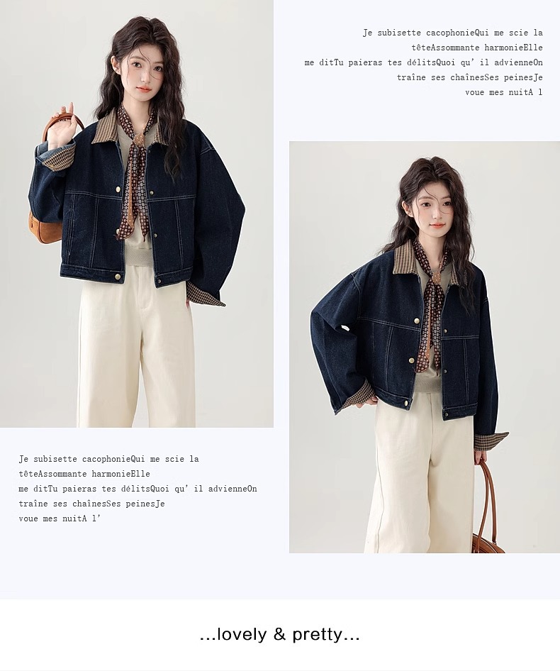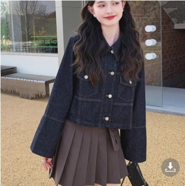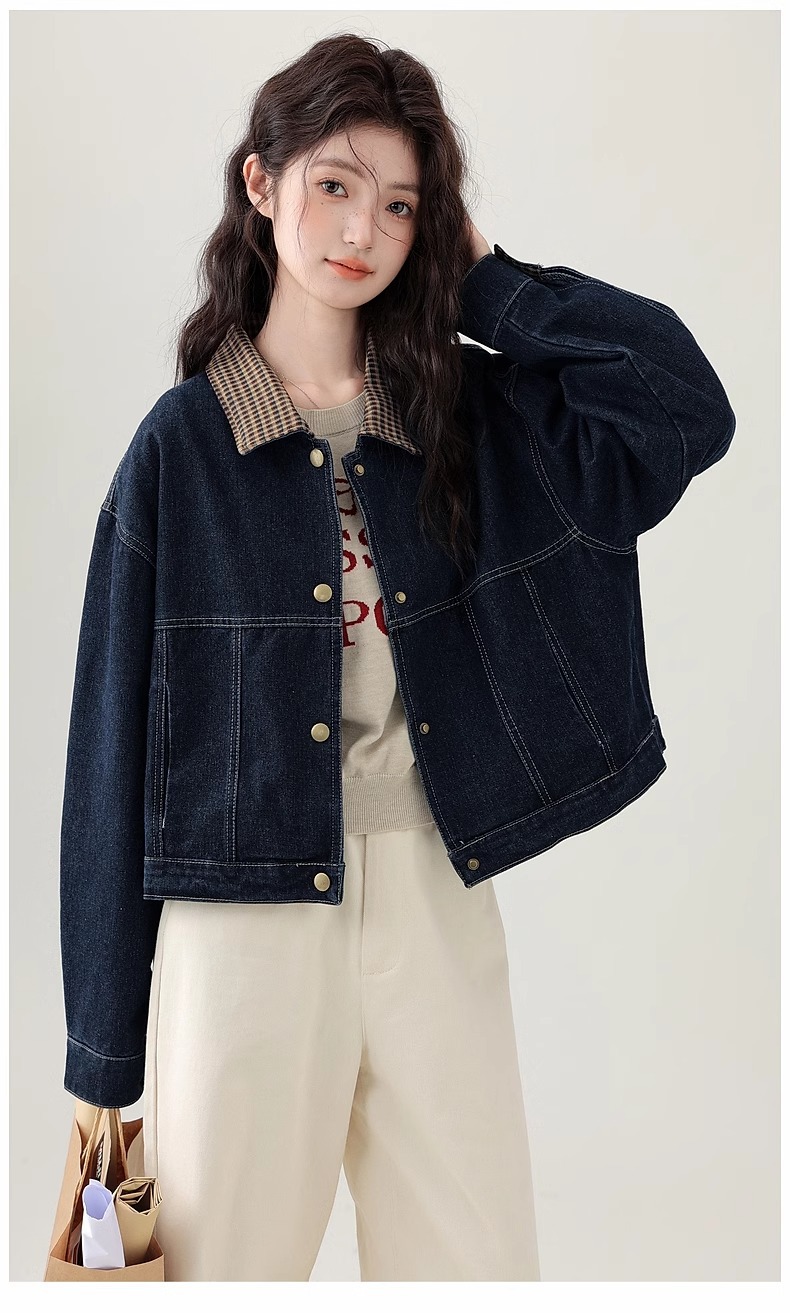 봄 2025 새로운 홍콩 스타일 옷깃 무늬 데님 짧은 코트 여성용 작은 재킷 탑스토어 가기