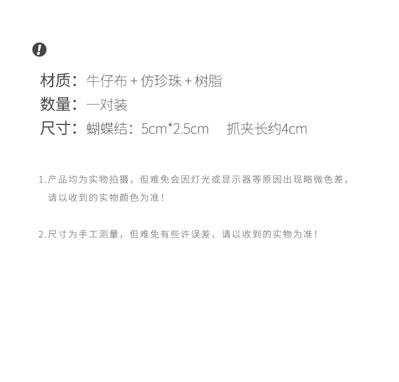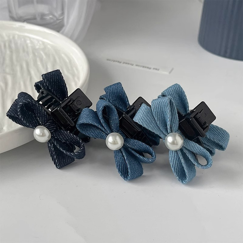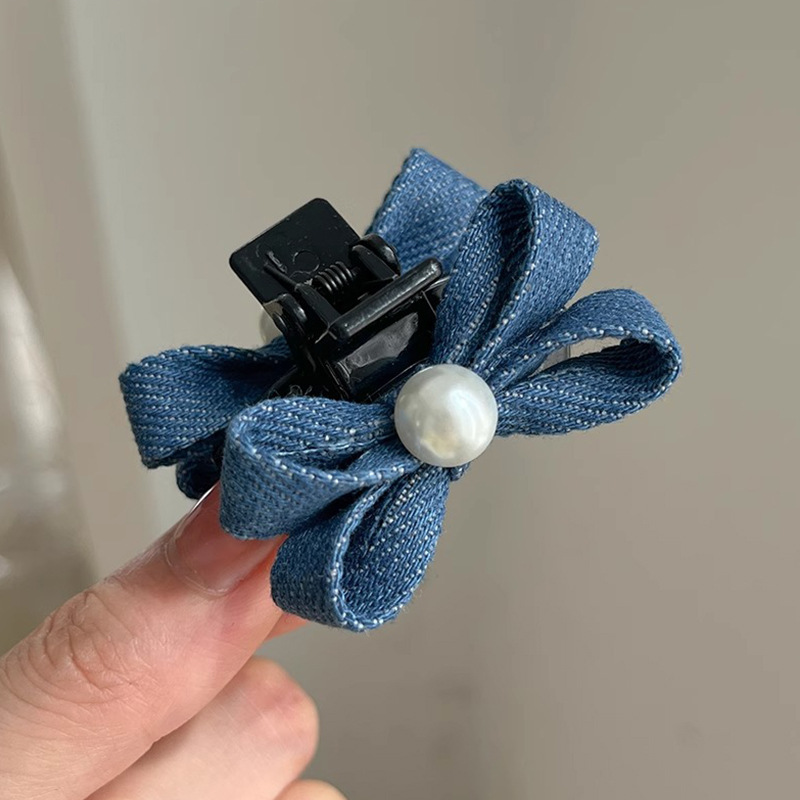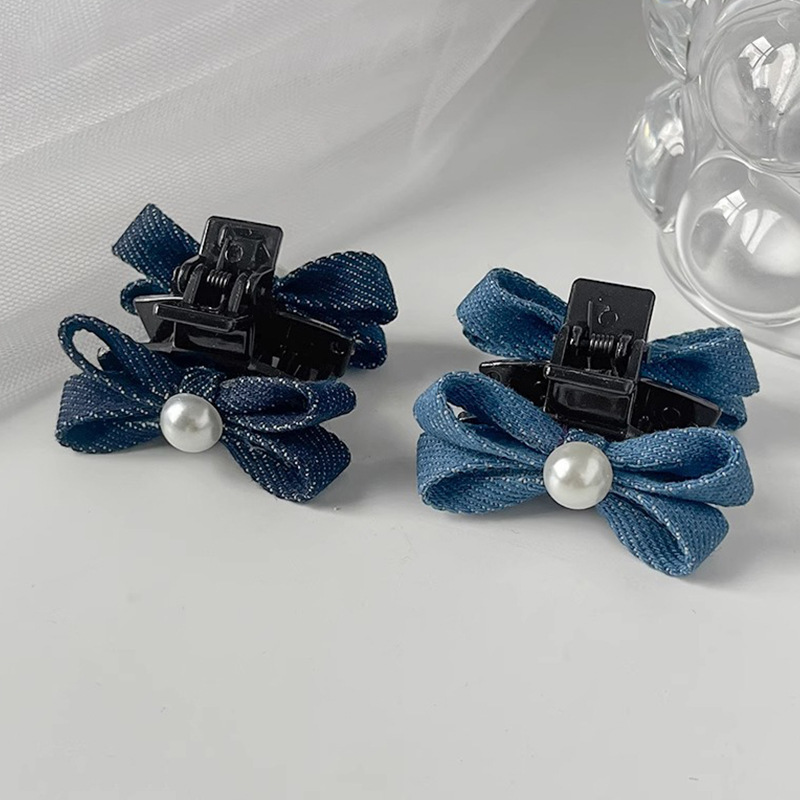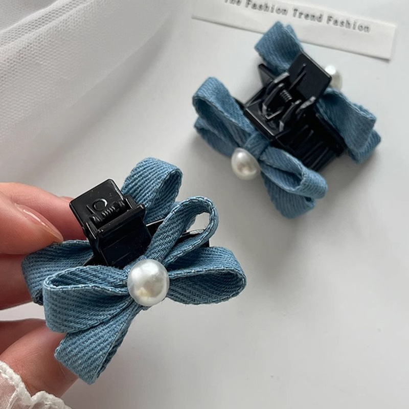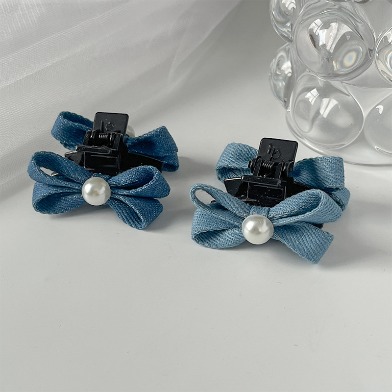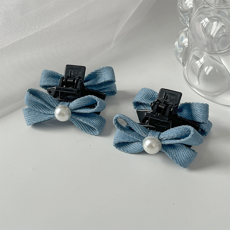 패션 데님 컬러 진주 작은 잡아 클립 소녀의 앞면 클립 헤드웨어 머리핀 귀여운 활 머리핀