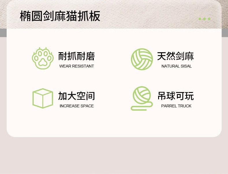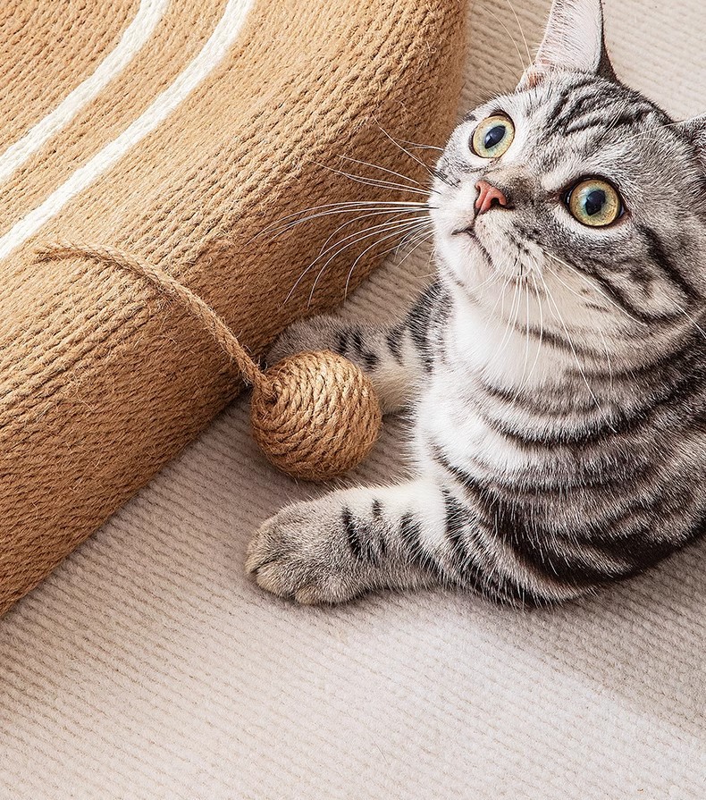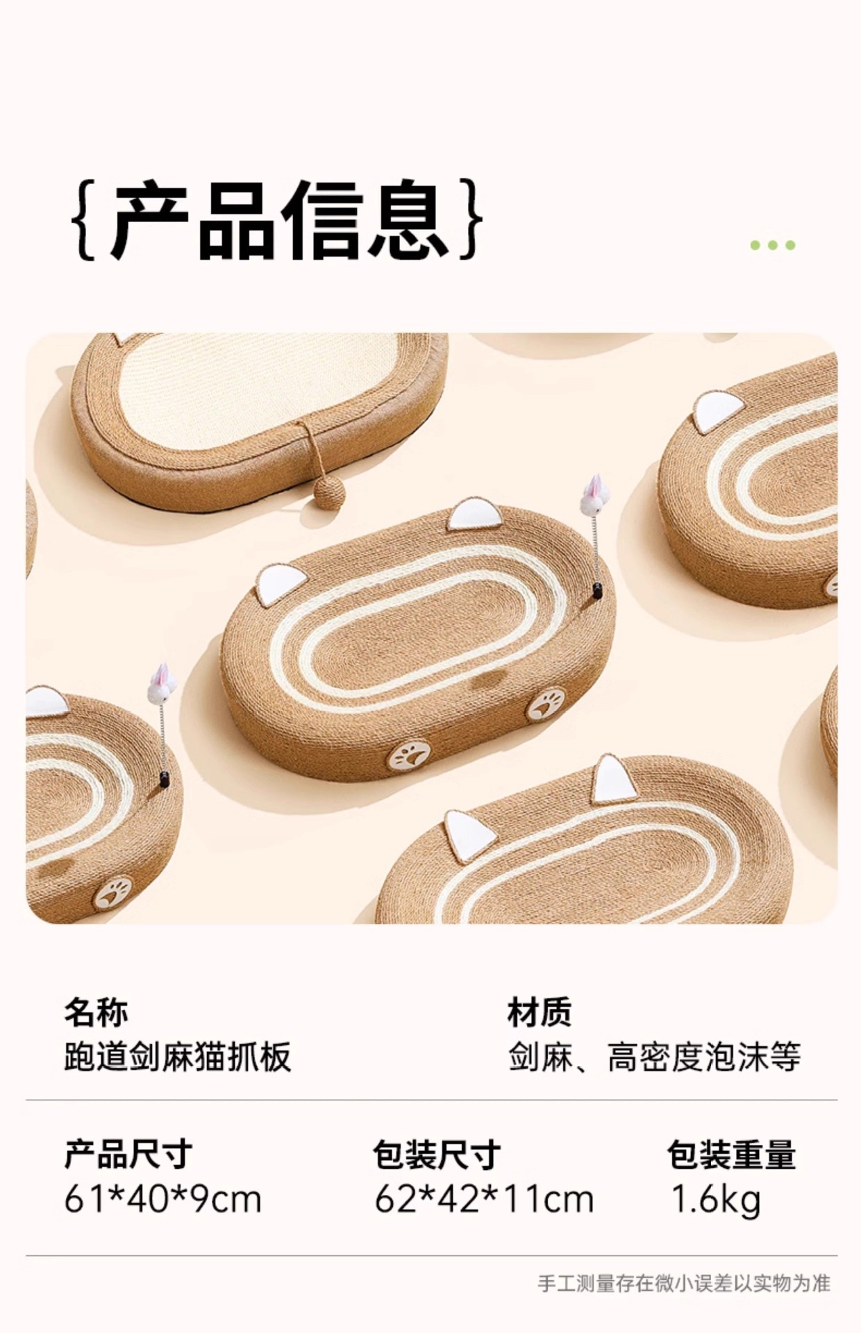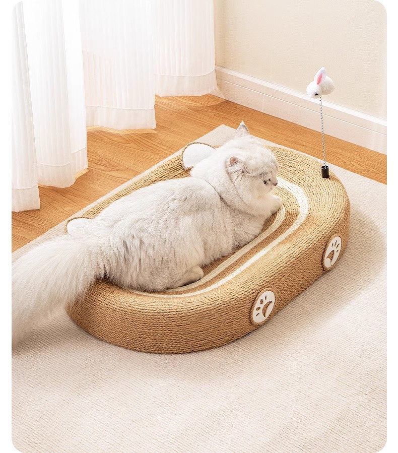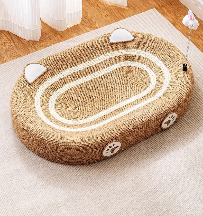 • [사이잘삼 천 + 사이잘삼 매트] 타원형 고양이 긁는 기둥