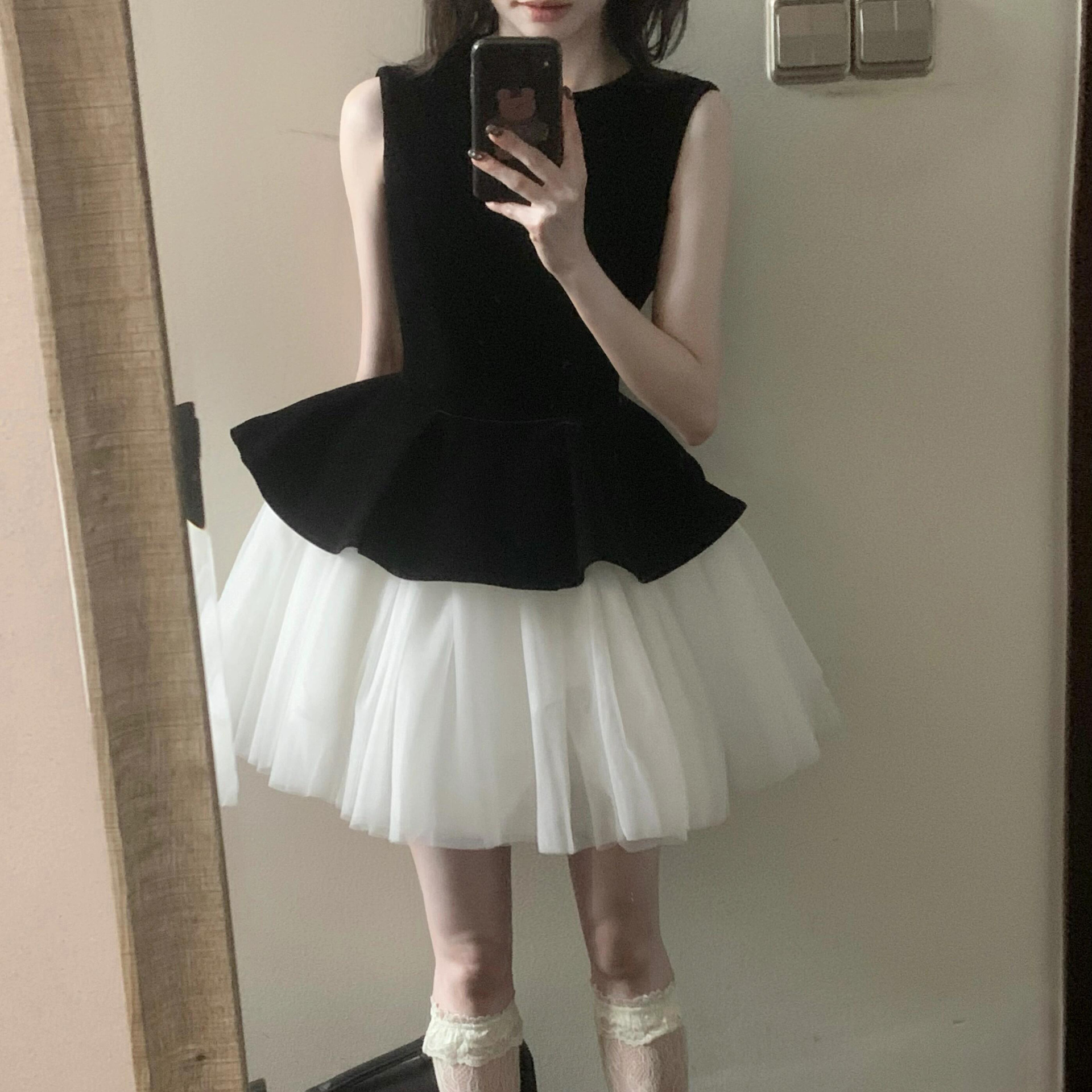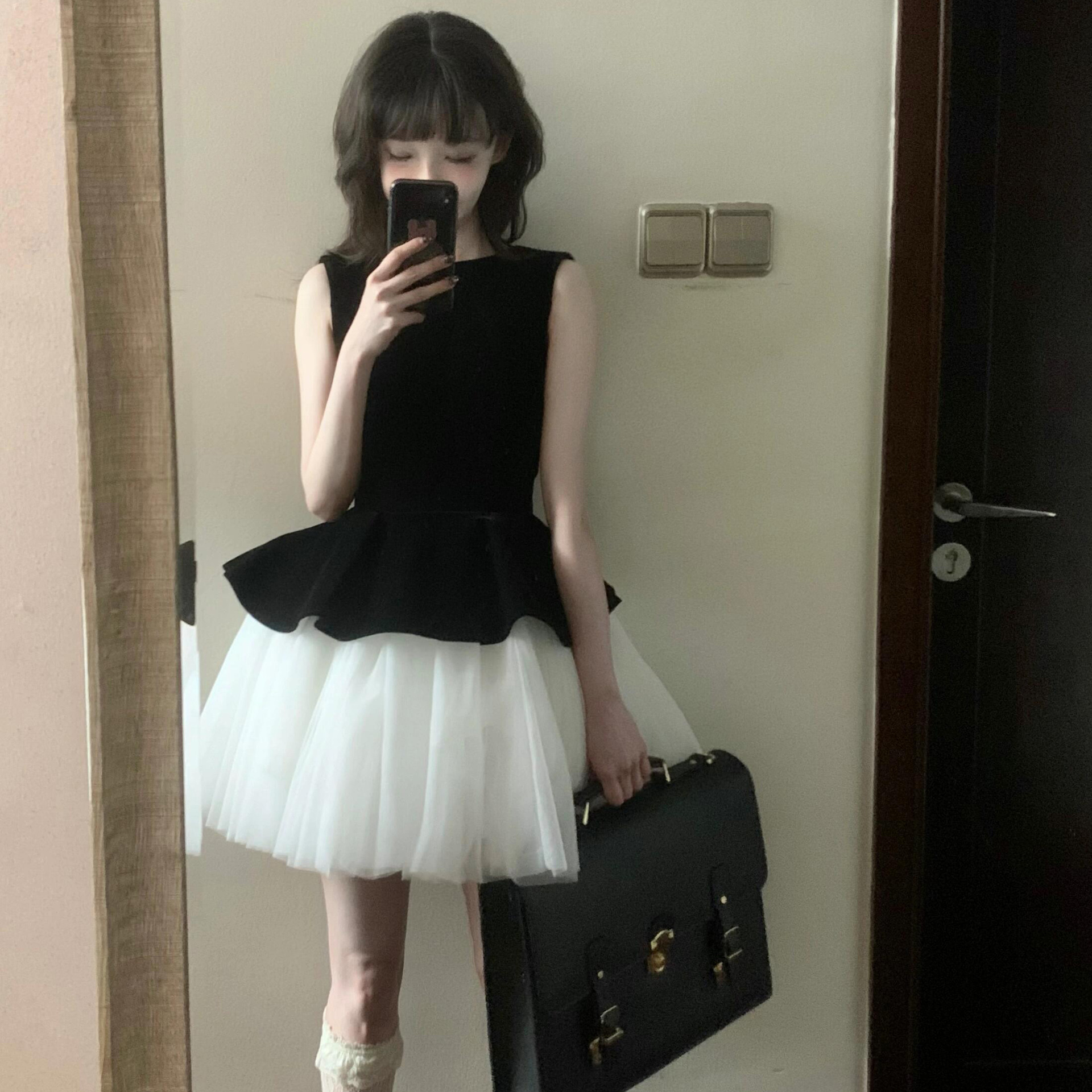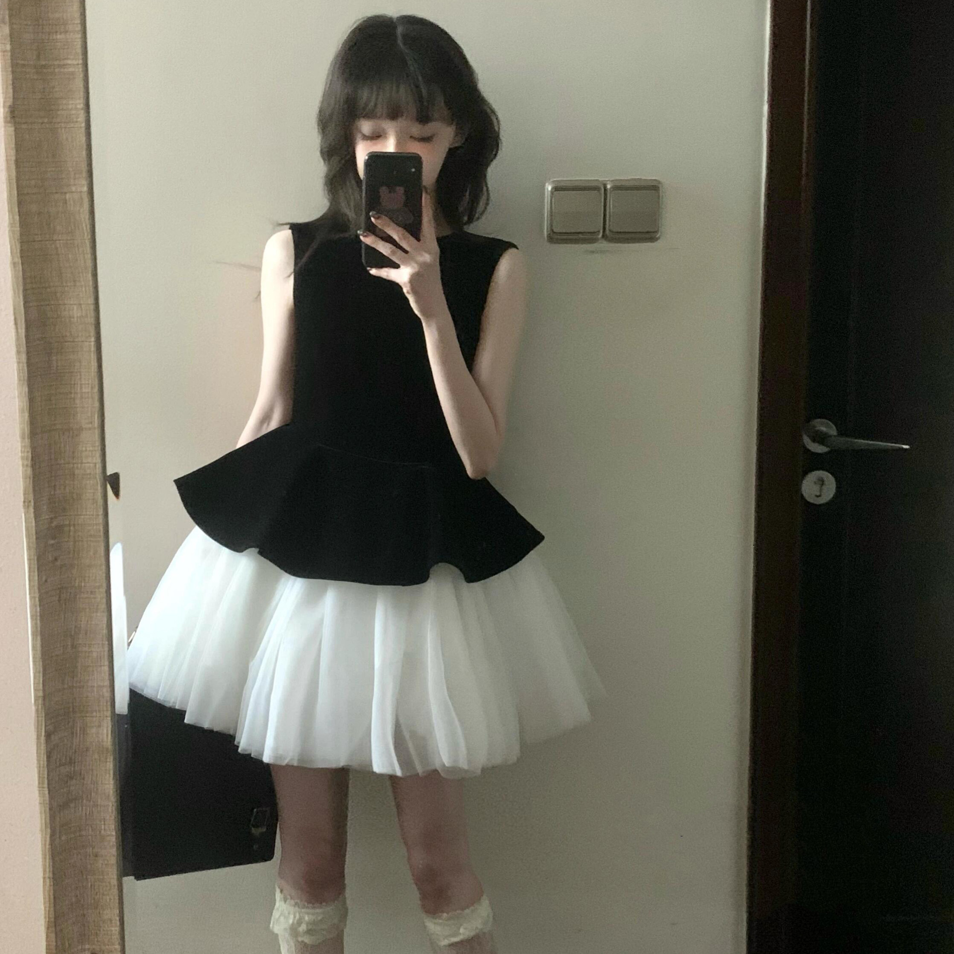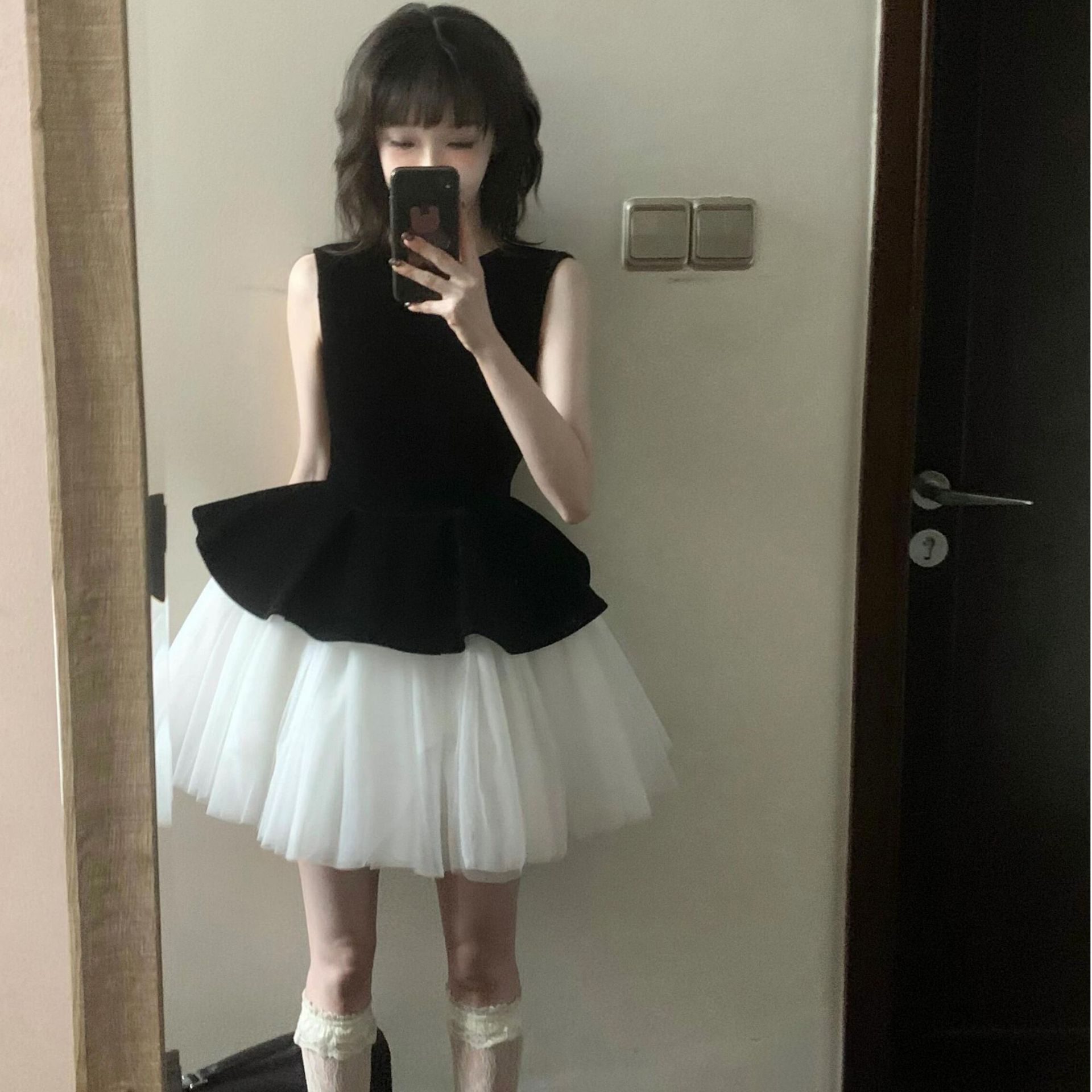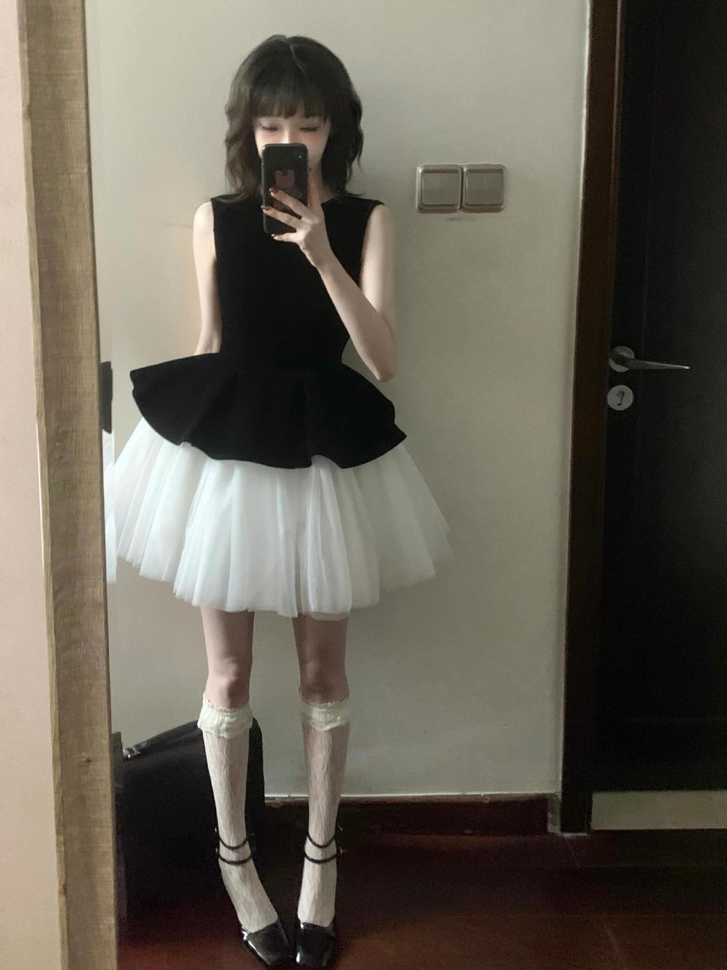 프랑스 스타일 민소매 조끼 메쉬 스티칭 발레 스타일 원피스 2025 새로운 여성 벨벳 프린세스 스타일 판초 스커트스토어 가기
