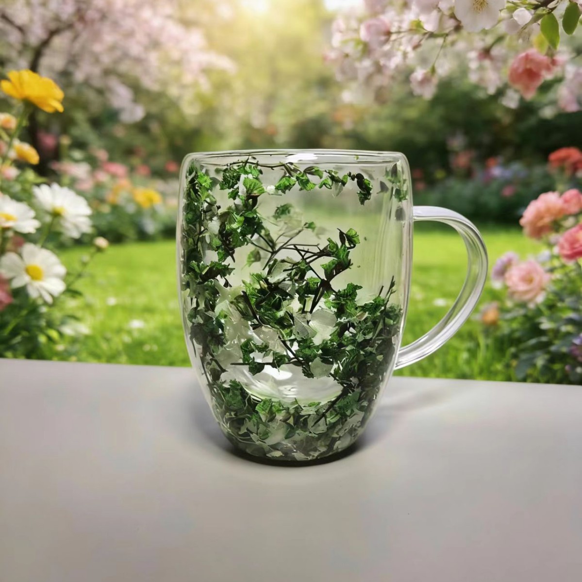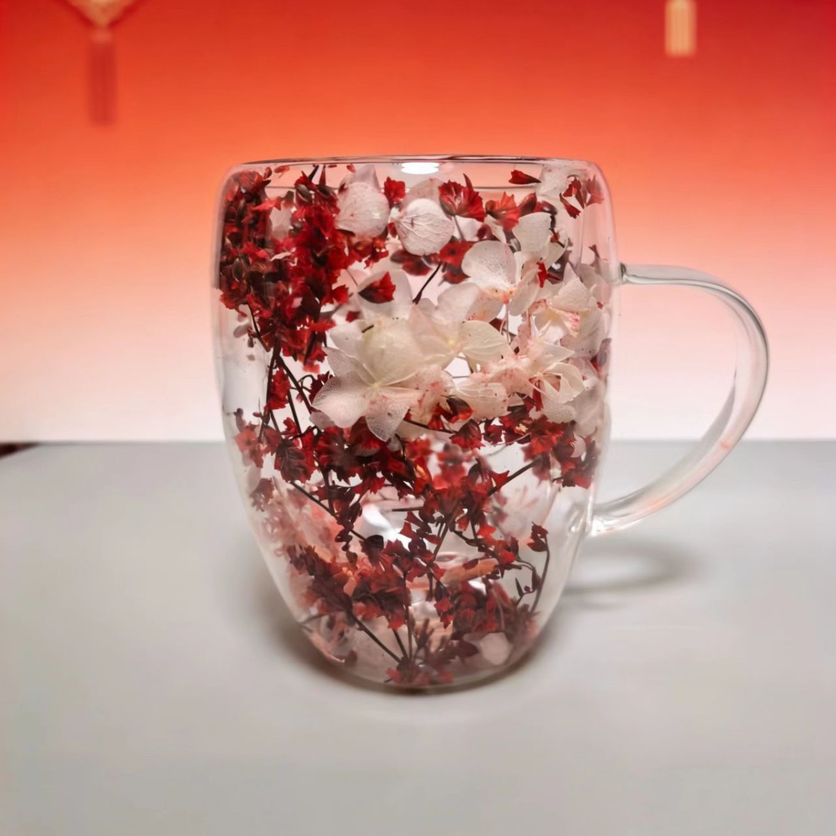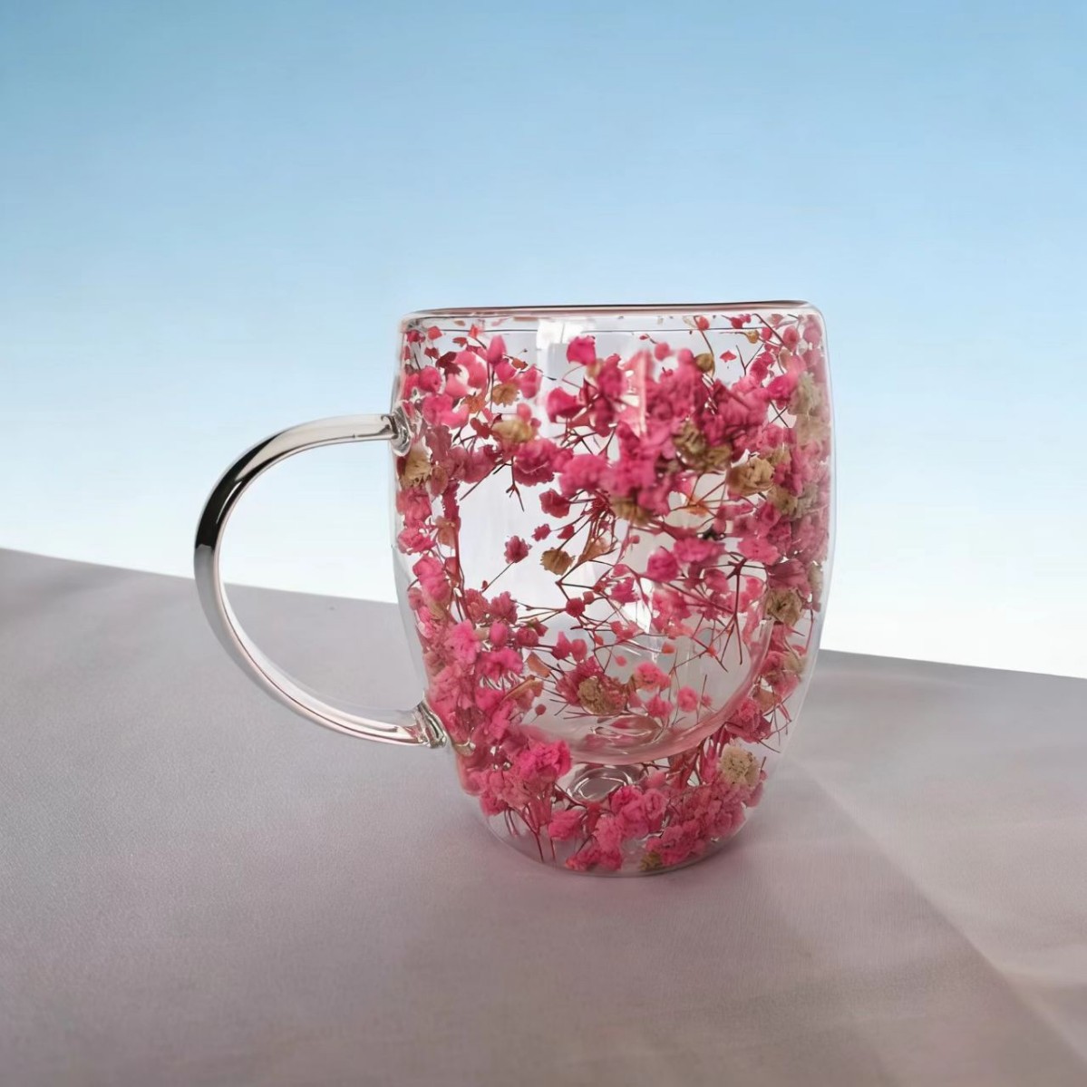 이중층 건조 꽃 유리컵 가정용 고붕규산 유리 내장 건조 꽃 손잡이 포함 투명 유리 이중층 컵