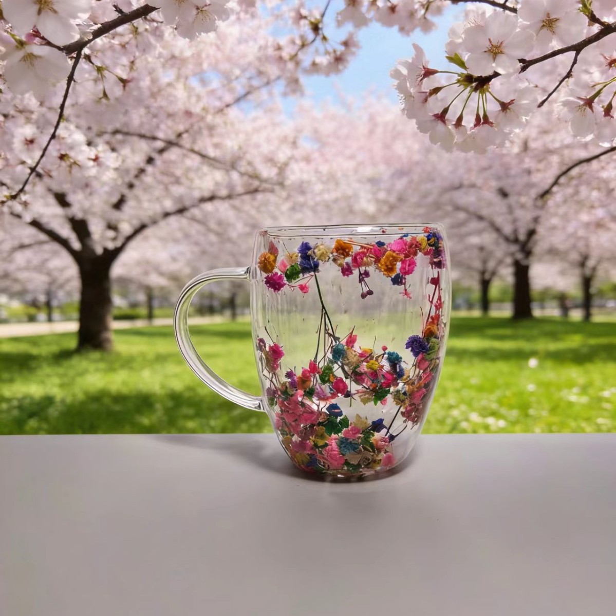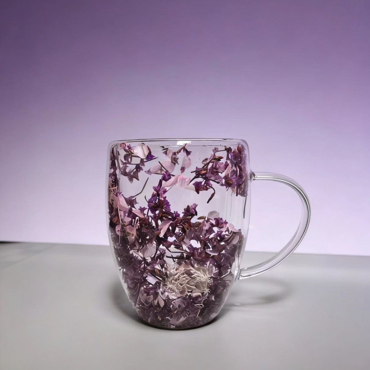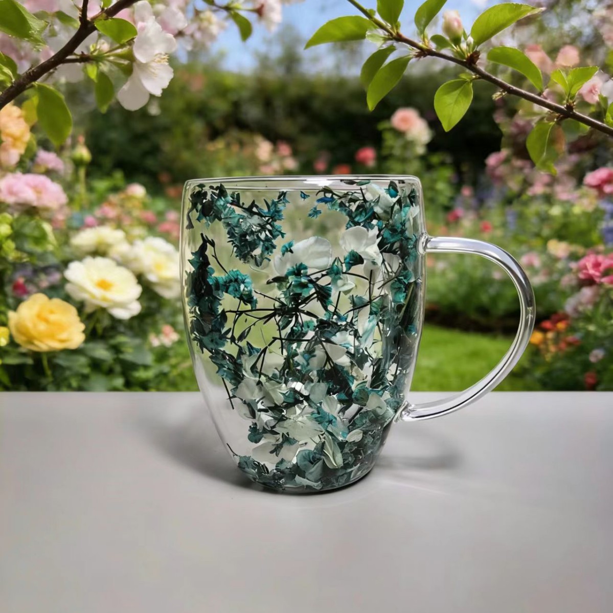 이중층 건조 꽃 유리컵 가정용 고붕규산 유리 내장 건조 꽃 손잡이 포함 투명 유리 이중층 컵