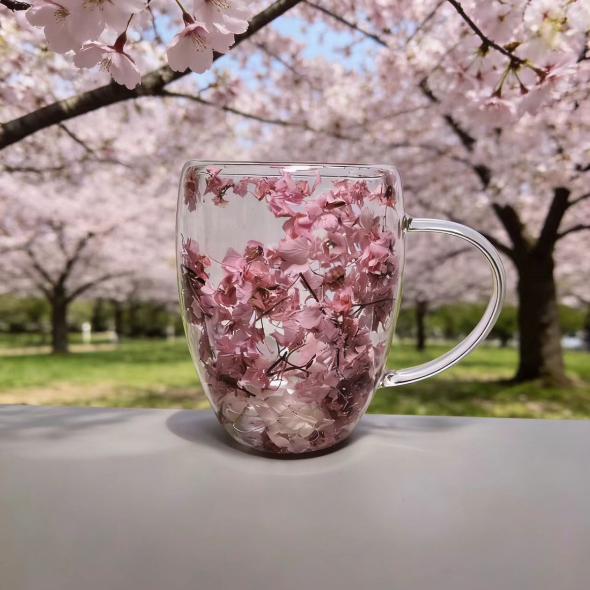 이중층 건조 꽃 유리컵 가정용 고붕규산 유리 내장 건조 꽃 손잡이 포함 투명 유리 이중층 컵스토어 가기
