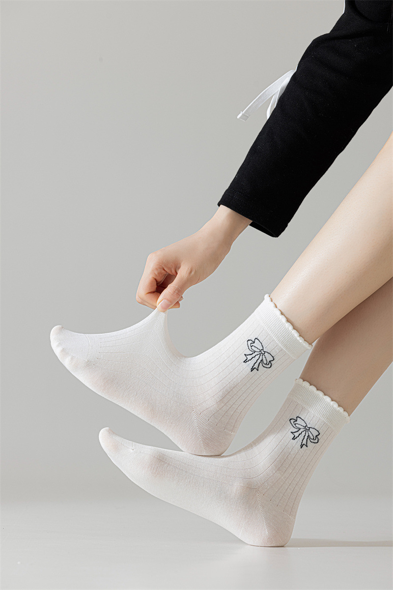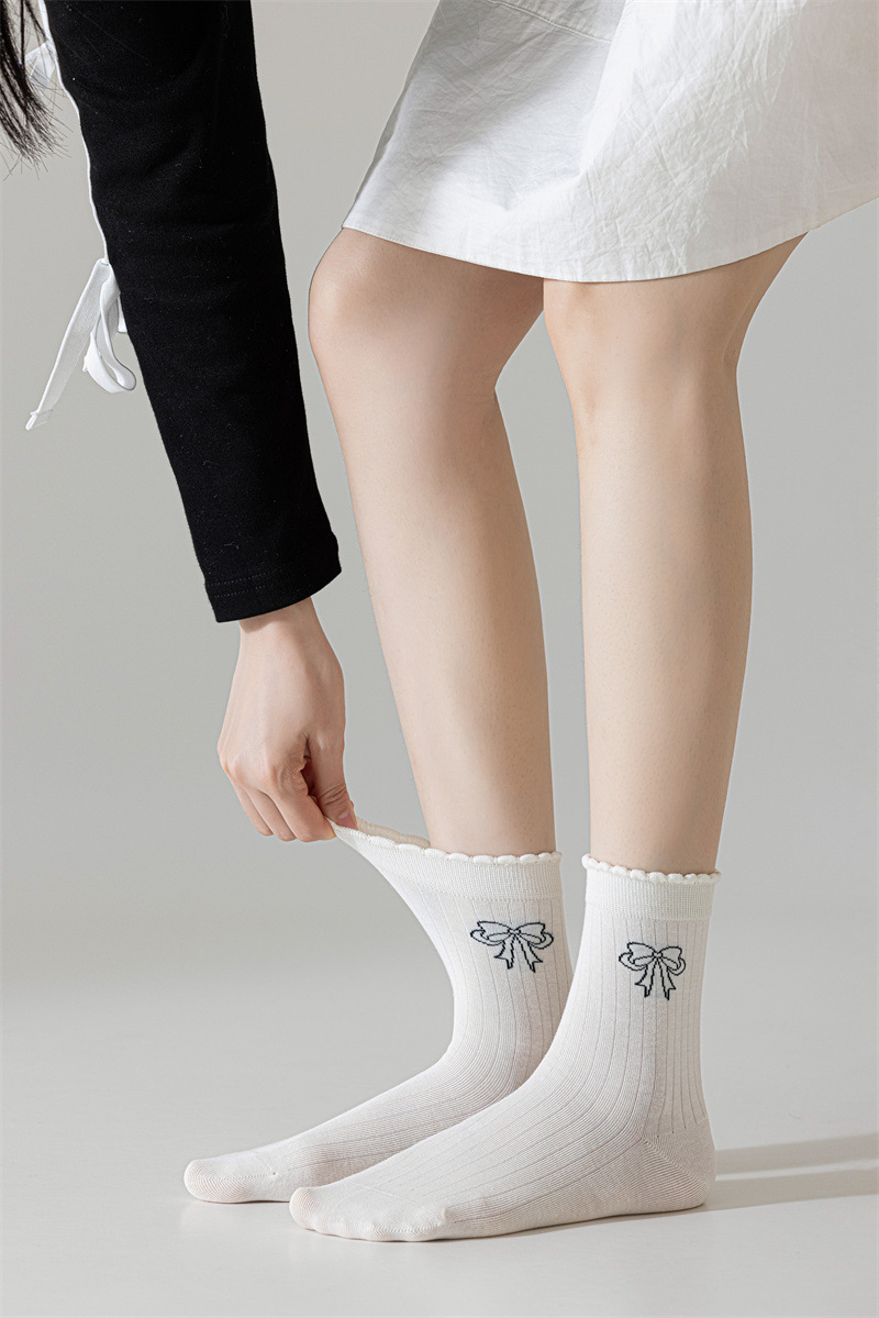 화이트 웨이브 도트 레이스 양말 여성 양말 봄과 가을 스타킹 레이스 일본 jk 코튼 양말 더미 양말 도매