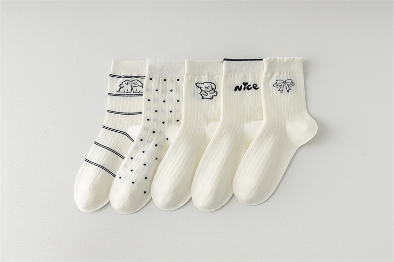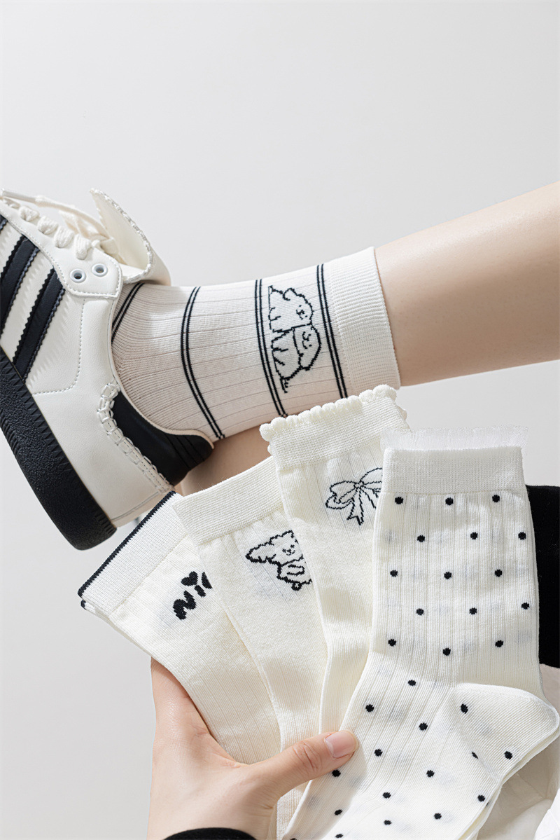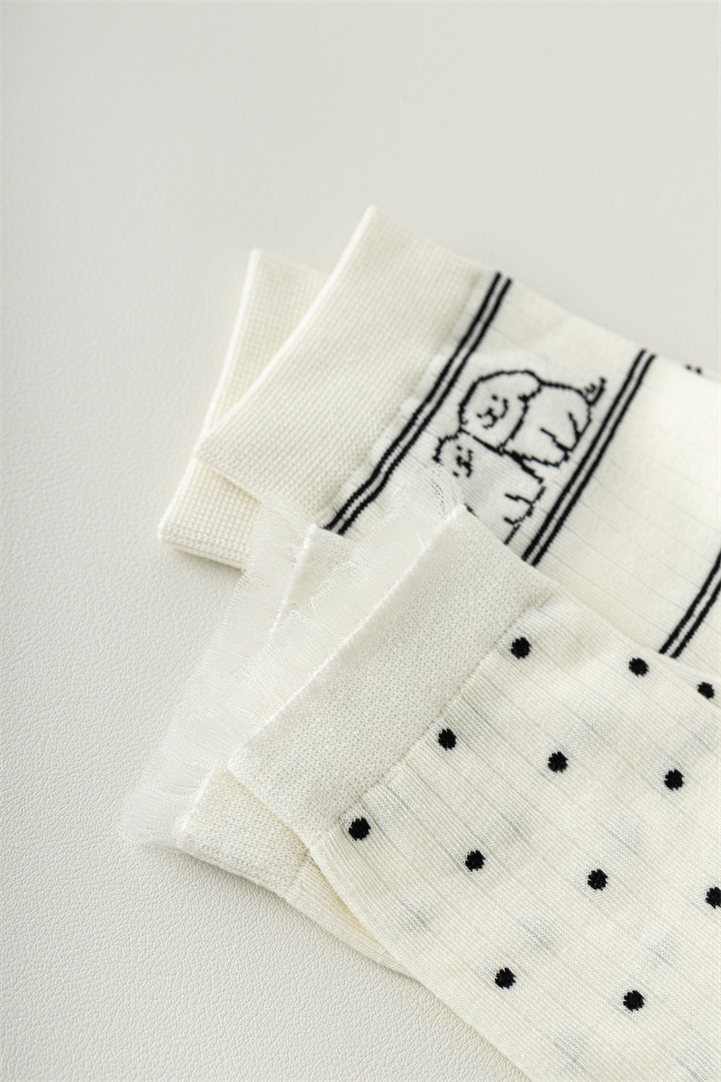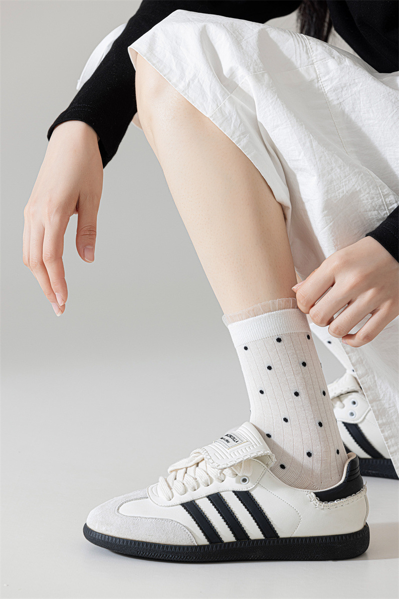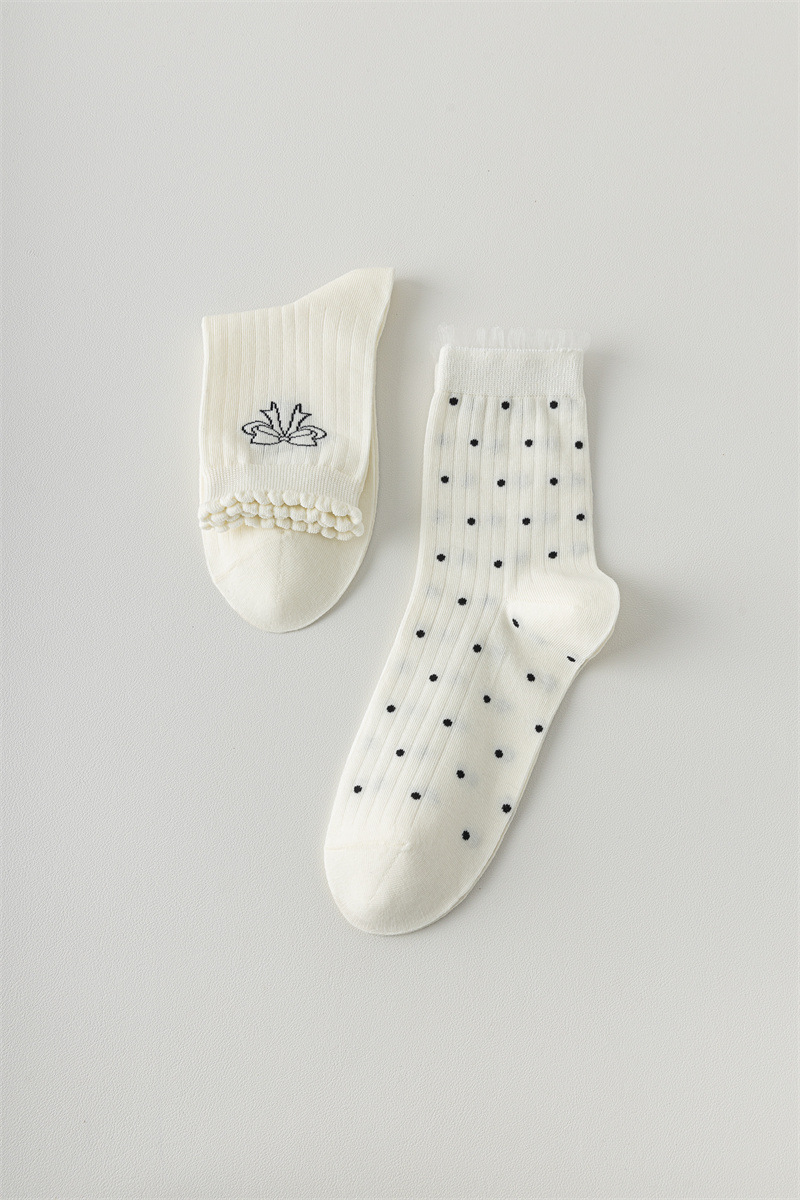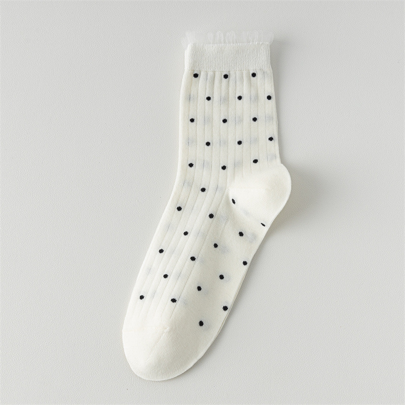 화이트 웨이브 도트 레이스 양말 여성 양말 봄과 가을 스타킹 레이스 일본 jk 코튼 양말 더미 양말 도매스토어 가기